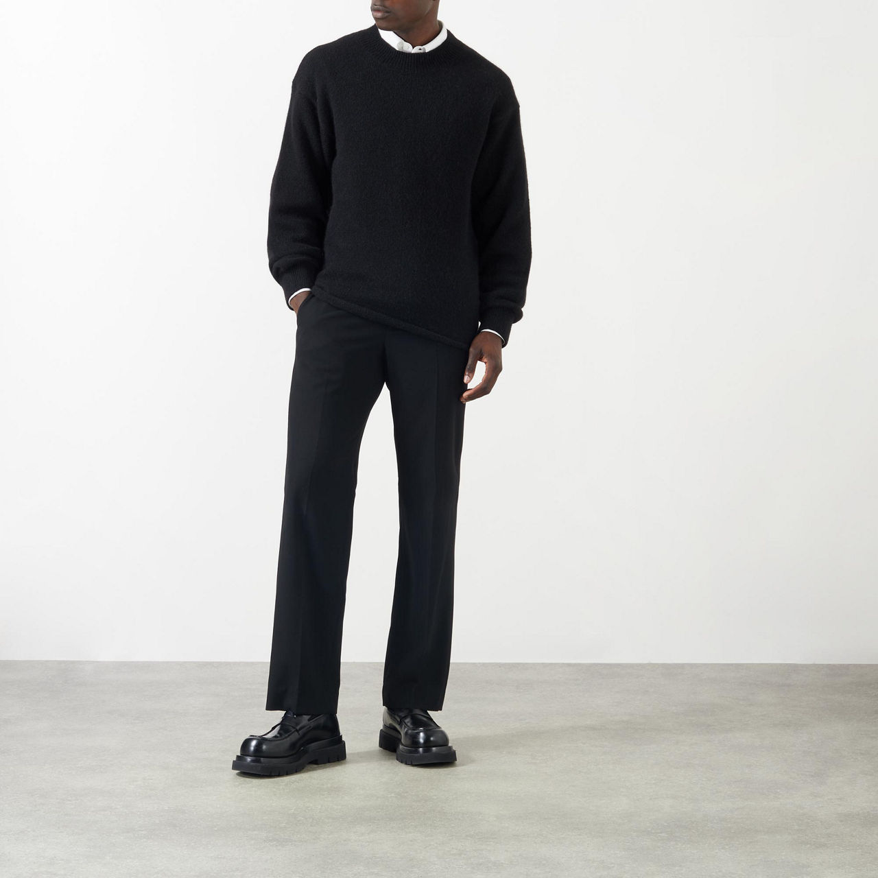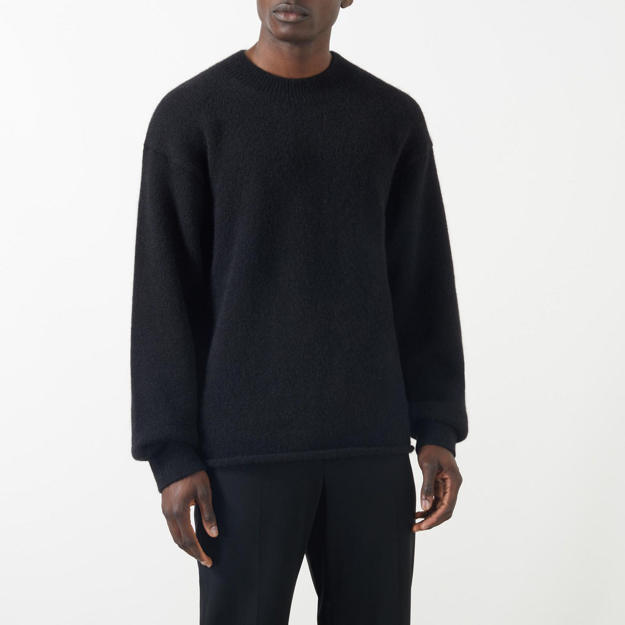 - Crew neckline, long sleeves, dropped shoulders, logo branding on back, stretch cuffs, knitted finish