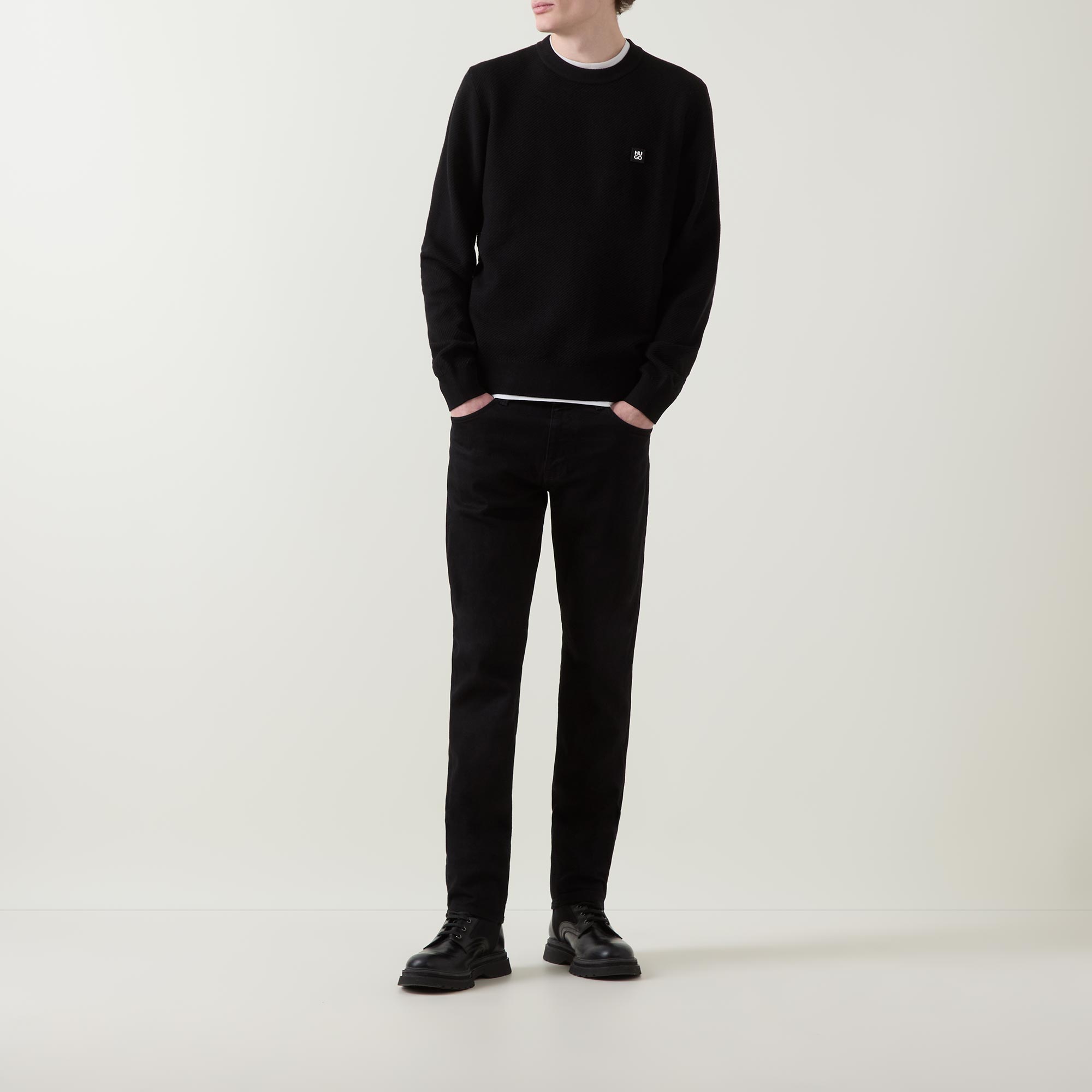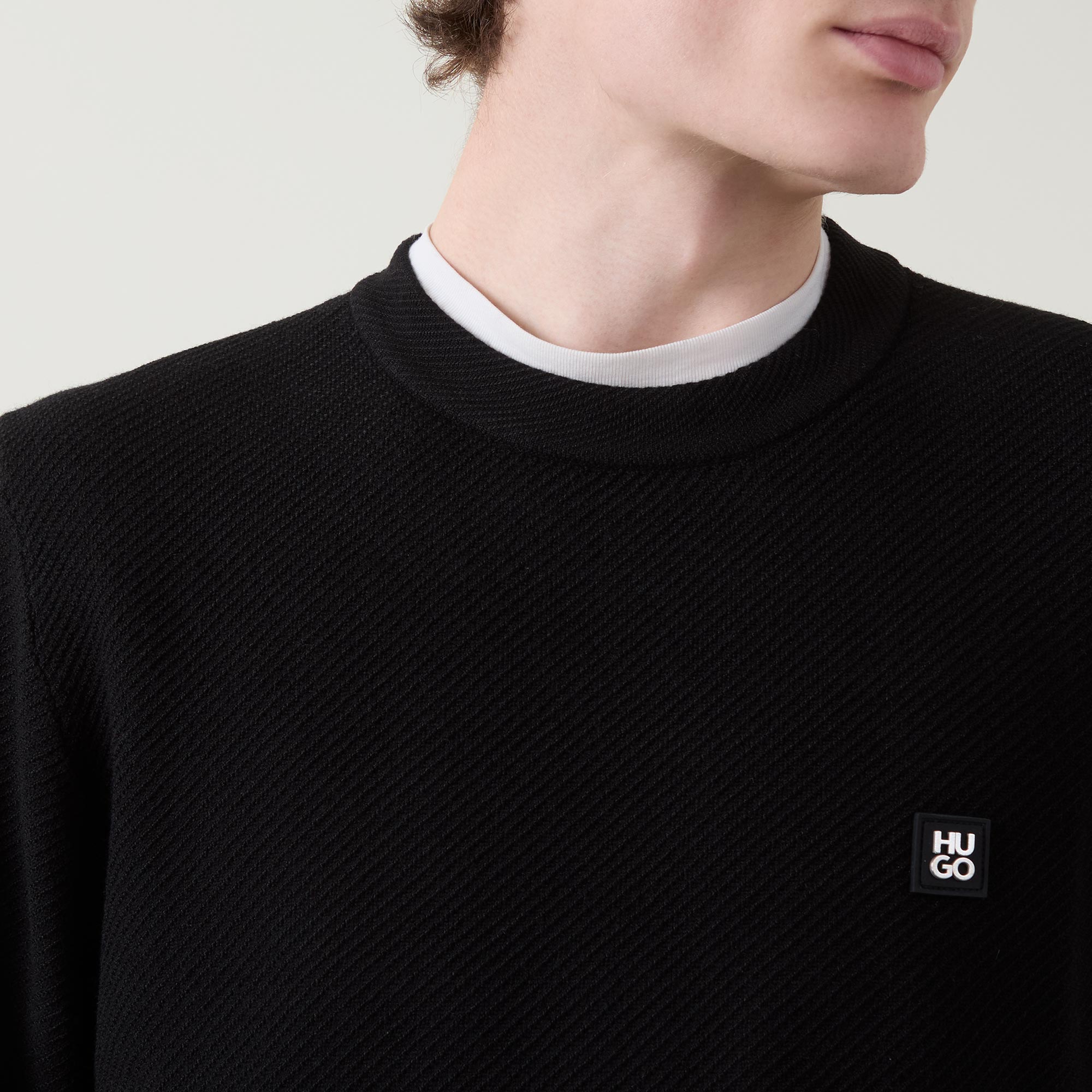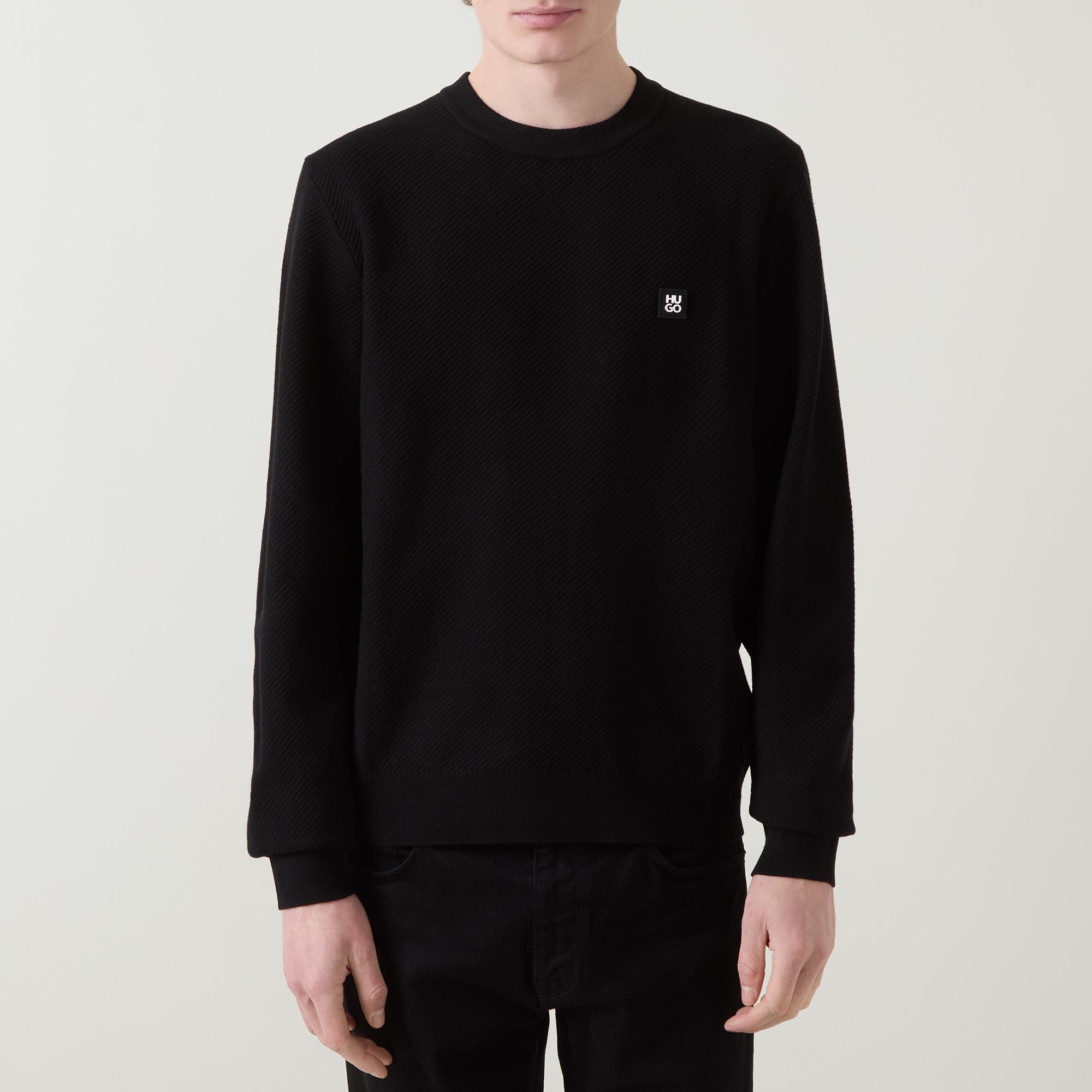 - Stacked logo, crew neckline, long sleeves, ribbed trims, straight hemline