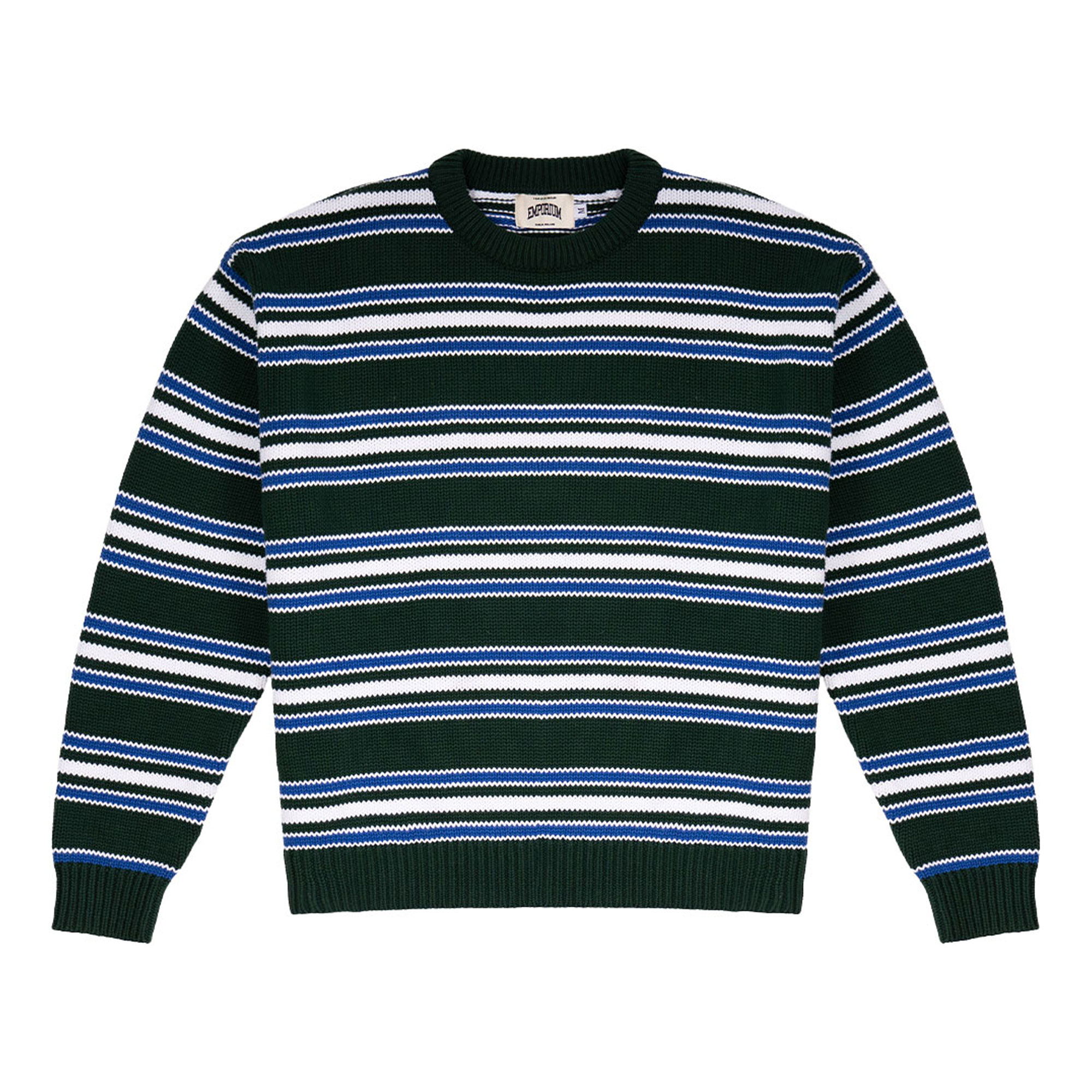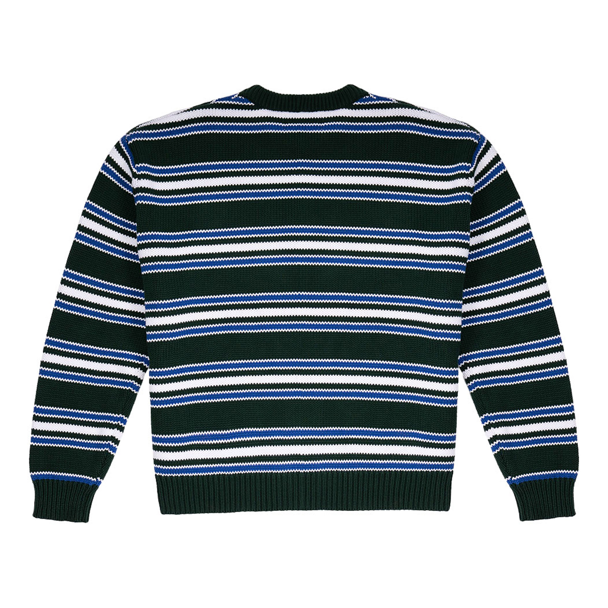 • Fisherman knit, heavyweight 3-gauge yarn, minimal left waist brand tab, stripe pattern