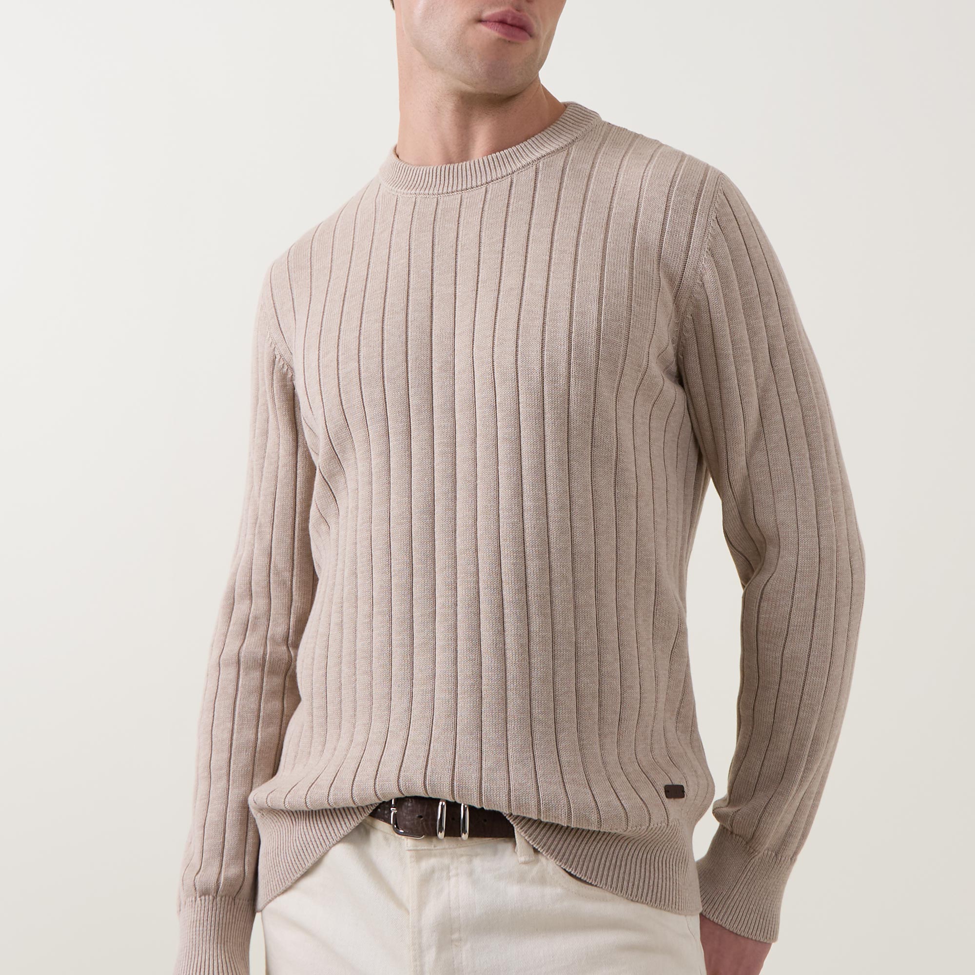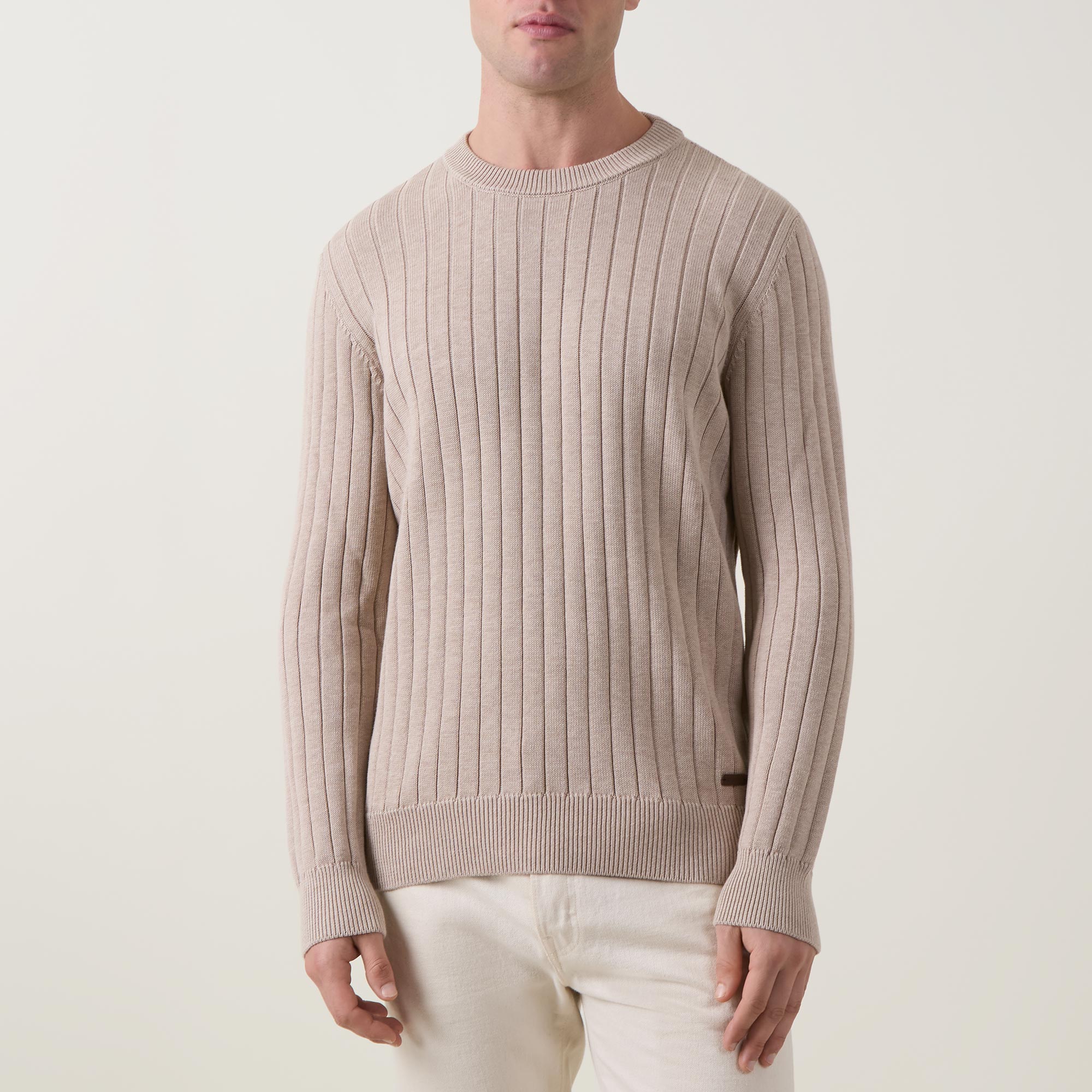 • Crew neckline, long sleeves, knit structure, ribbed trims, logo detail