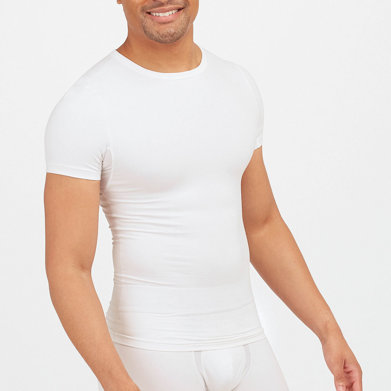 Introducing the SPANX® Men's Cotton Crew Neck, reinvented. This sculpting undershirt features comfort and medium compression that eliminates bulk under clothes and firms all round. Designed with smart features and premium performance fabric, this style fits with the perfect compression and comfort that feels incredible in all the right places.