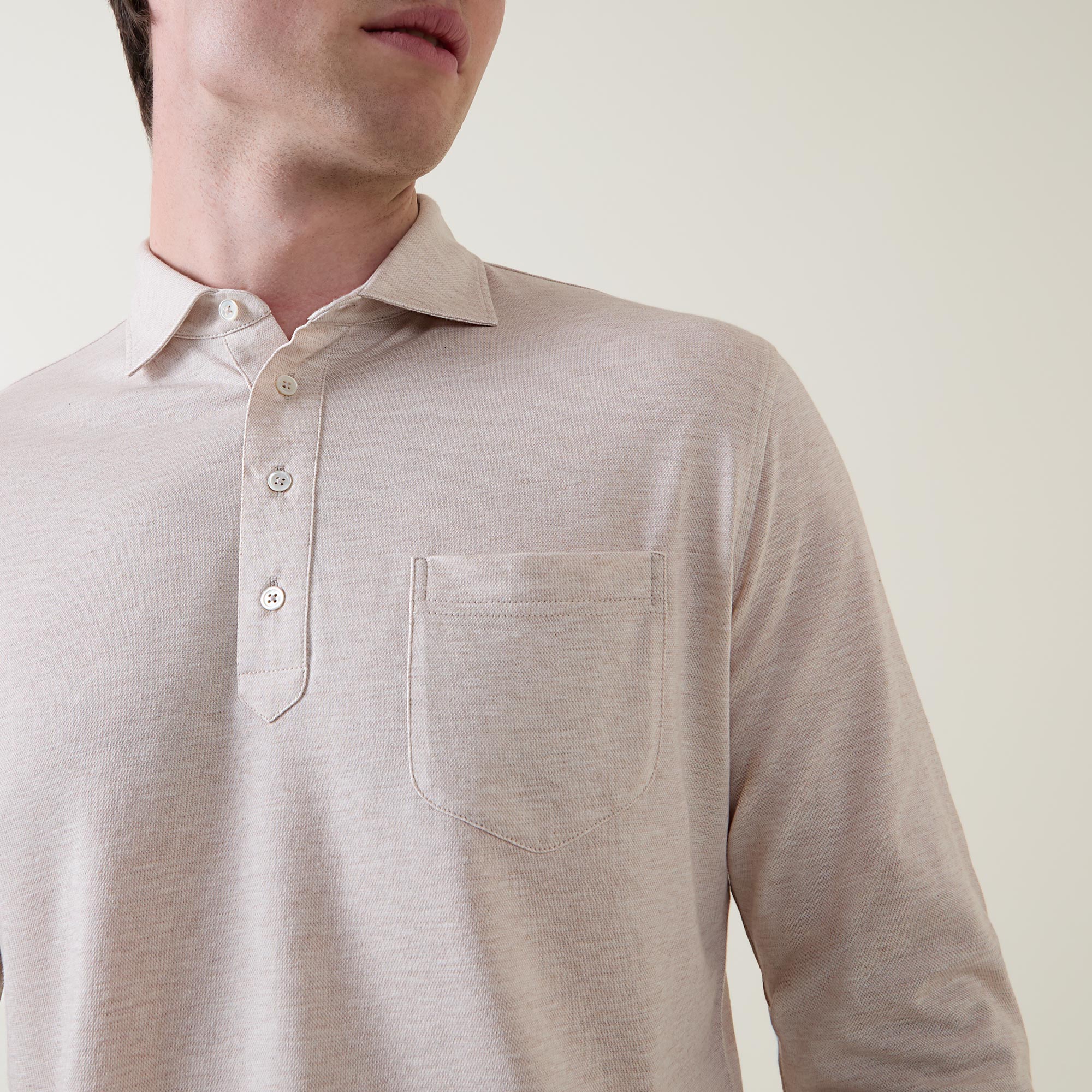 - Classic collar, button fastening, long sleeves, buttoned cuffs, straight hemline, chest patch pocket, jersey knit fabric