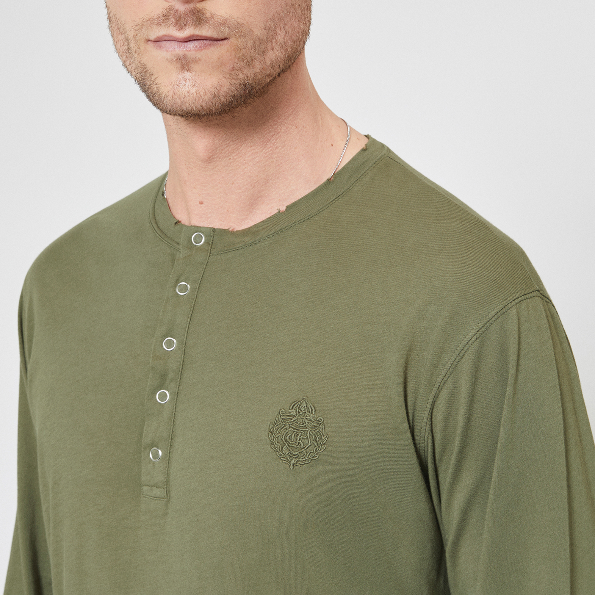 THE KOOPLES Crest Logo Long-Sleeved Henley T-Shirt