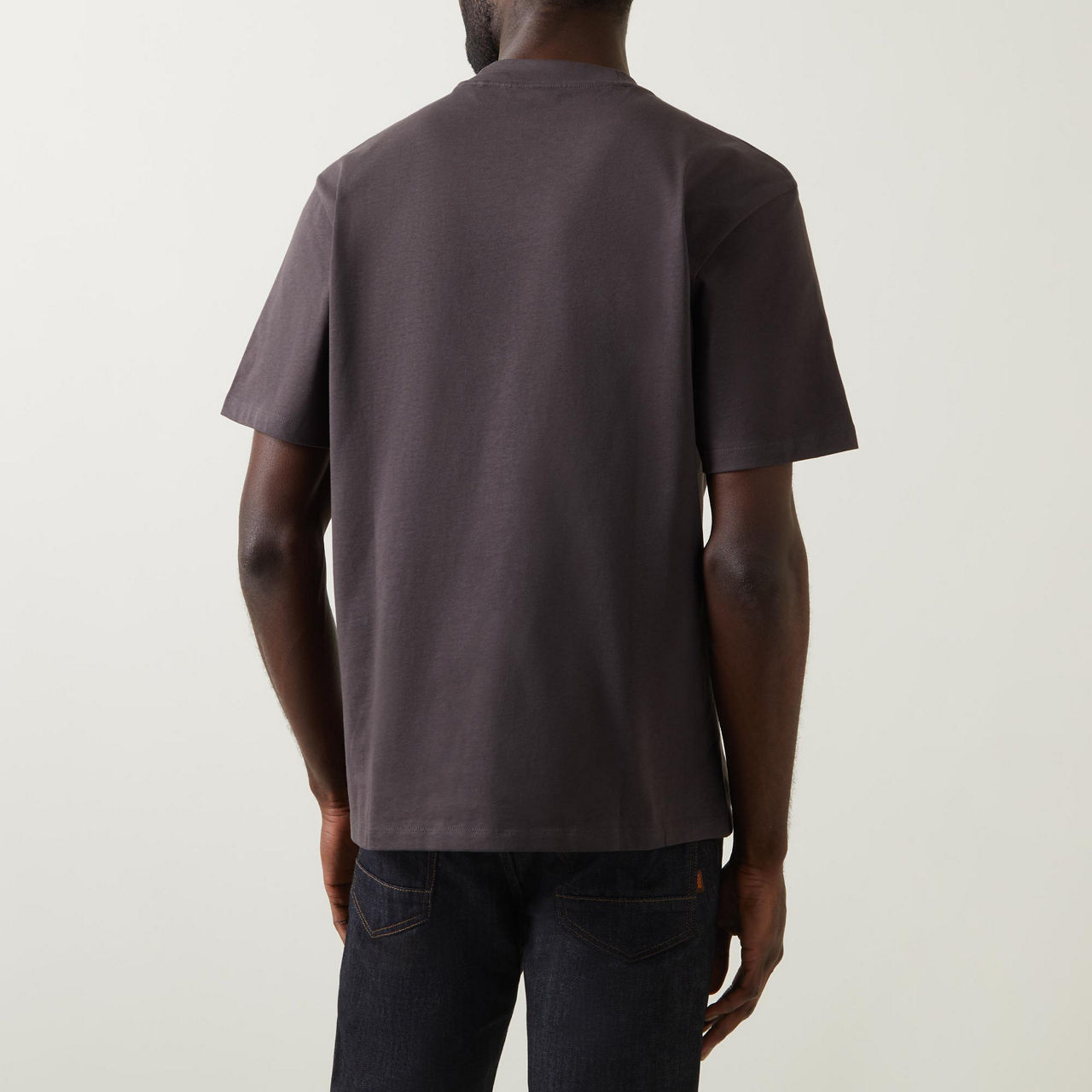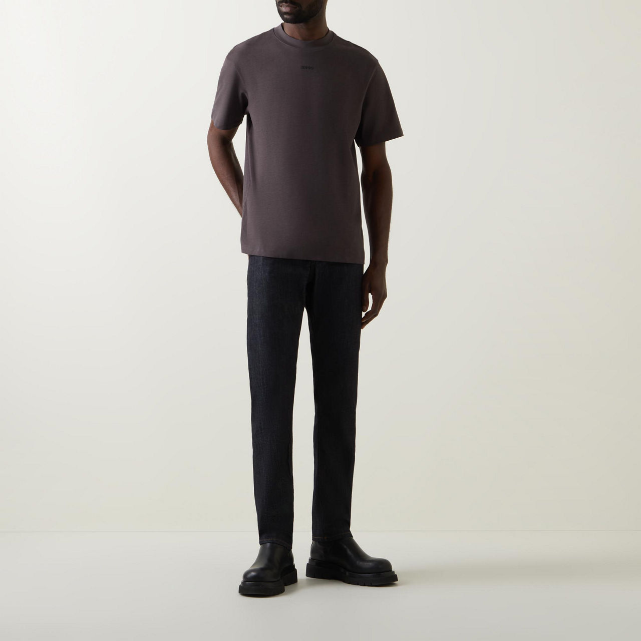 - Crew neck, short sleeves, straight hem, micro logo detail in the centre of the chest