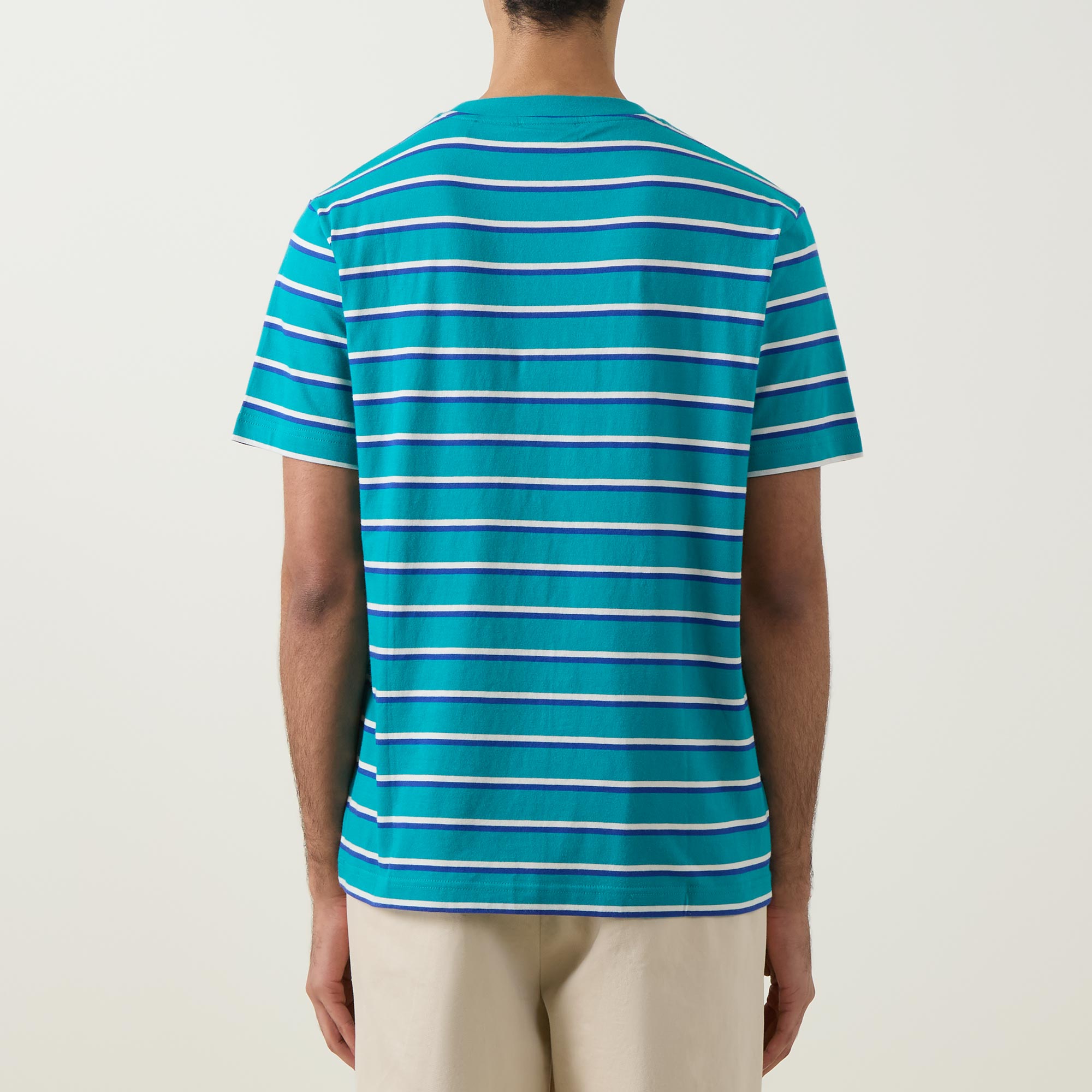 - Striped, round neck, short sleeves, straight hemline, logo detail