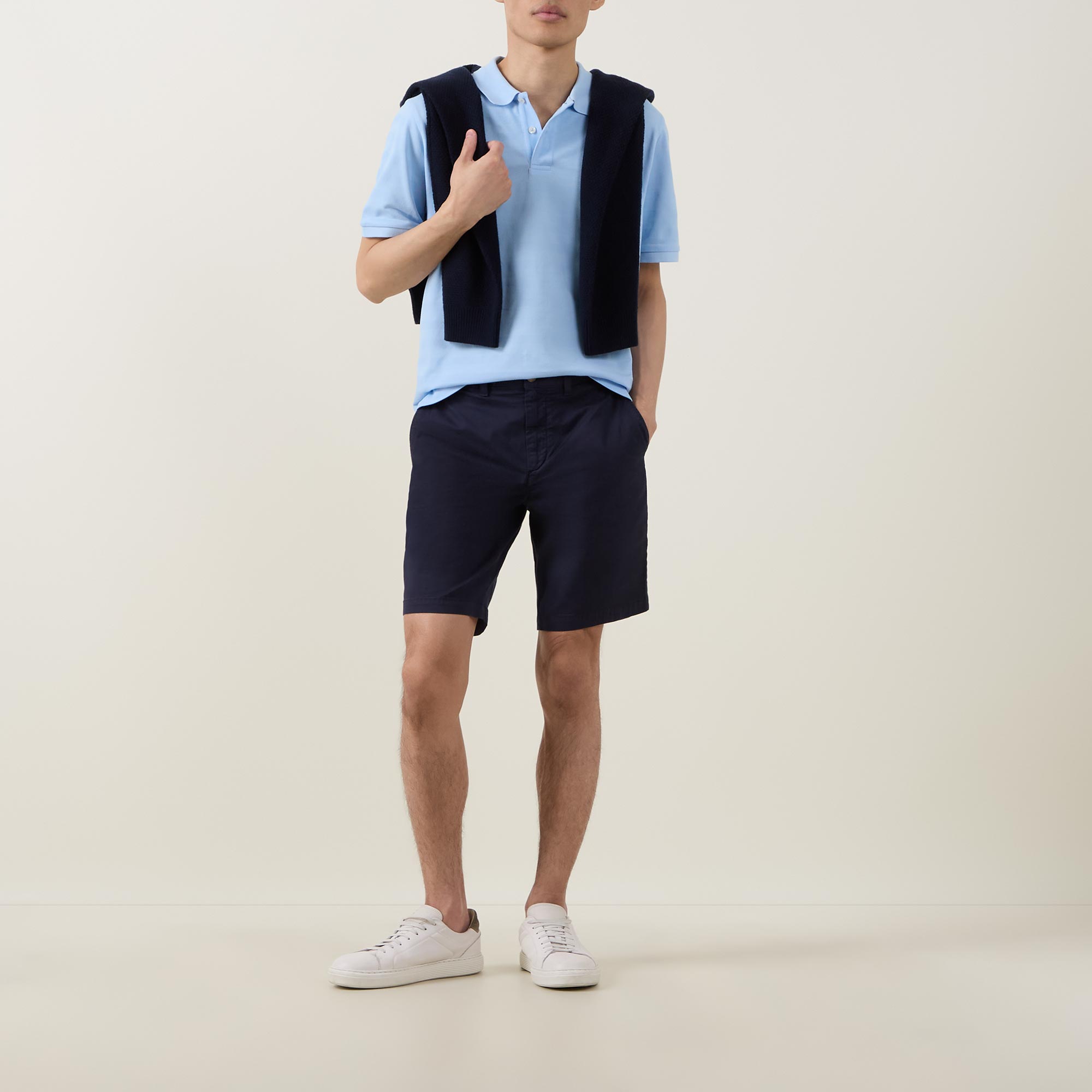 - Polo collar, short sleeves, straight hemline, logo detail, button fastenings