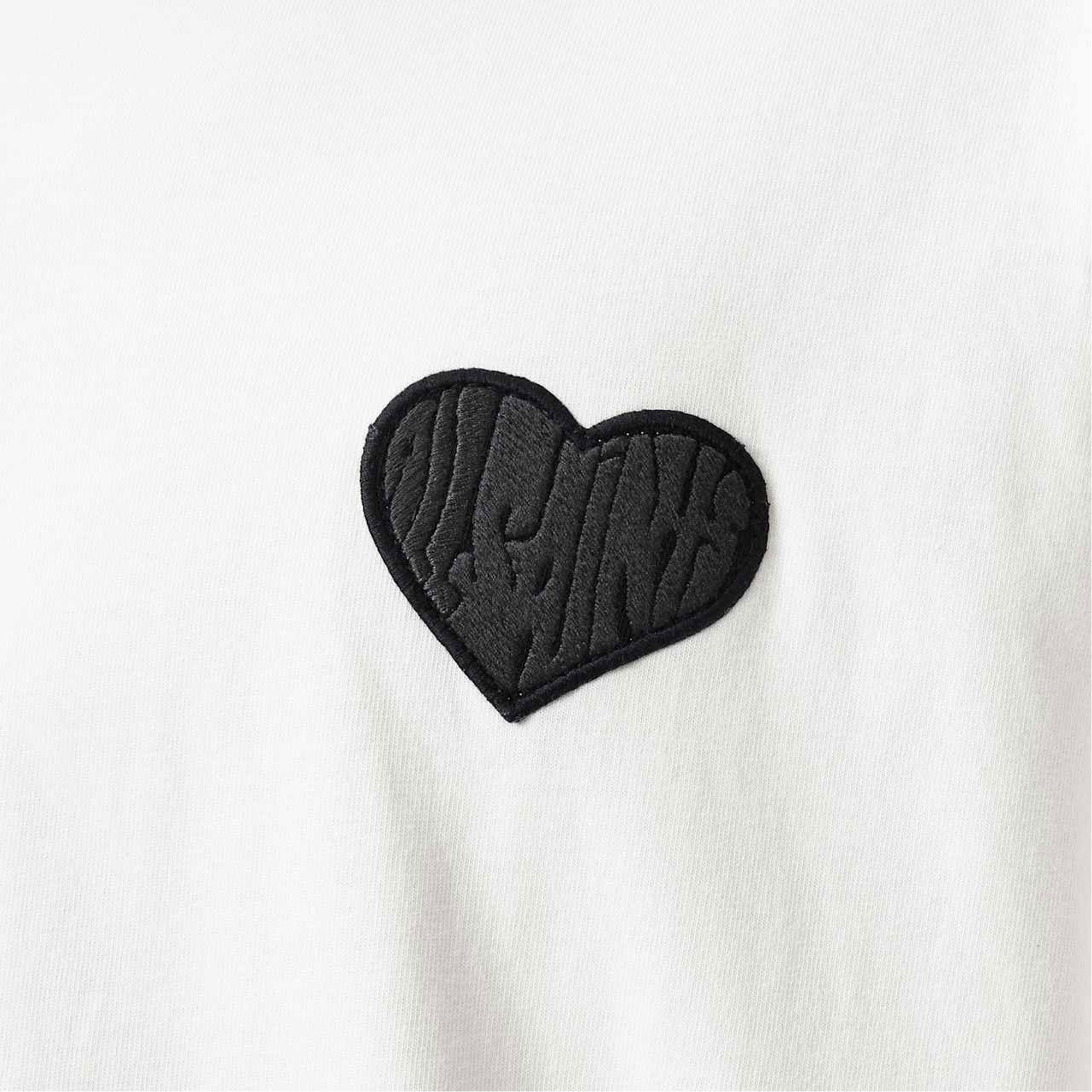 - Ribbed neckband, twin needle stitching, branded logo heart patch