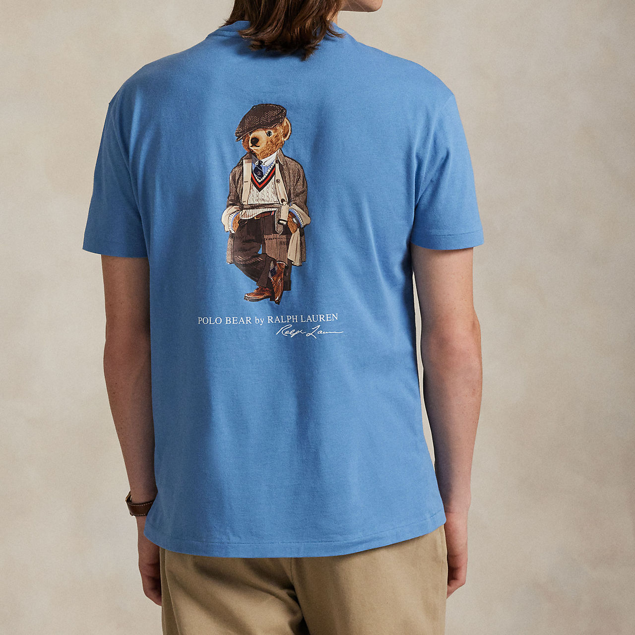 - Crew neck, short sleeves, straight hem, left chest patch pocket with logo detail, Polo Bear and logo script print at centre back