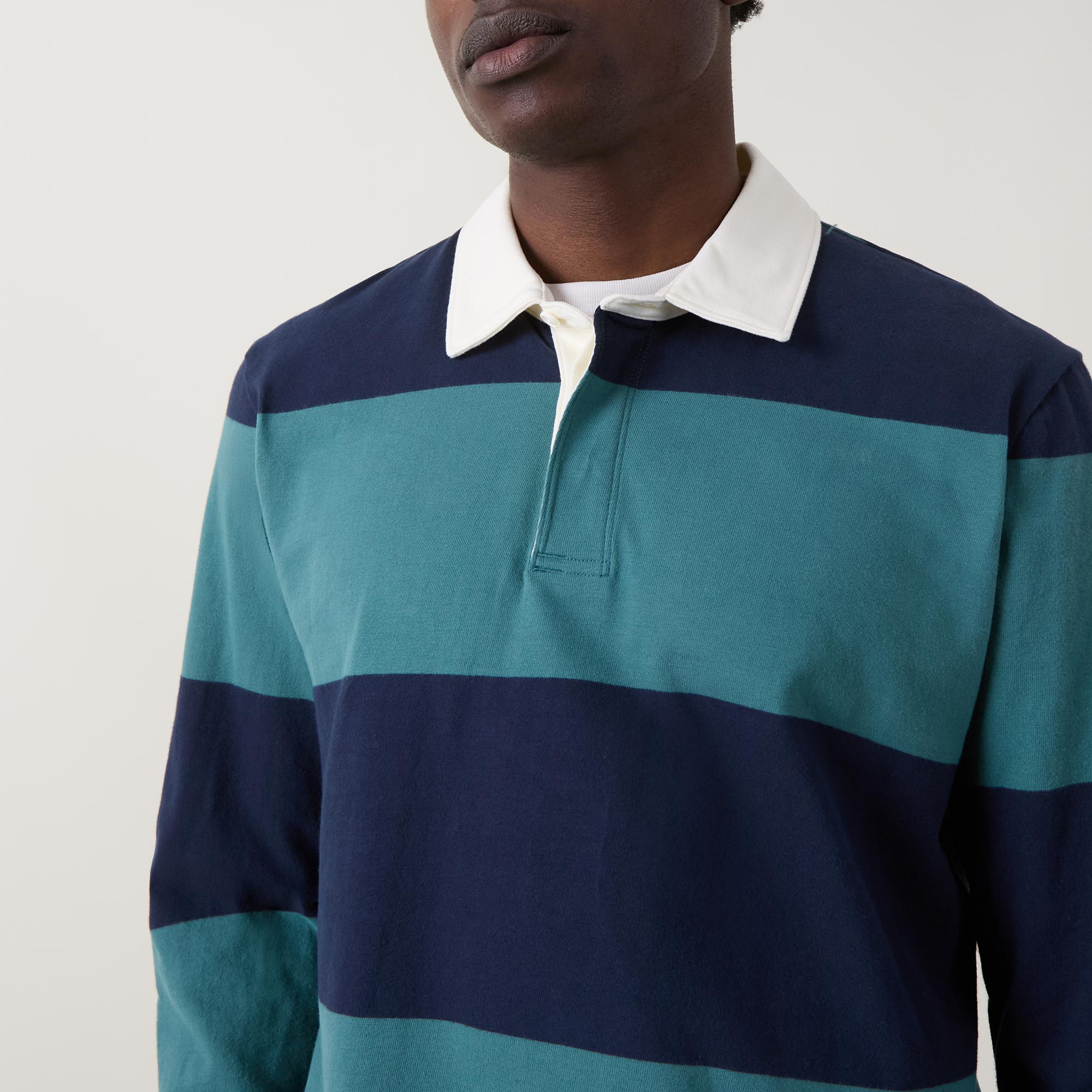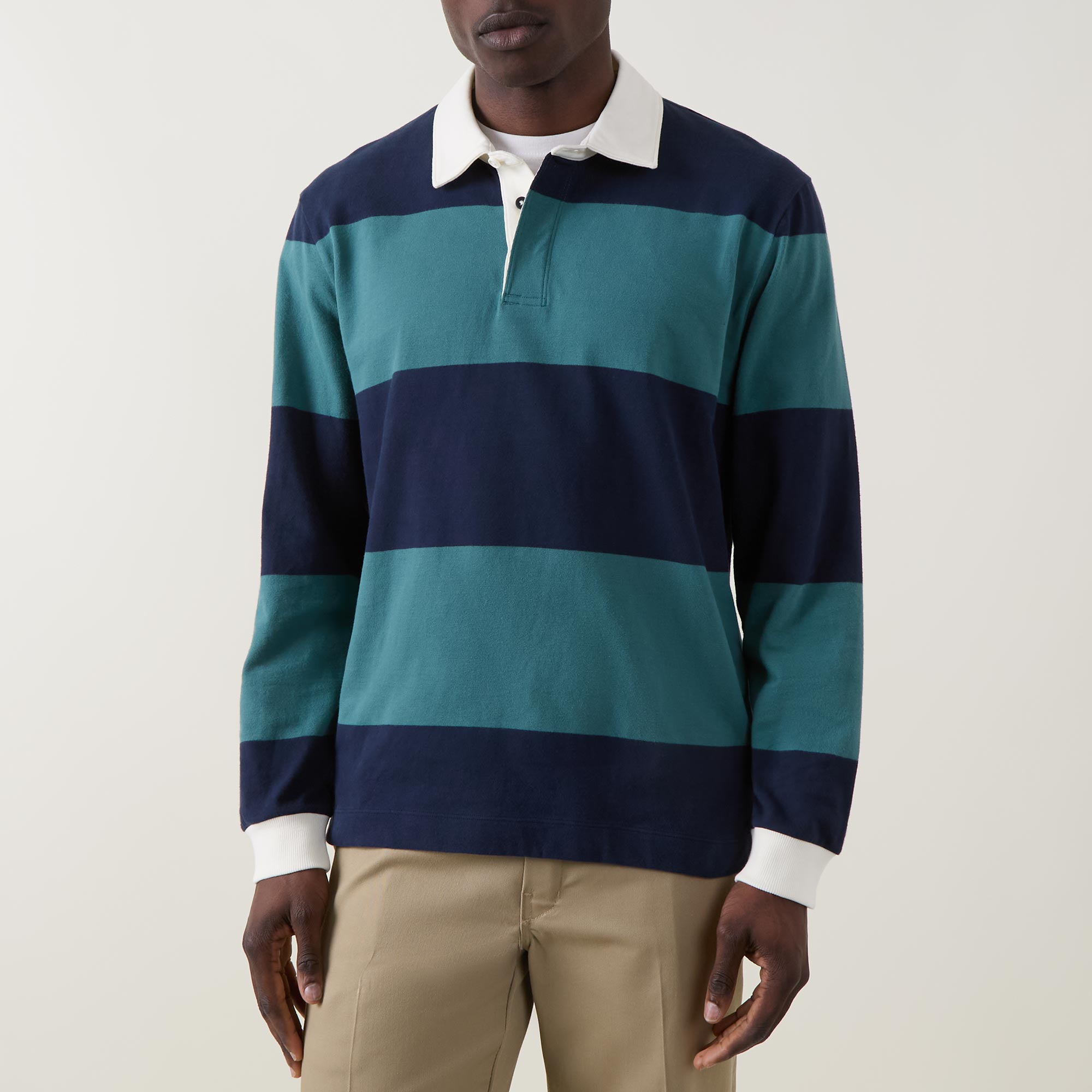 Score big on cosy. This classic rugby shirt is made of heavyweight cotton jersey that's brushed for extra softness, blending couch-level comfort with collegiate style.