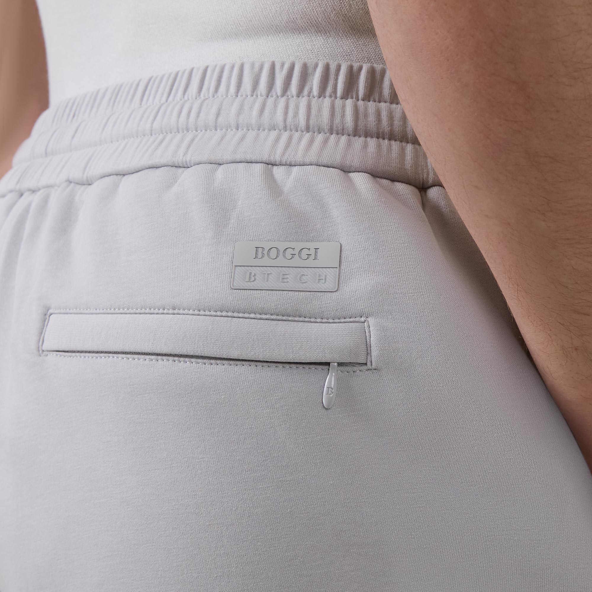 - Elasticated waistband with drawstring adjustable fit, side entry pockets, rear pocket, seam details, B Tech fabric, logo label