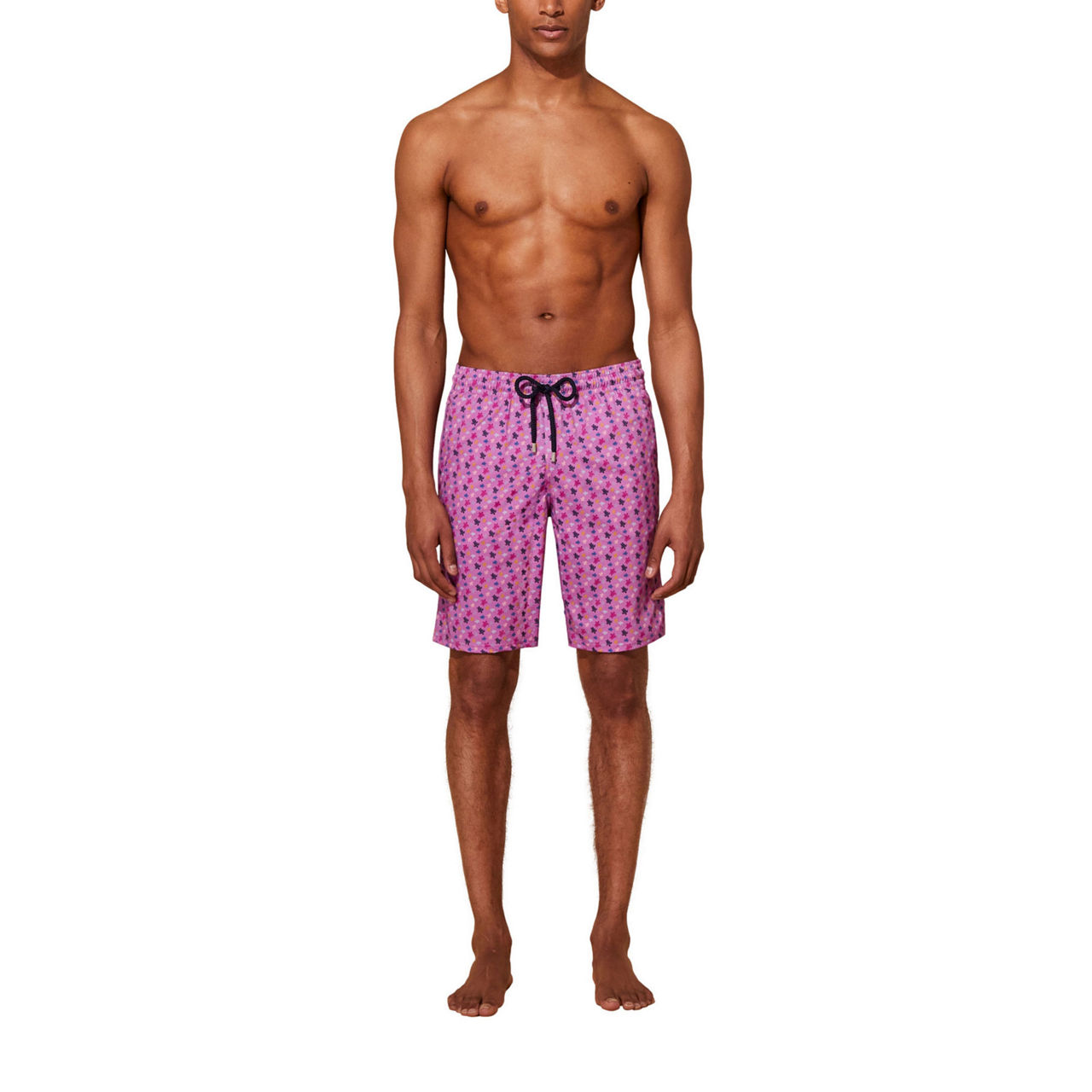 - Elasticated waistband with four lines of stitching, drawstring fastening with branded tips, micro Ronde des Tortues turtle print, branded logo patch, patch pocket, silver-tone eyelets, stretch finish, quick-drying, soft inner briefs with no centre seam