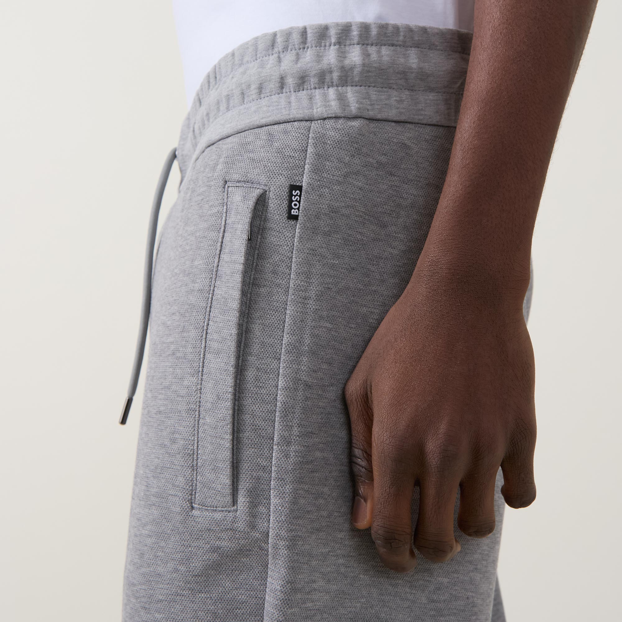 - Mid rise, slim leg, elasticated waistband, adjustable drawstring fastening, two side entry pockets, one rear welt pocket, ribbed cuffs, logo tag, textured finish