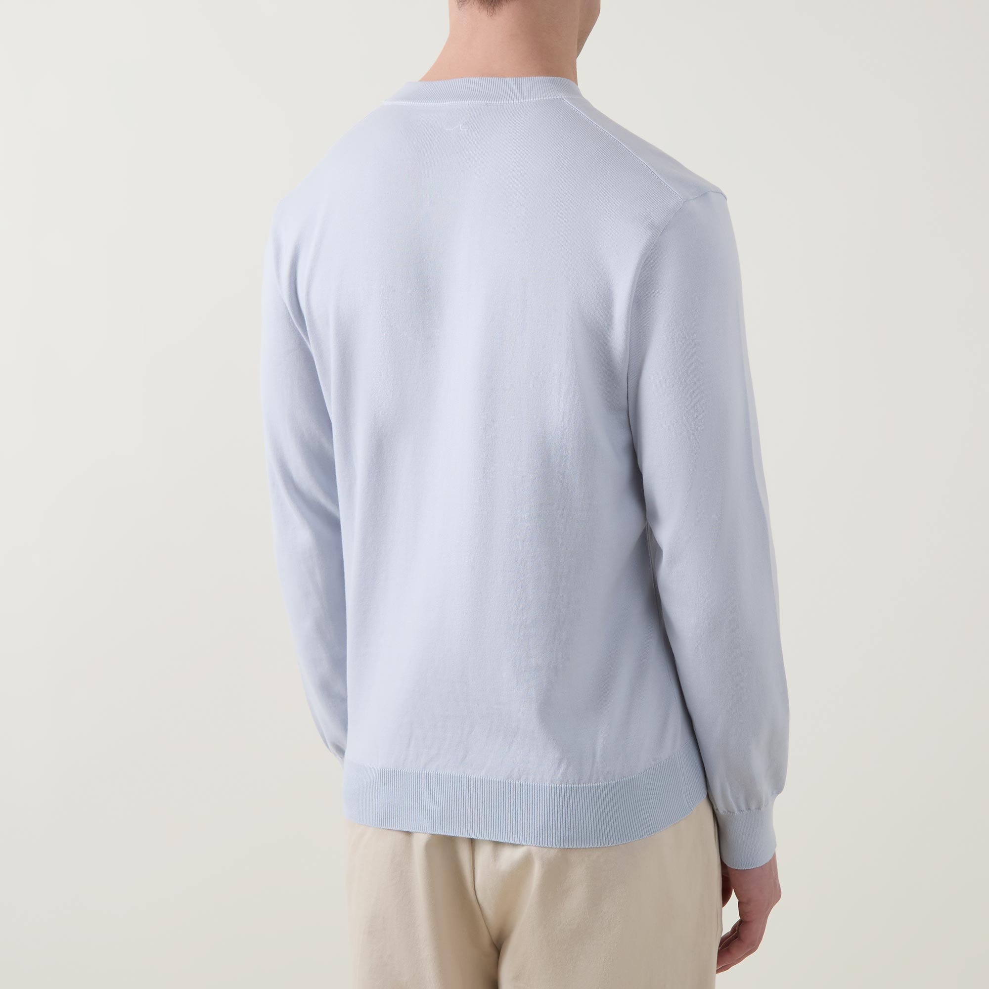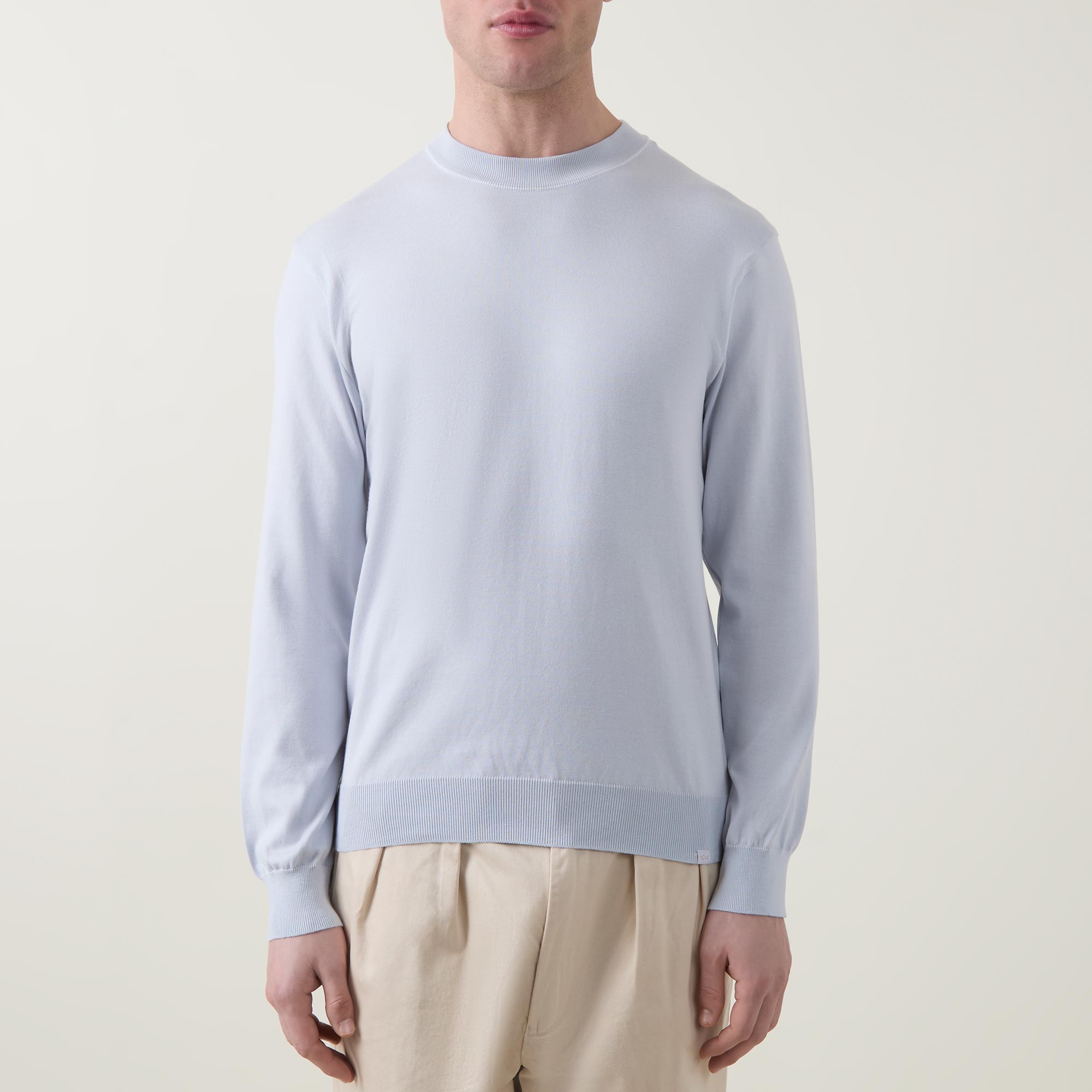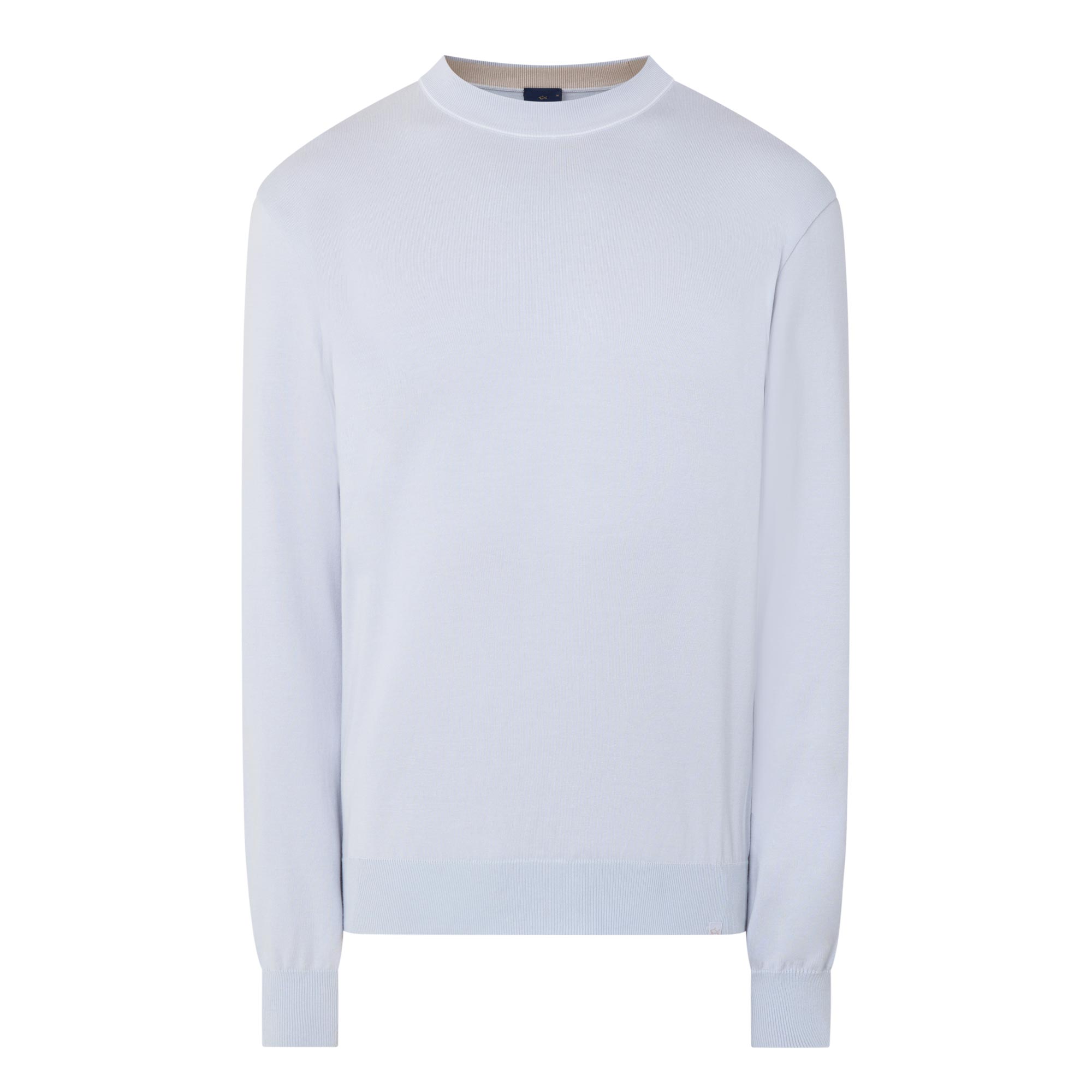 - Crew neckline, long sleeves, slightly dropped shoulders, logo patch on hem, ribbed trims, pullover style, smooth fabric