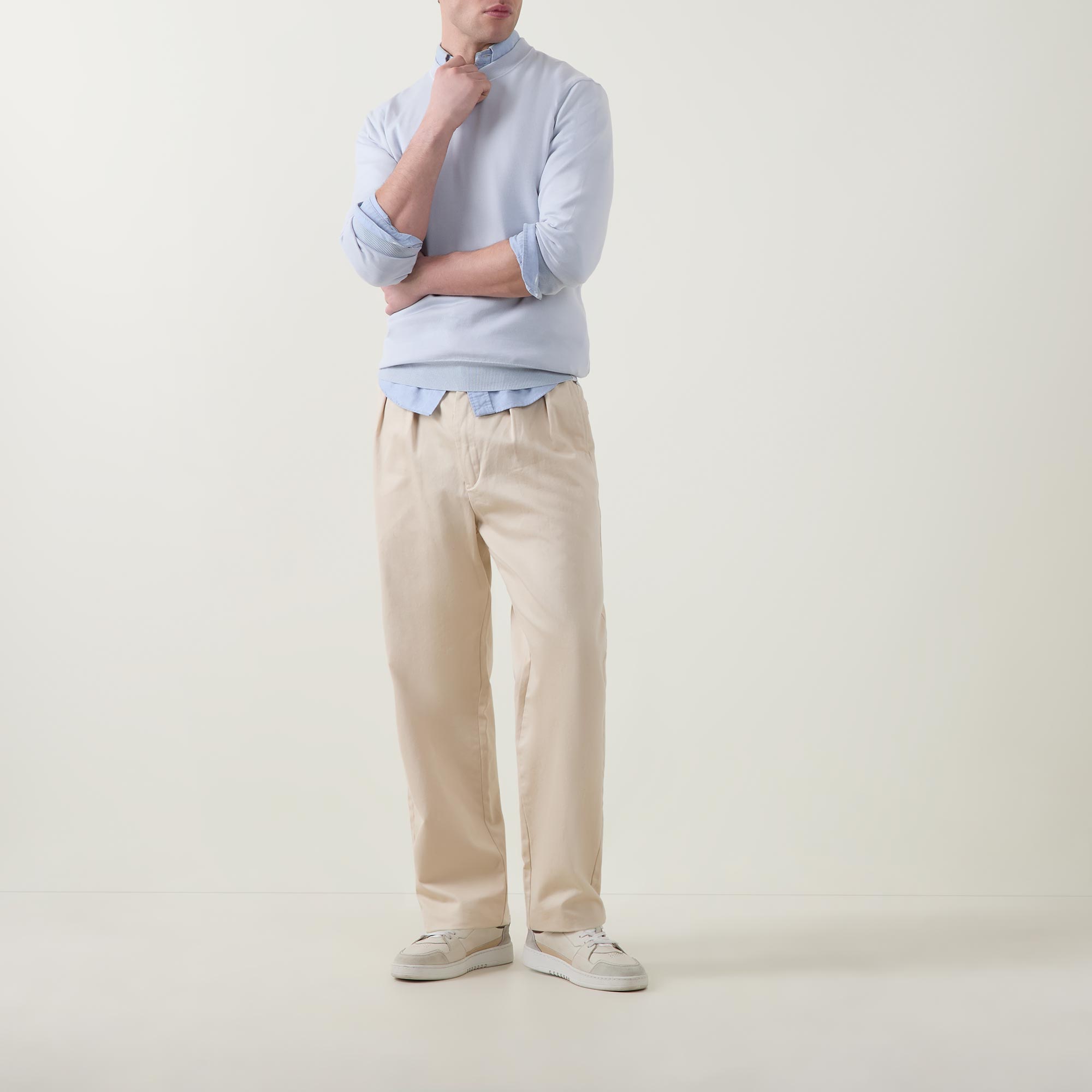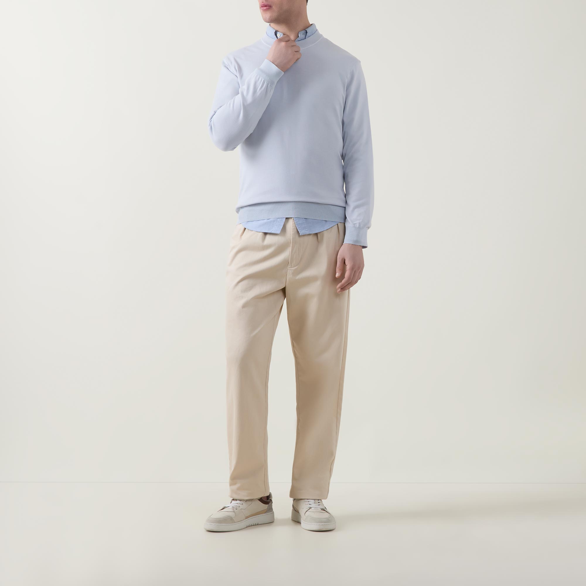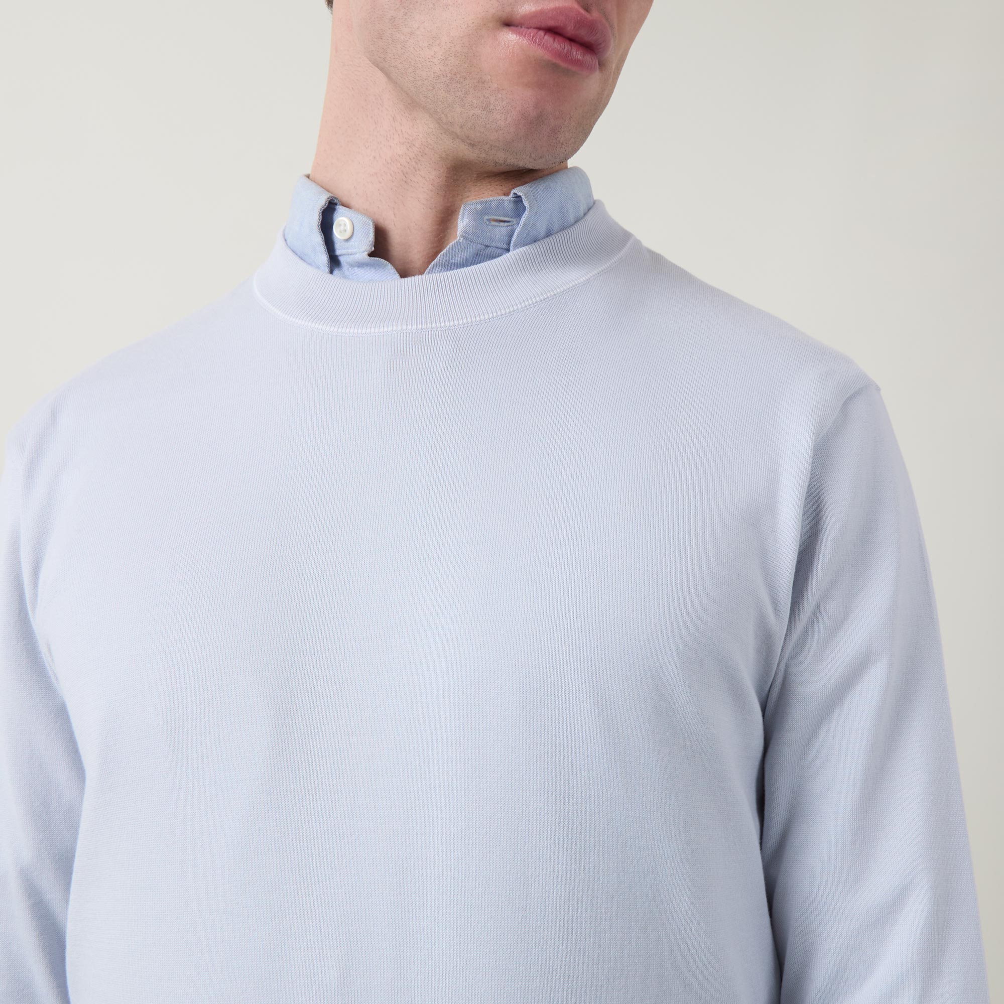 - Crew neckline, long sleeves, slightly dropped shoulders, logo patch on hem, ribbed trims, pullover style, smooth fabric