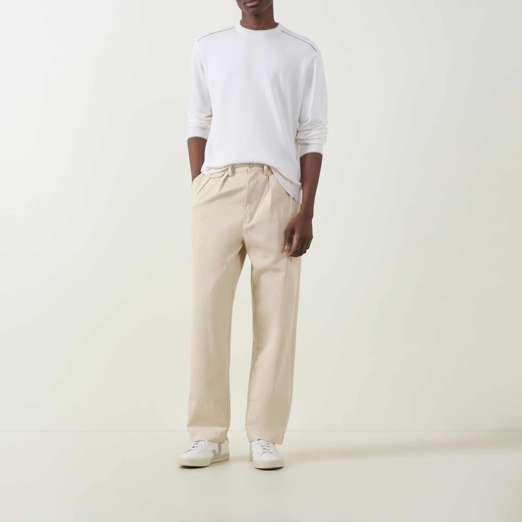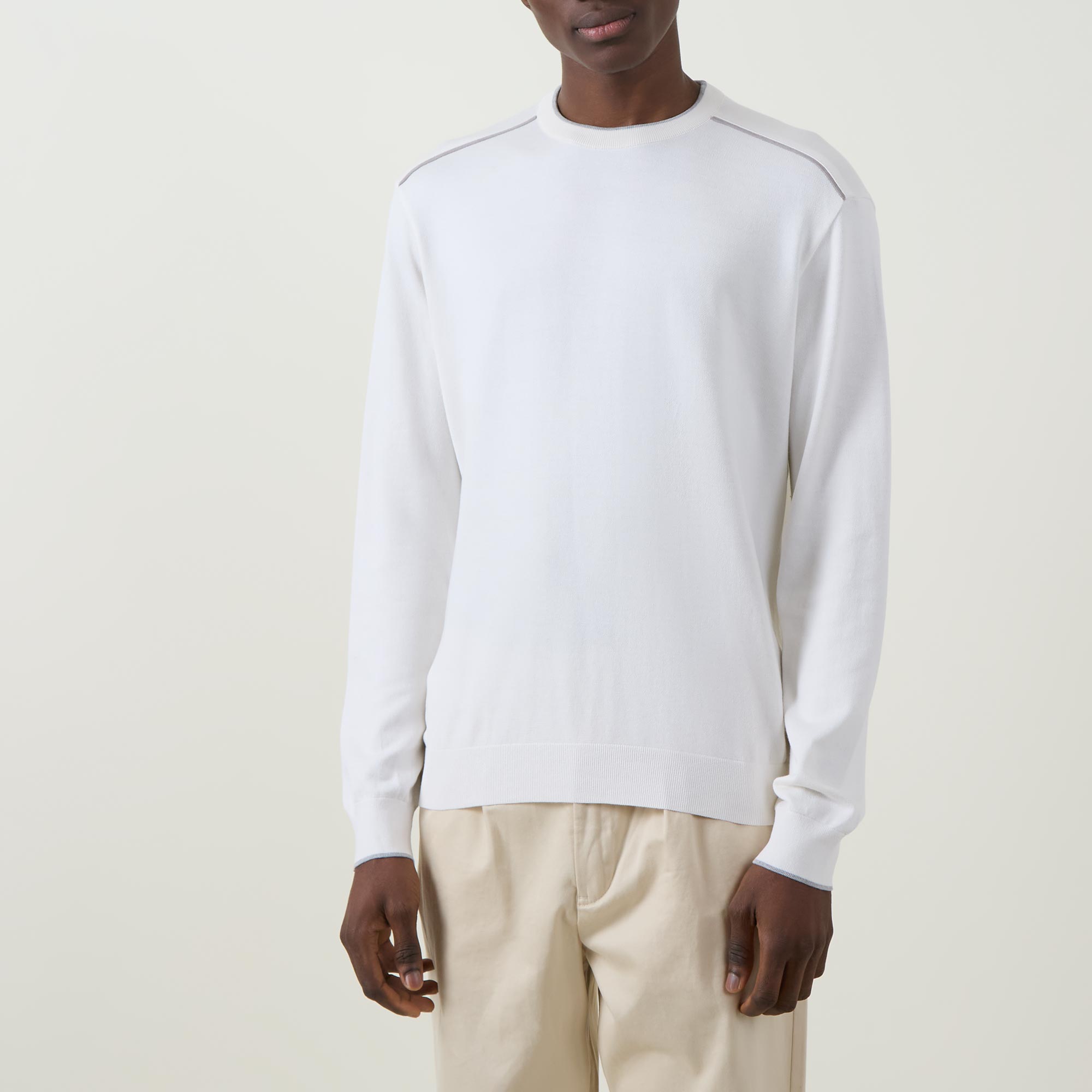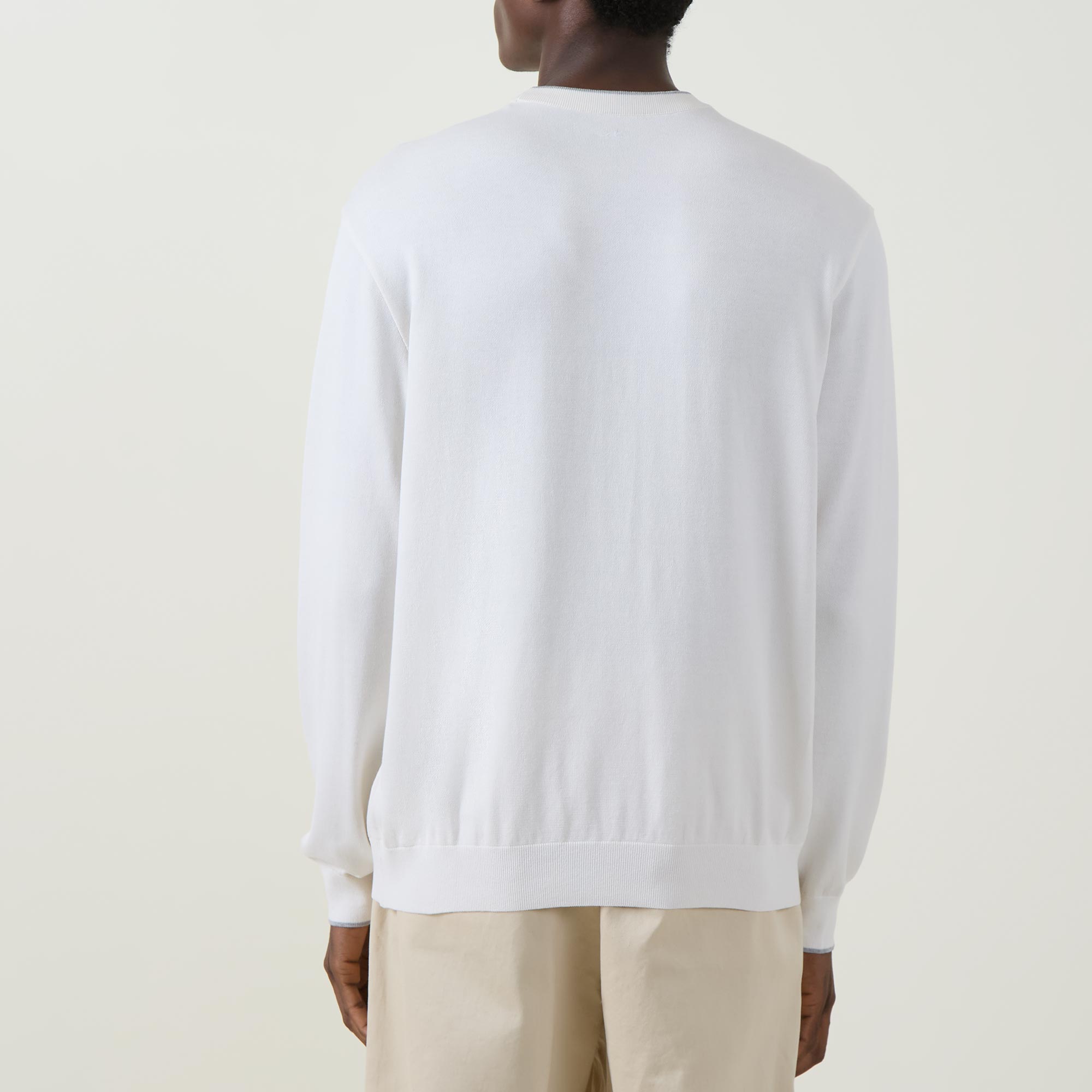 - Crew neckline, long sleeves, slightly dropped shoulders, logo patch on hem, ribbed trims, pullover style, smooth fabric