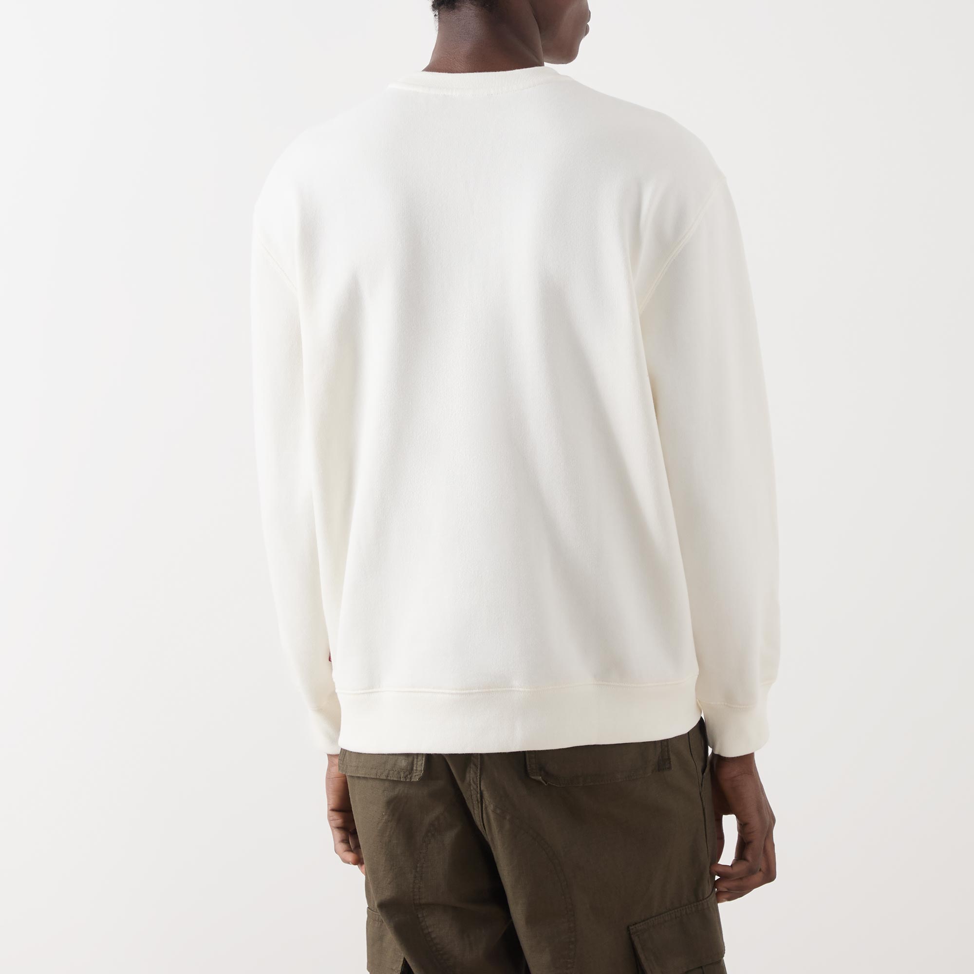 • Crew neck, dropped shoulders, long sleeves, straight hem, ribbed trims, tonal stitching, logo tag, logo detail on the chest, soft finish