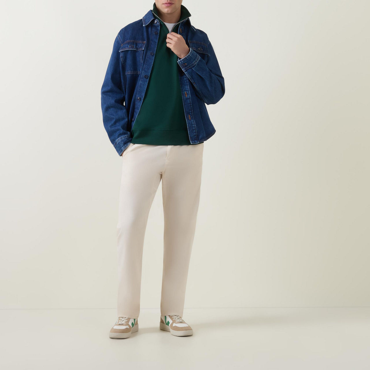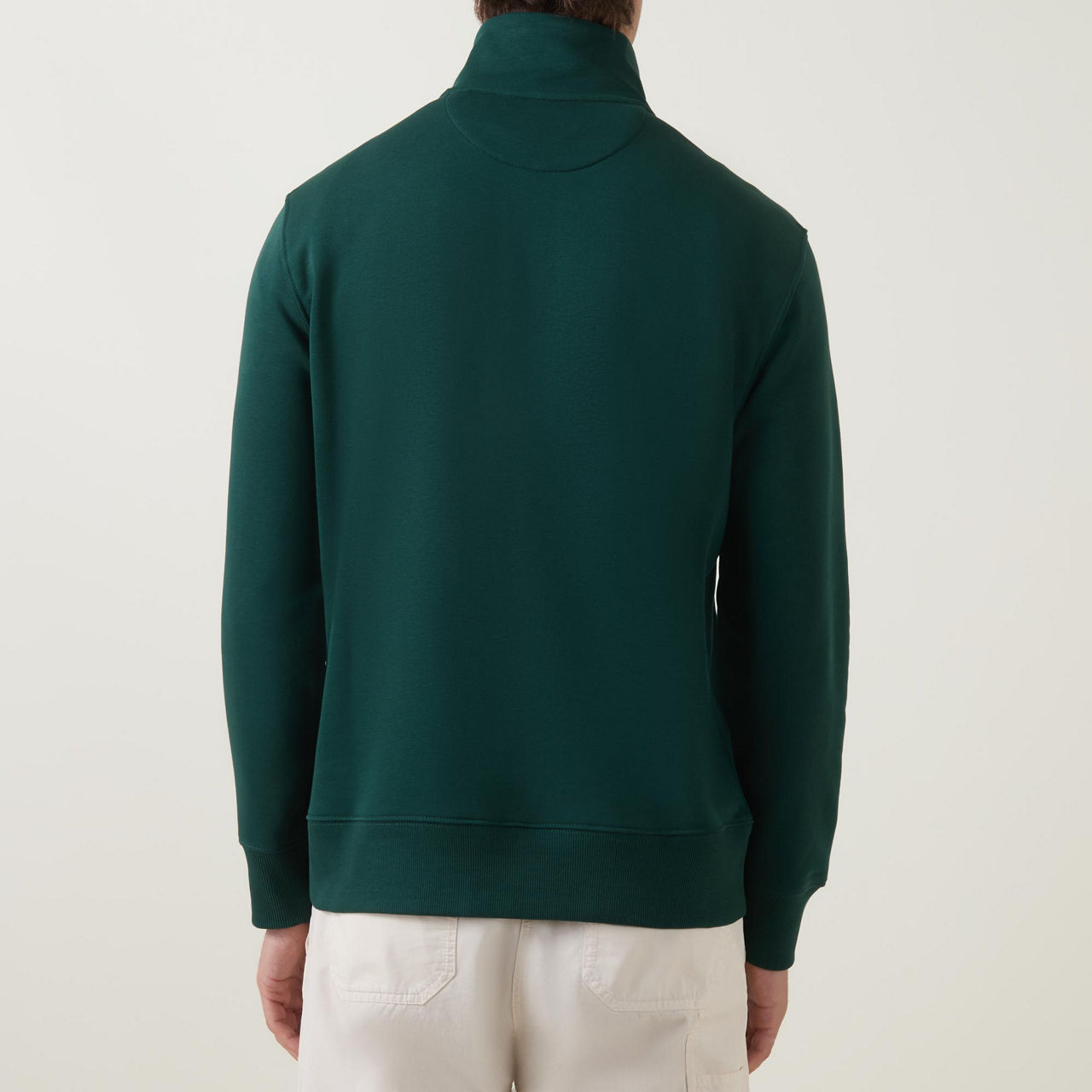 - Half-zip, logo detail, long sleeves, ribbed trims, funnel neckline