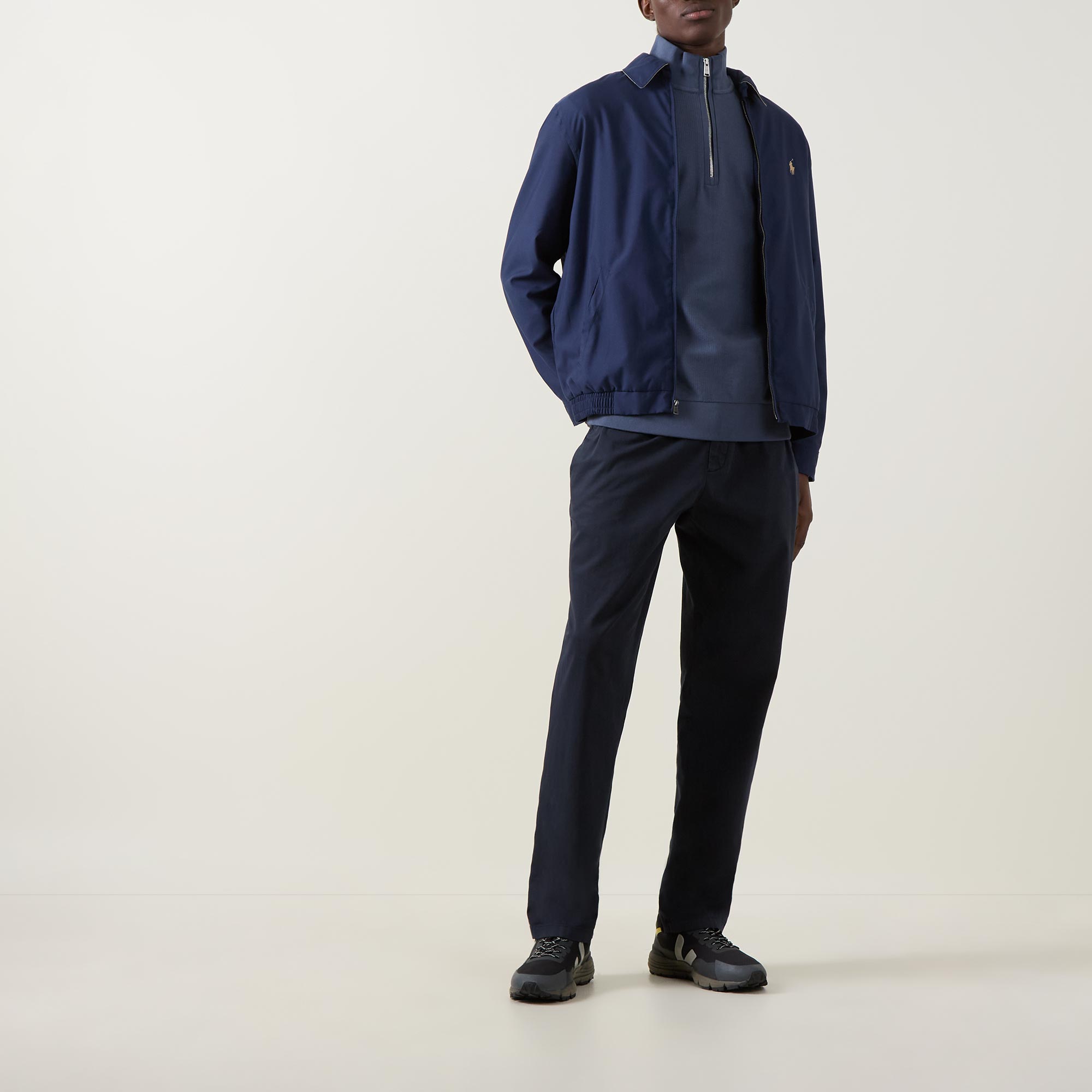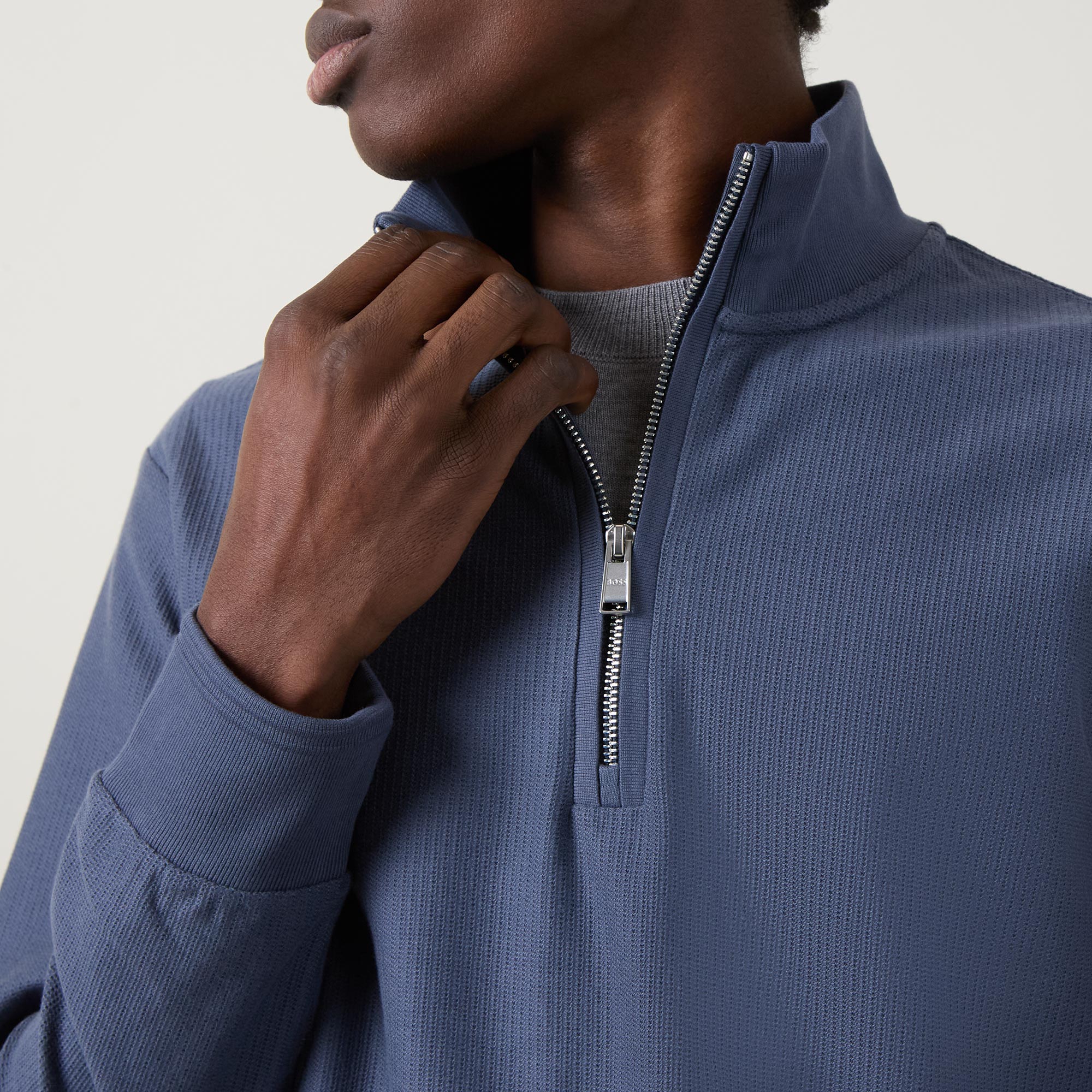 - Half-zip fastening, funnel neckline, long sleeves, ribbed trims, straight hemline