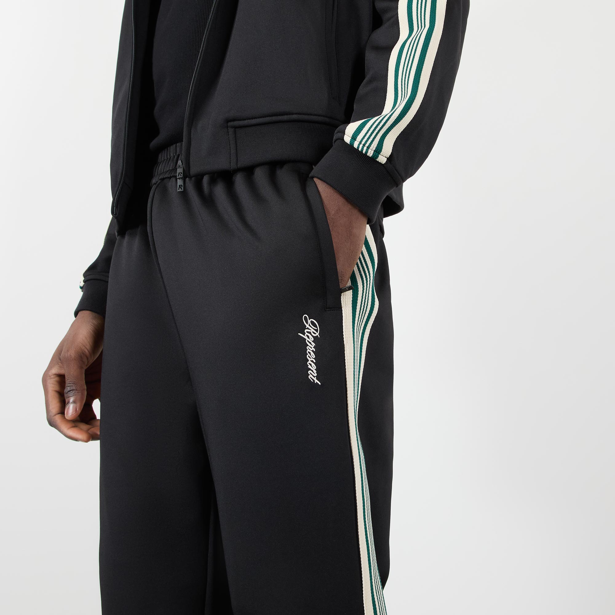 • Straight leg silhouette, elasticated waistband for easy wear, side taping detail, frontal pockets, embroidered logo