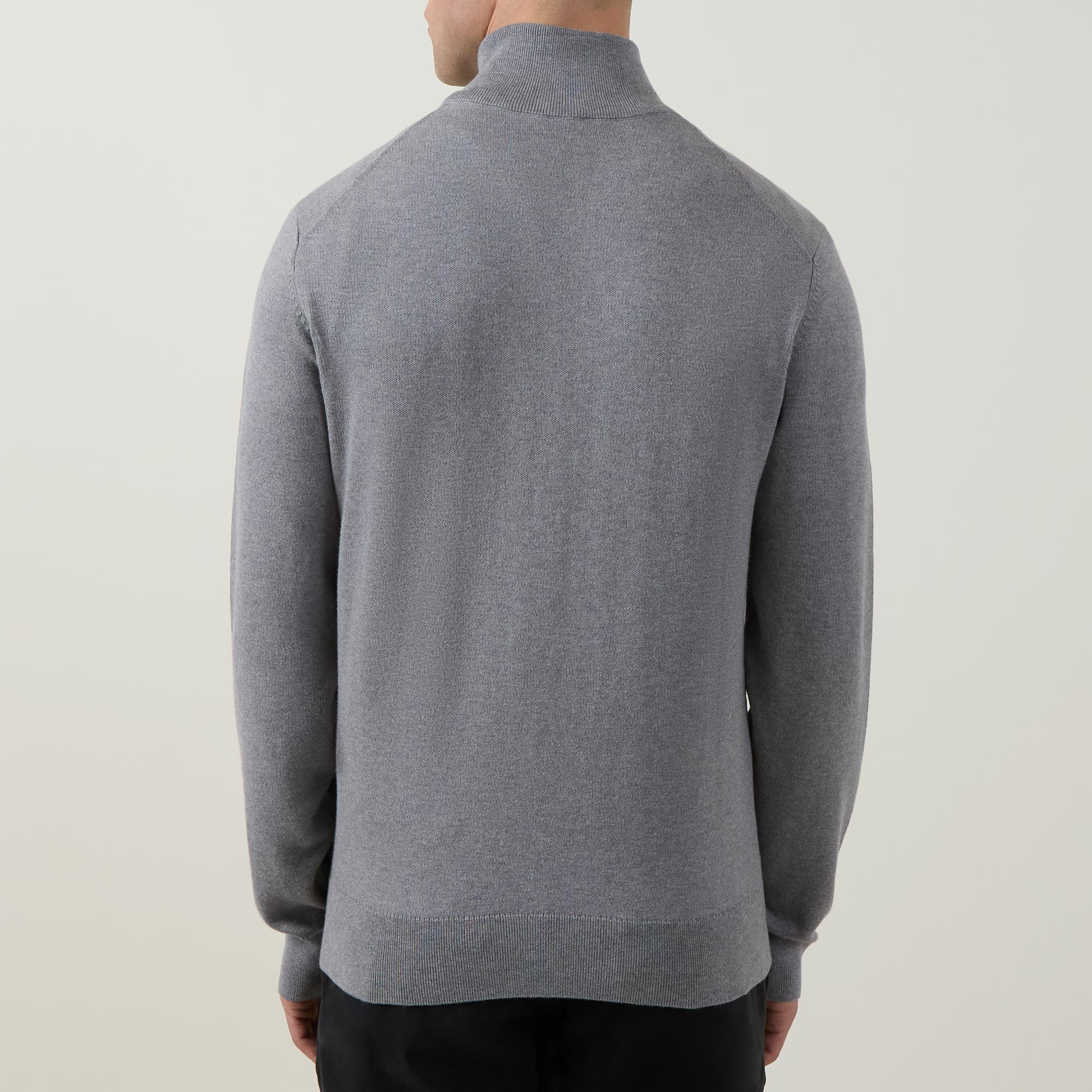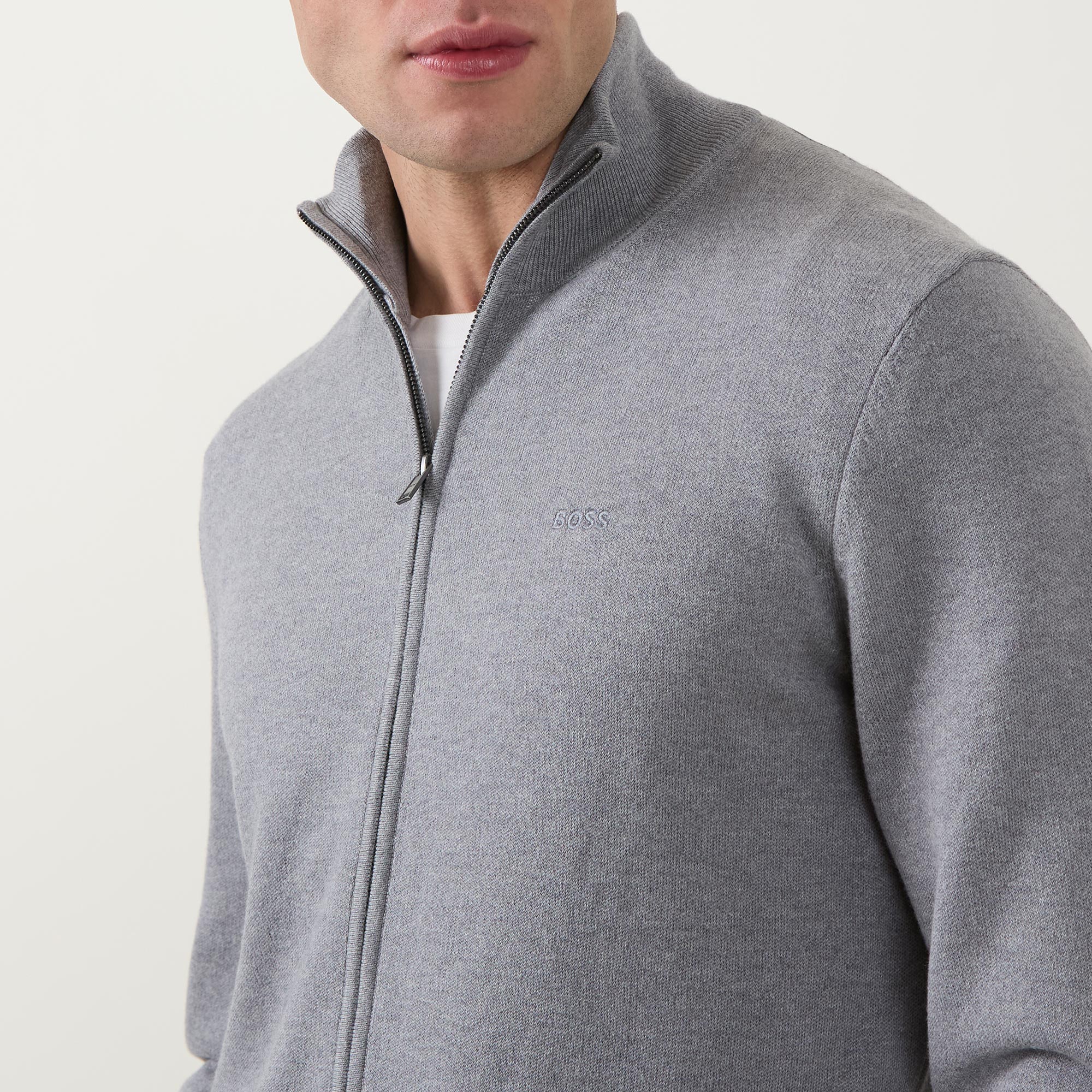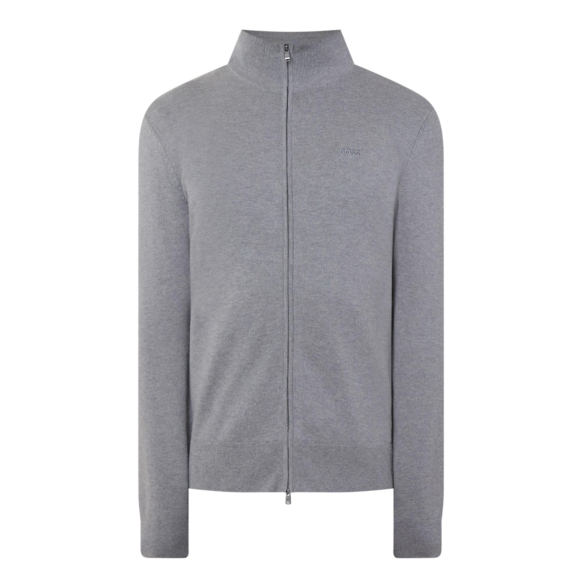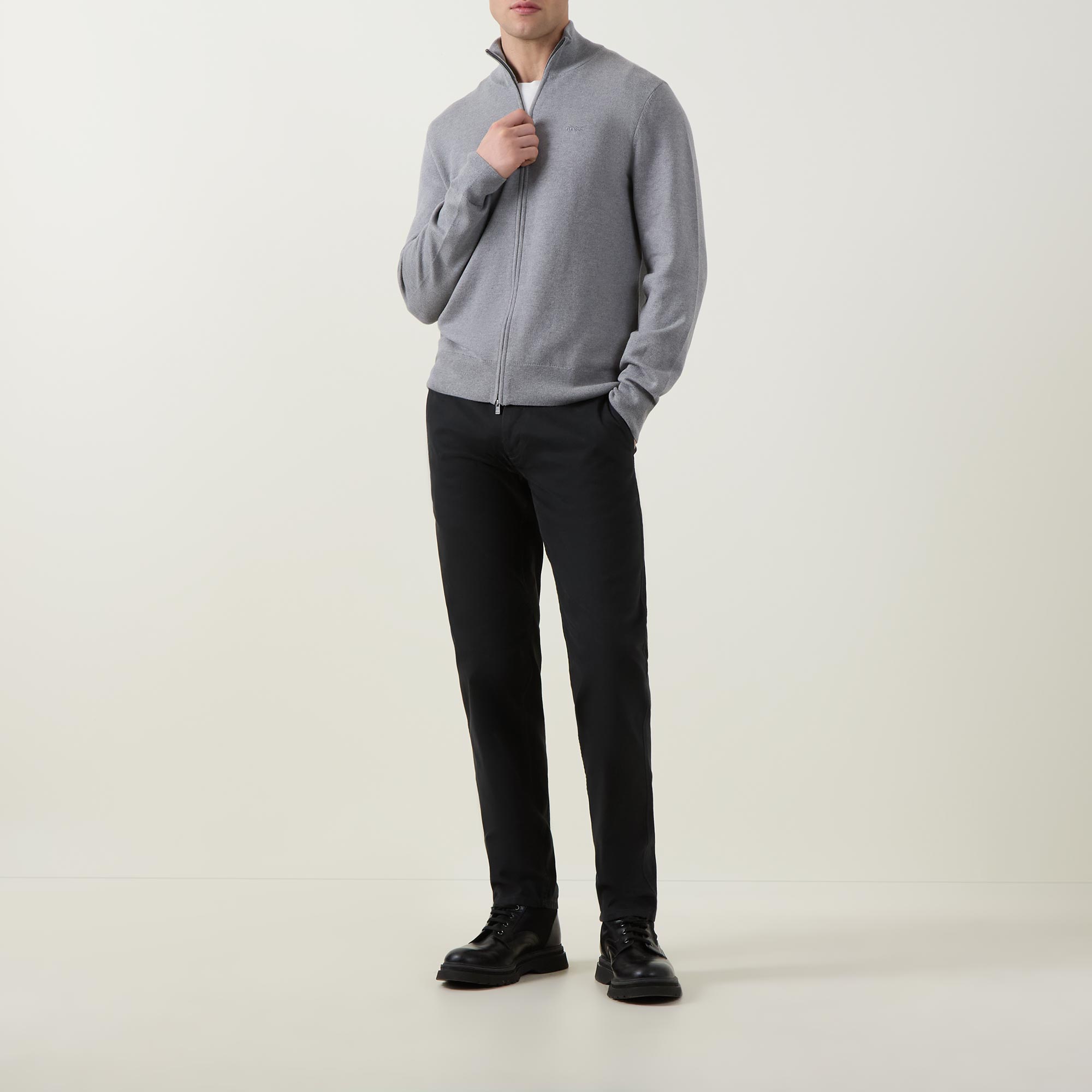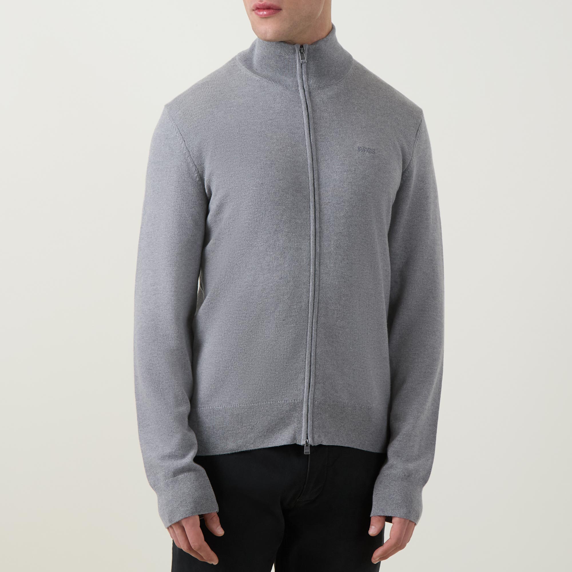 - Funnel neck, long sleeves, two-way front zip fastening, straight hem, ribbed trims, tonal logo detail on the chest, knit construction