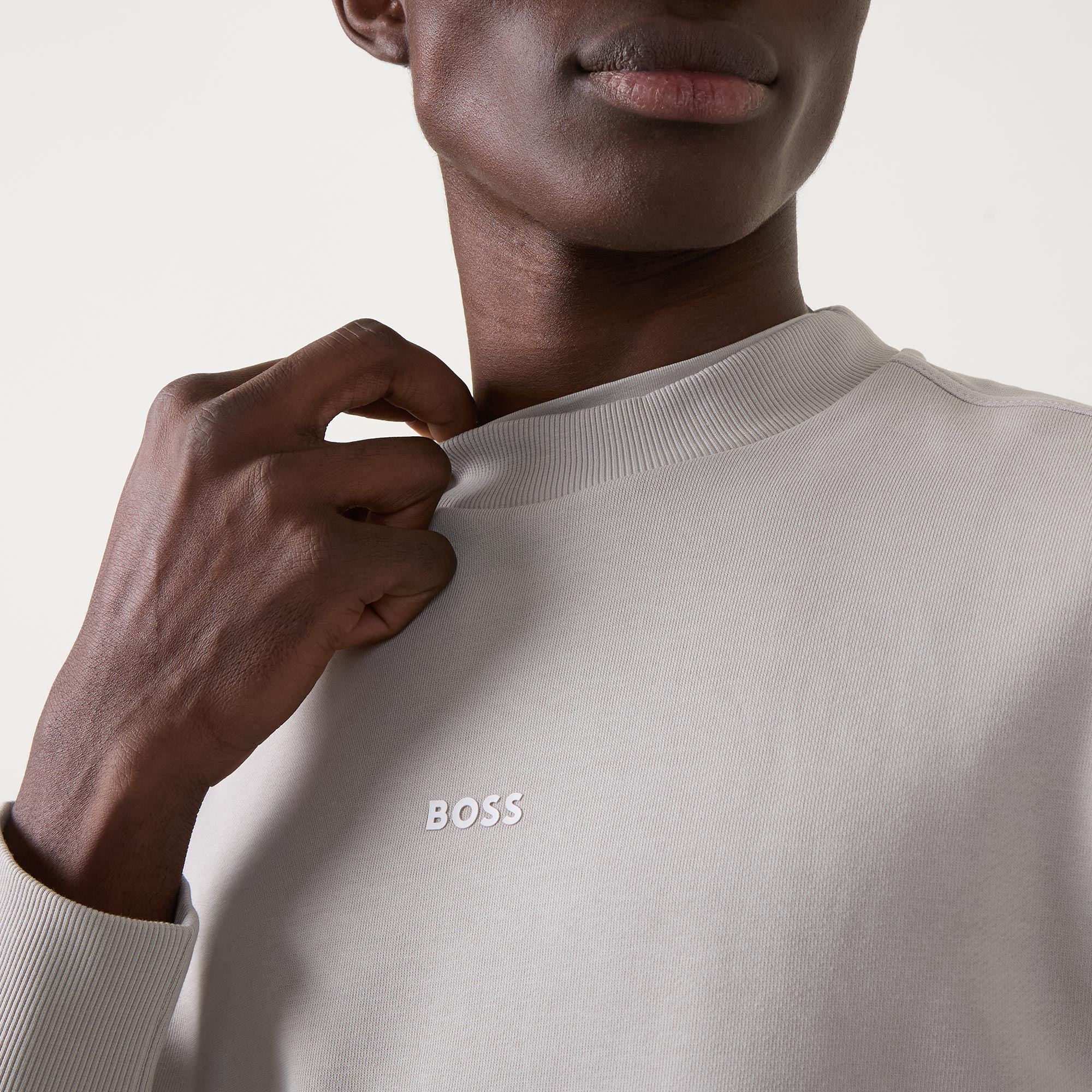 - Crew neckline, long sleeves, straight hemline, logo detail, ribbed trims