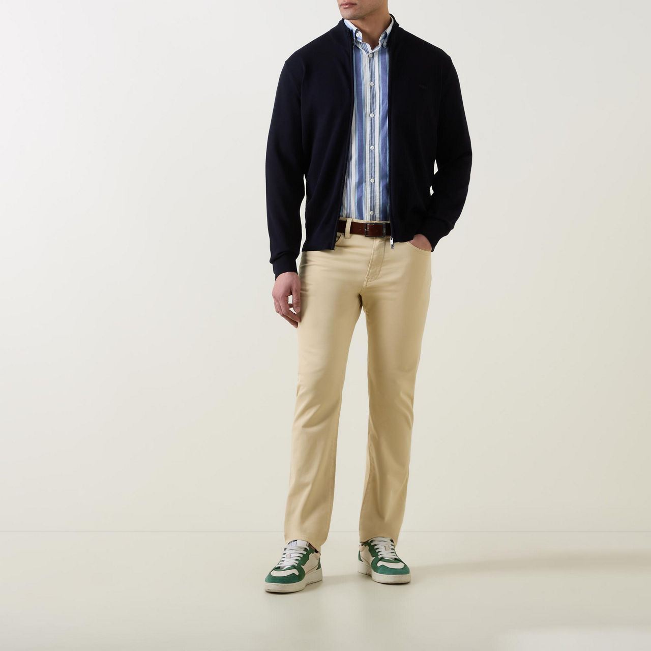 - Composition and Care: Main: 98% cotton, 2% elastane. Pocketing: 65% polyester, 35% cotton. Machine wash at 30 degrees