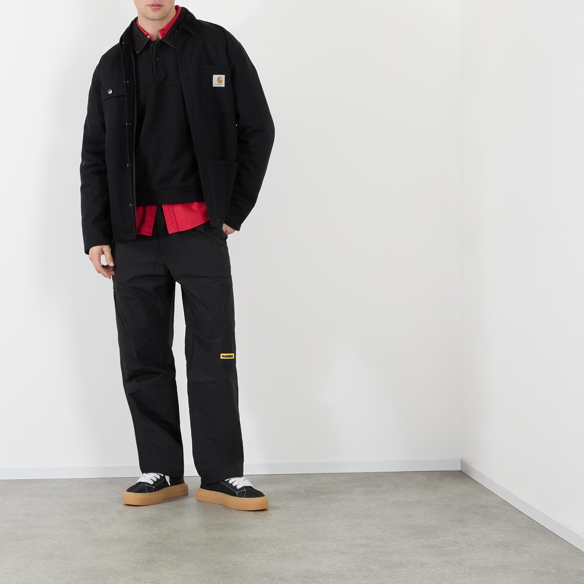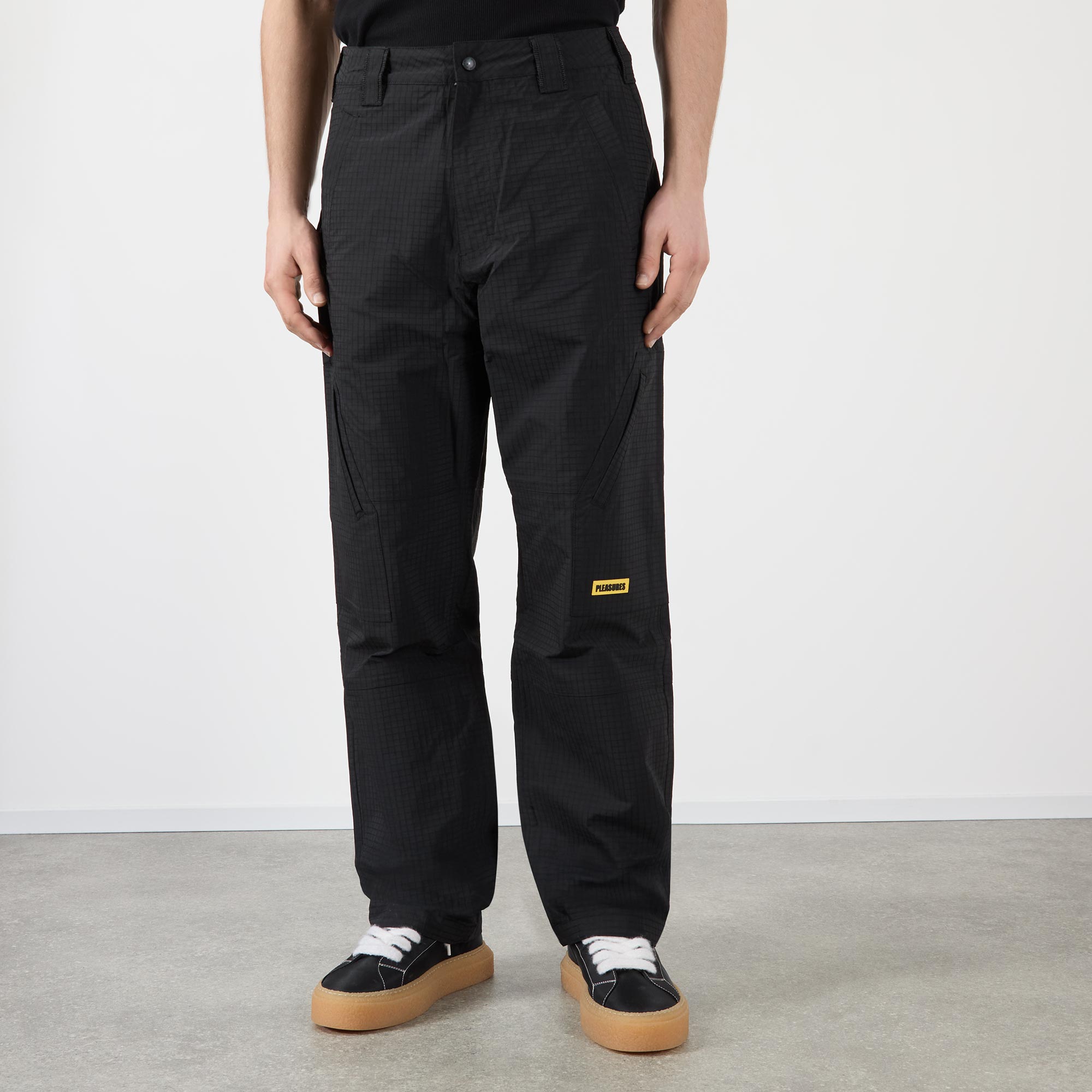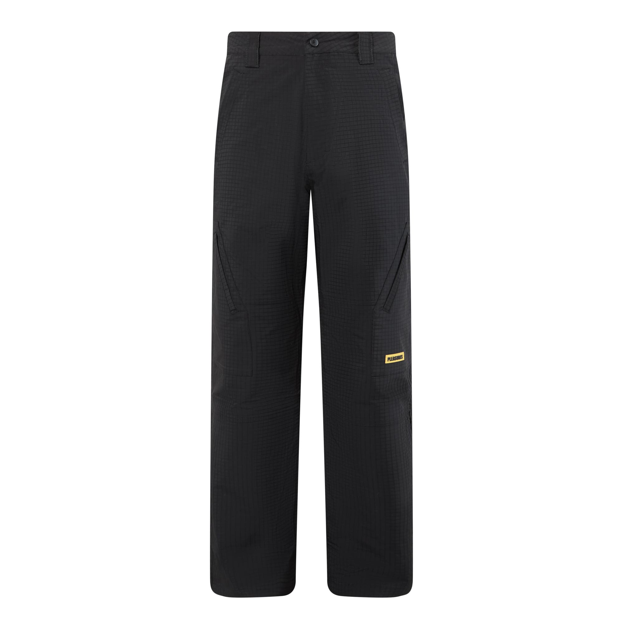 - Mid rise, straight tapered leg, belt loops, concealed zip fly and button fastening, two side entry pockets, two rear welt pockets, selection of cargo pockets, clean hems, logo badge, tonal printed finish