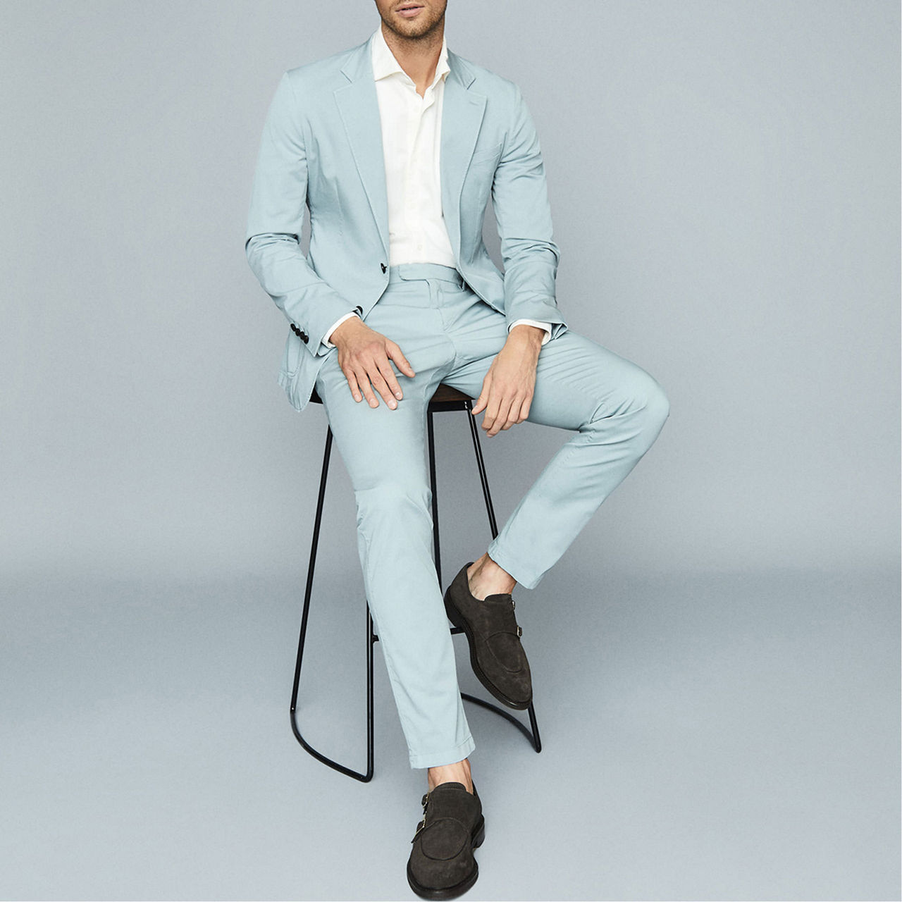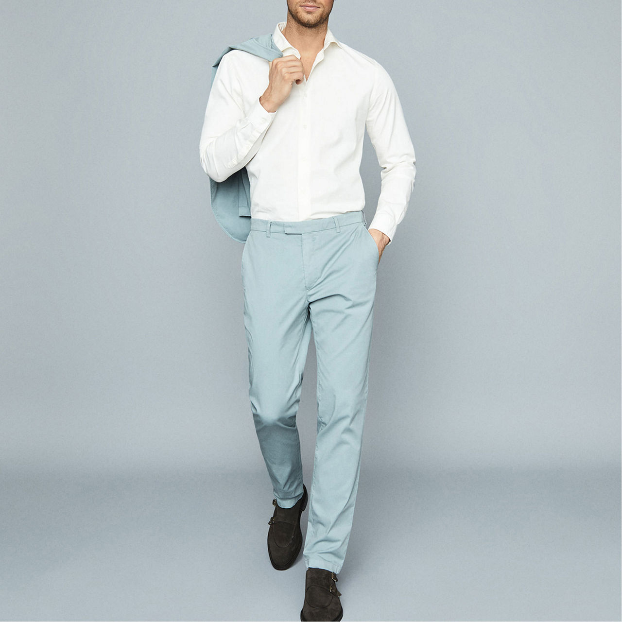 Fusing a modern fit with a cotton-rich fabrication, the World trousers in light-blue are a smart alternative for weekend wear. They have a four-pocket design and are cuto to a slim fit. Find the perfect pairing in our new arrivals.