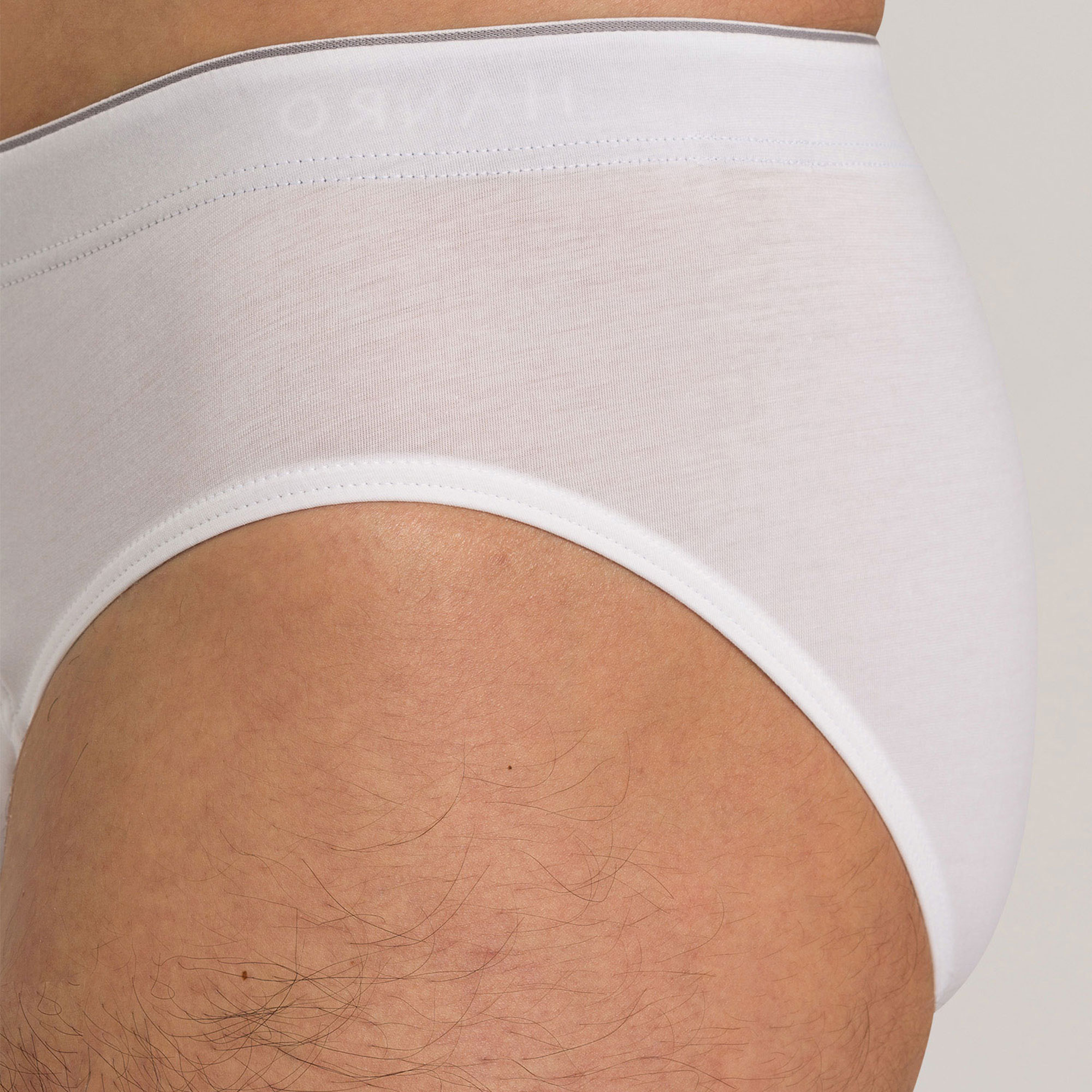 - White stretch-cotton brief with an elasticated waistband, supportive pouch at front, brand logo print at inside waistband.