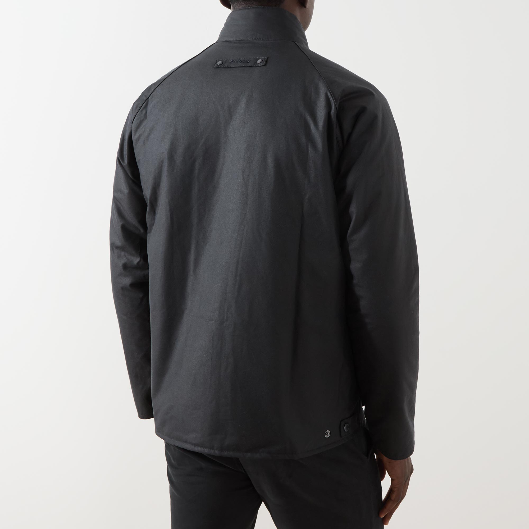 - Stand-up collar, long sleeves, snap-button placket, two side flap pockets, logo embroidery, snap-button hemline, waxed finish