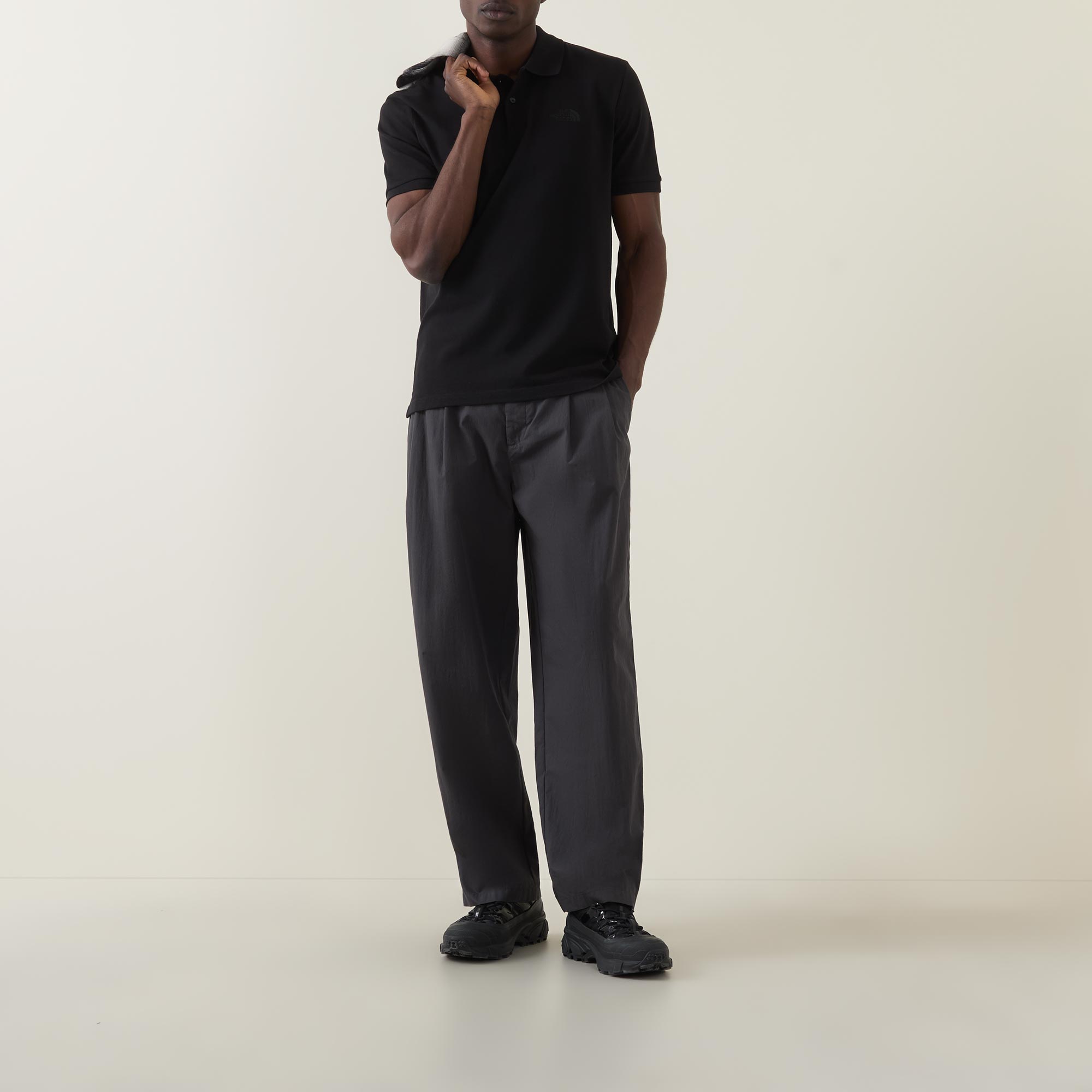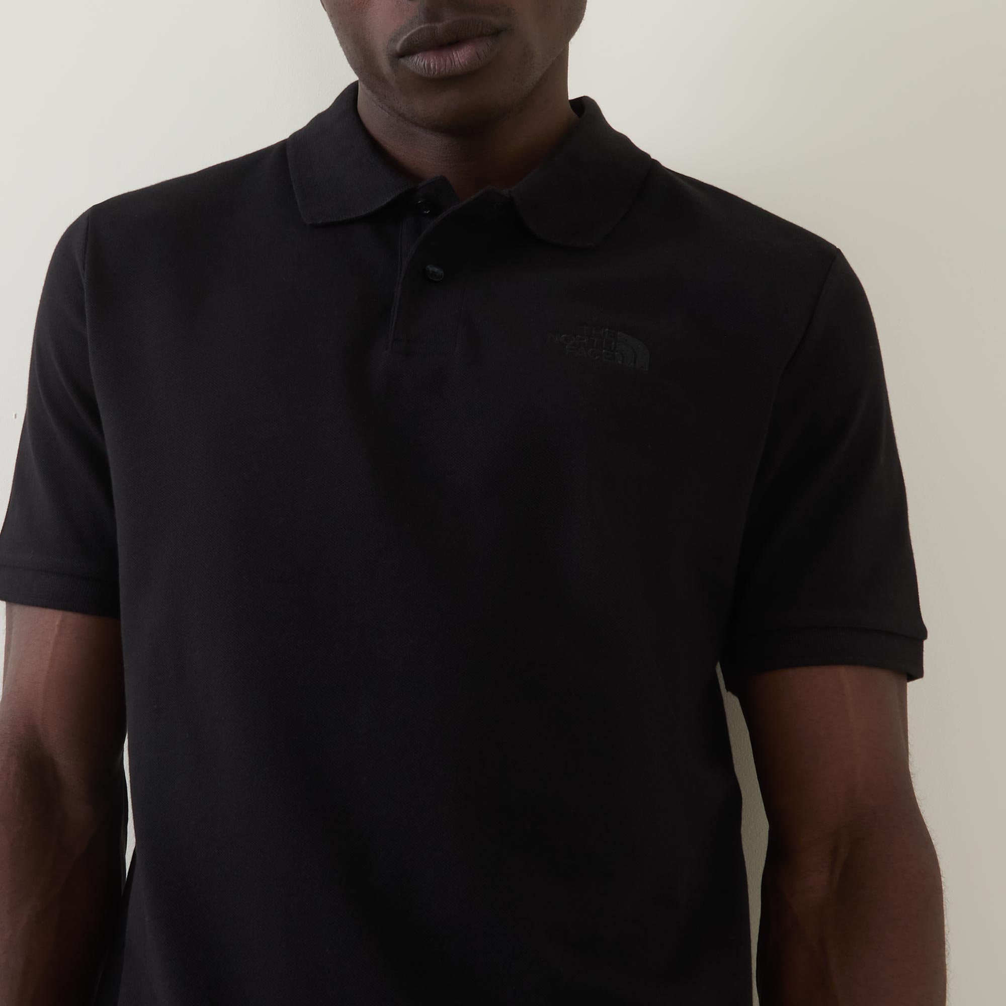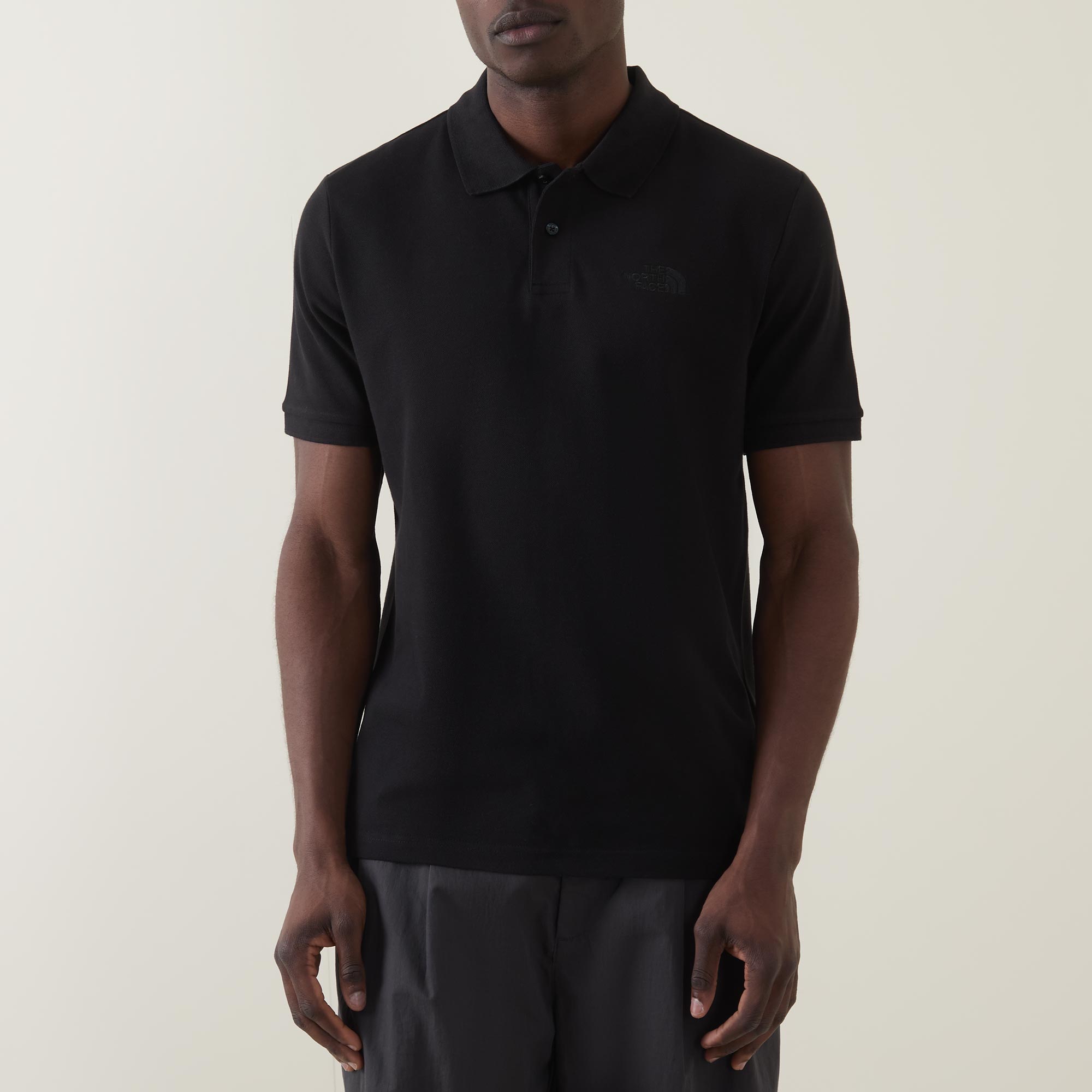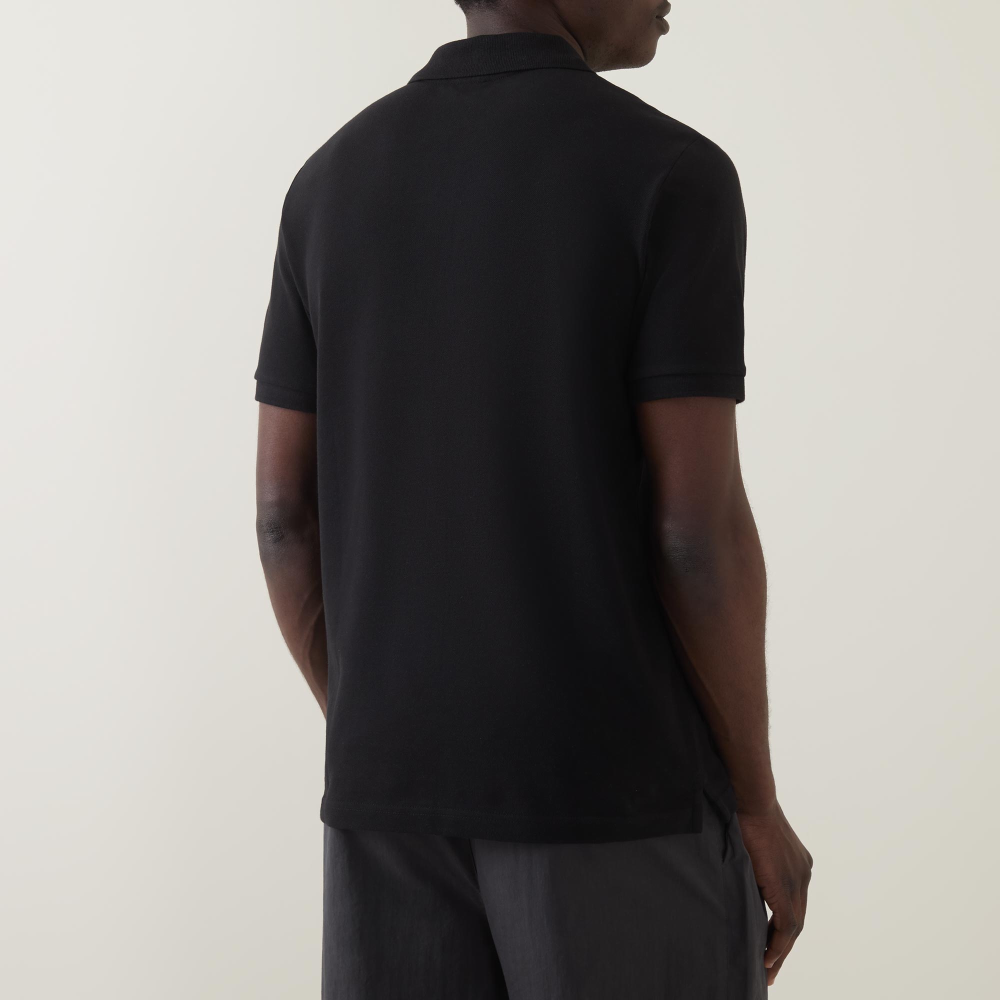 - Flat knit collar and cuffs, short sleeves, button fastening, straight hemline, split side seams, embroidered tonal logo detail