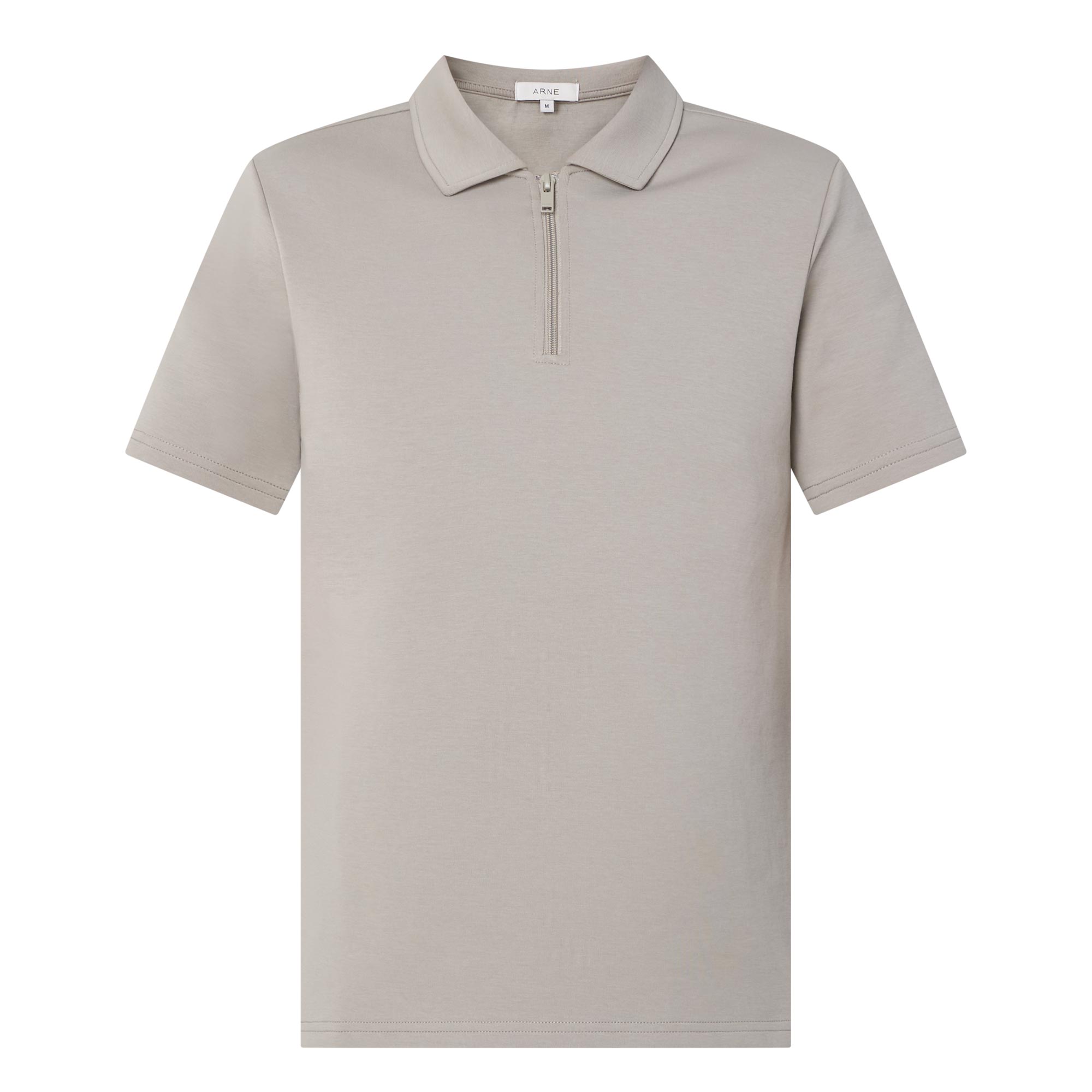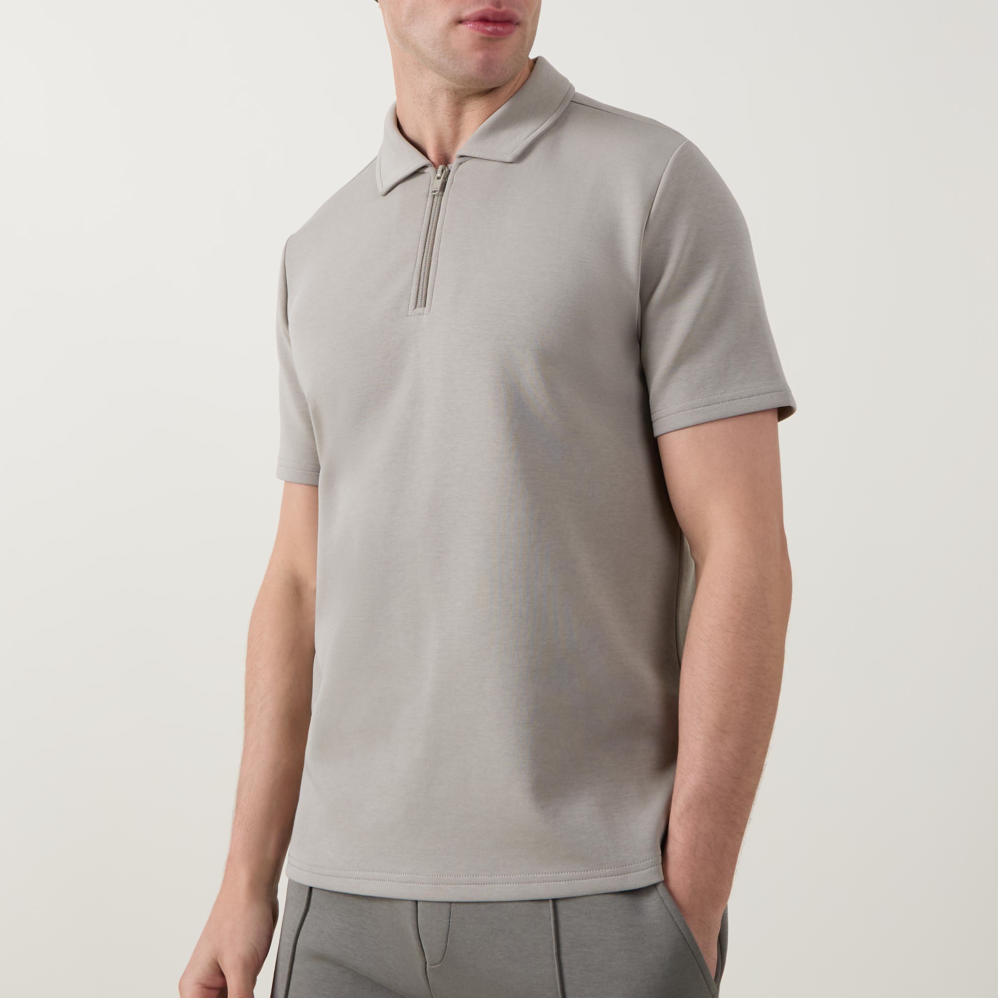 • Polo collar, zip half placket, short sleeves, straight hem, tonal stitching, high density tonal logo embroidery at the back of the neck, smooth finish