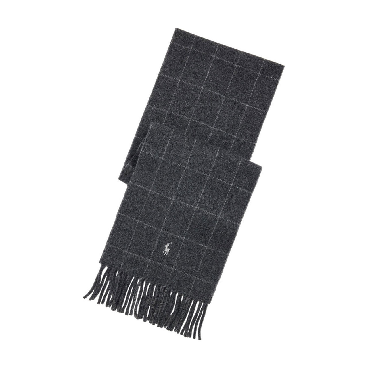 • Rope-fringe design, signature Polo Player logo embroidered at one end, check print, soft finish