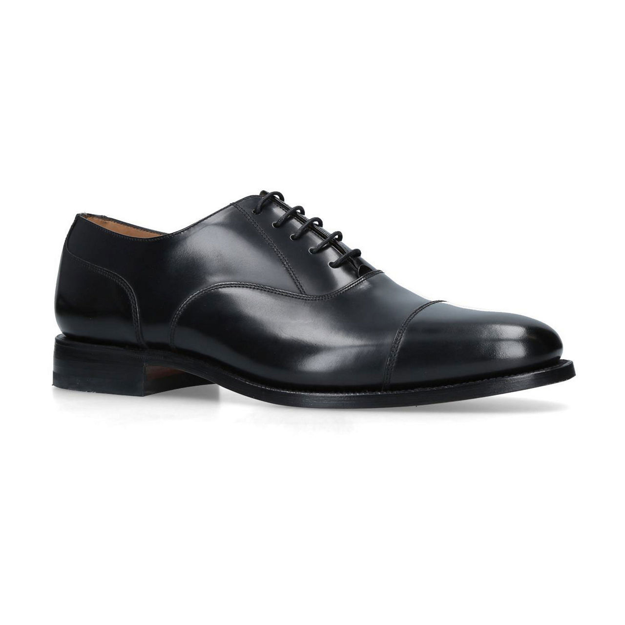 A sharp leather Oxford shoe from Loake that is bound to elevate any smart look, they boast clean lines with a toe cap and are finished in a polished fashion.