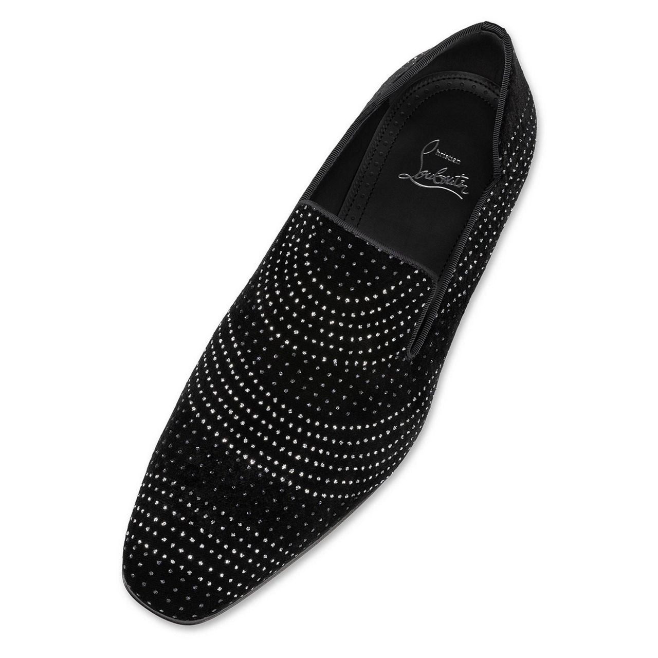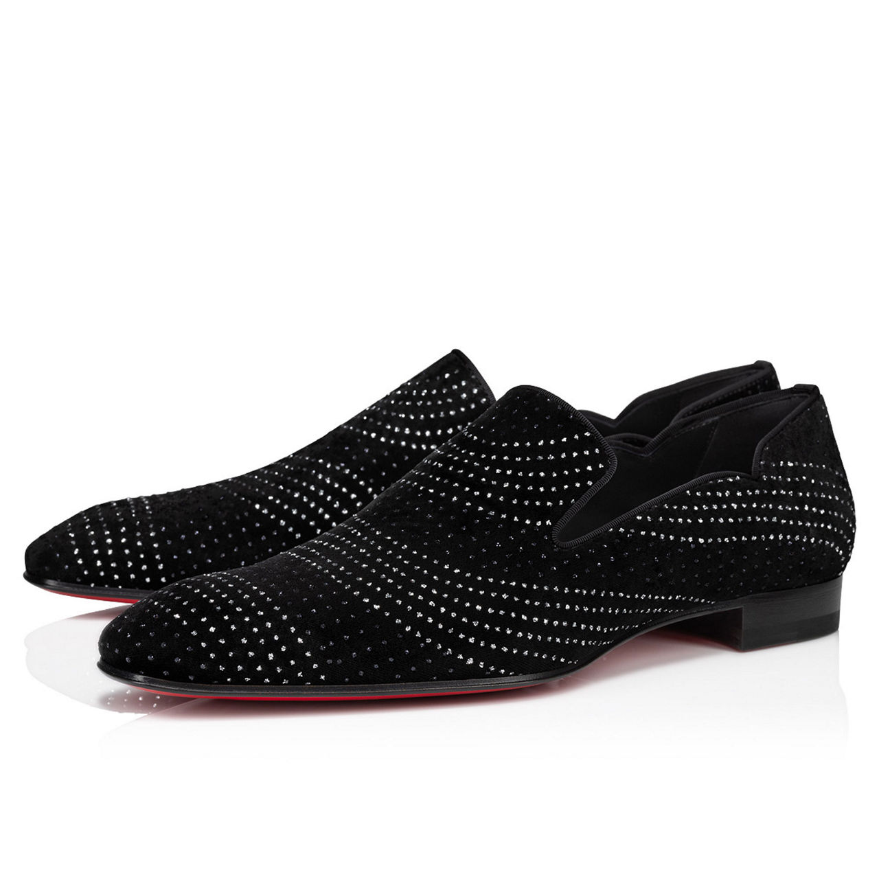 Embrace a subtly shimmering style this season with the Dandy Chick loafer, proving to be a fine example of Maison Christian Louboutin's considerable expertise. Now back with a new design that features sparkling strass embellishments, the slip-on pair is crafted in black velvet and lined in iconic Loubi red.