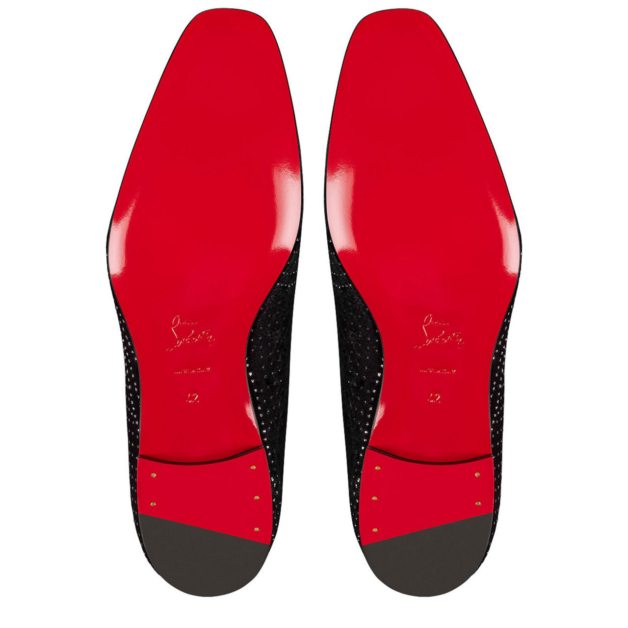 - Please note, Christian Louboutin’s signature red lacquered soles will wear out when tried on a hard surface other than carpet; this is normal wear and tear and is not considered to be a manufacturing defect. Please try these shoes on a carpeted surface, as any damage to the soles may prevent us from accepting returns