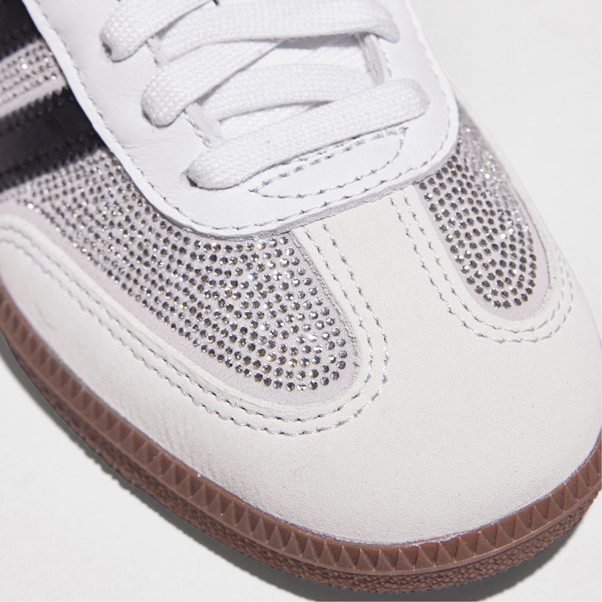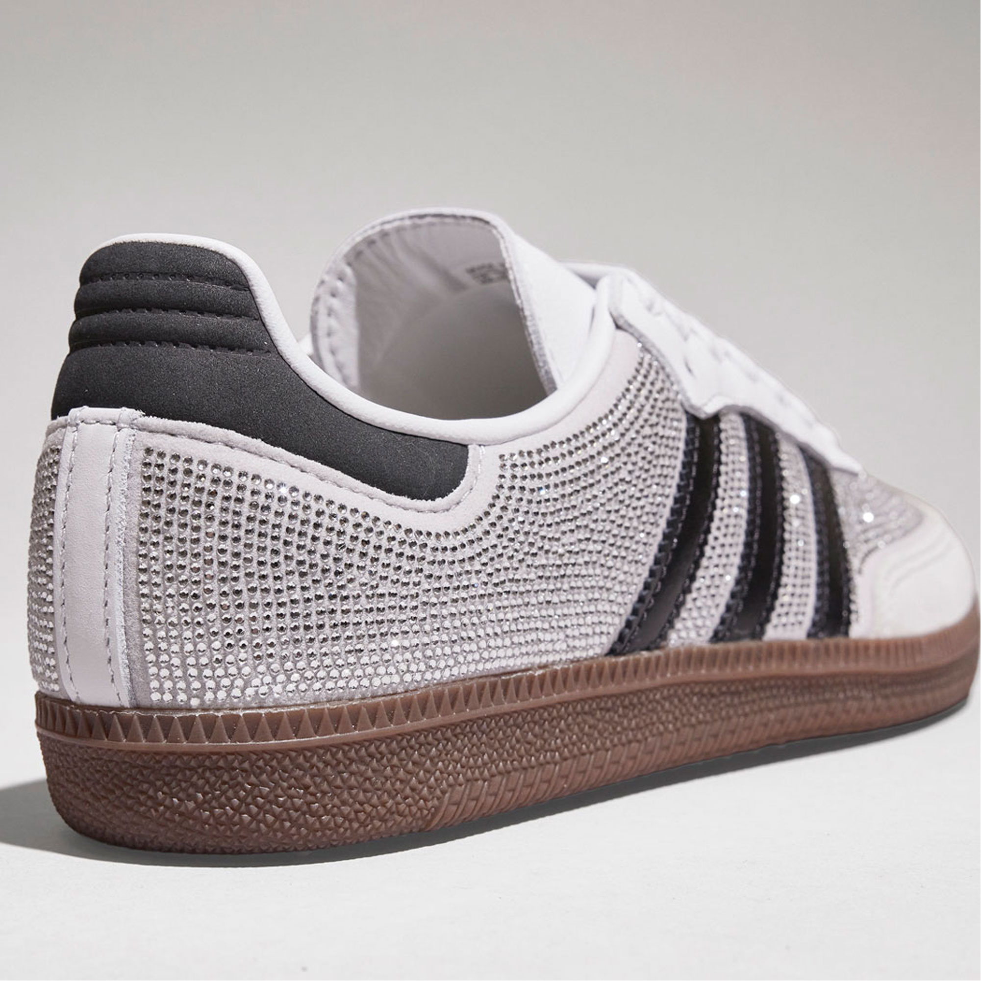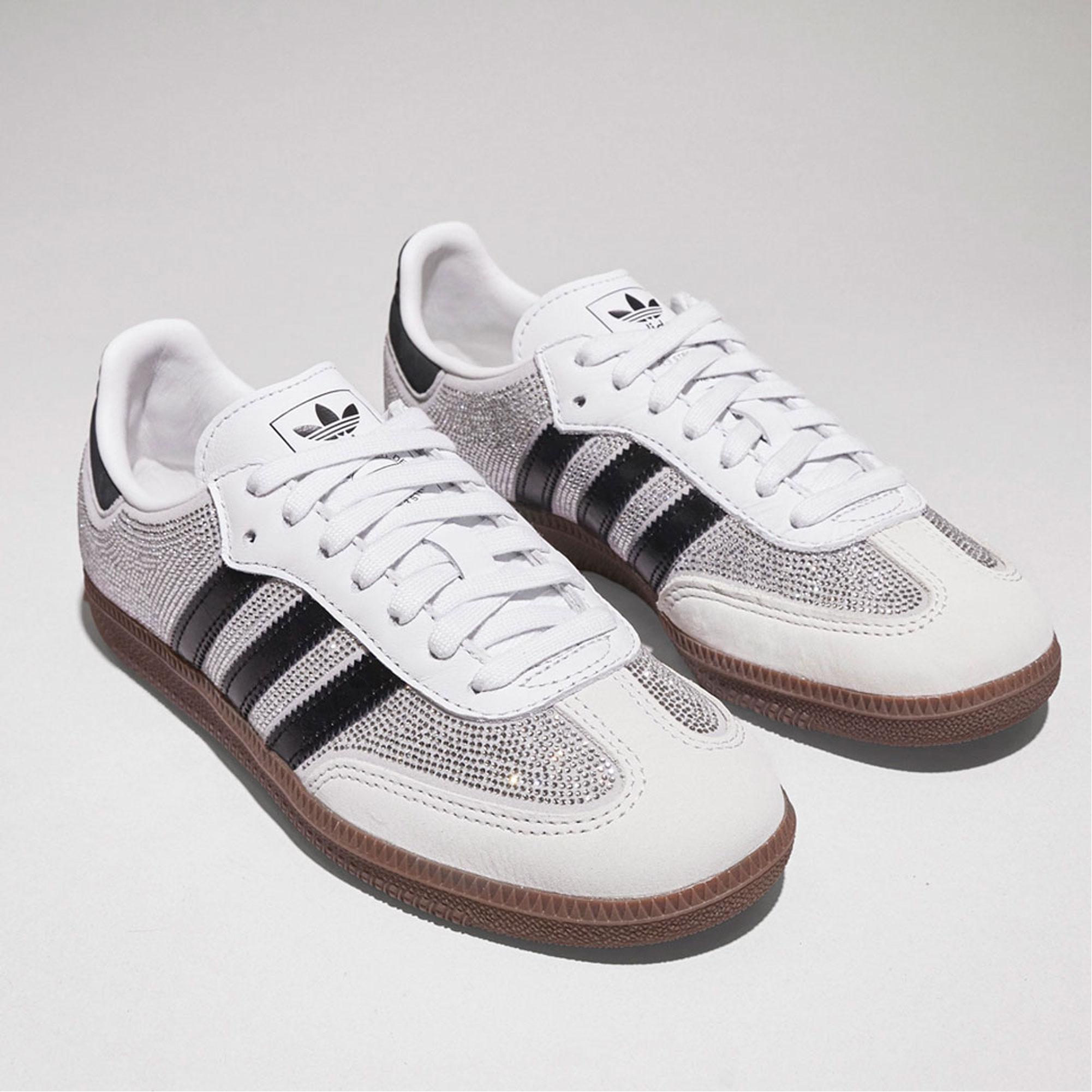 - Luxury Samba reinterpretation, crystal embellished upper, contrasting leather detailing, low-profile silhouette, gum rubber outsole, statement finish