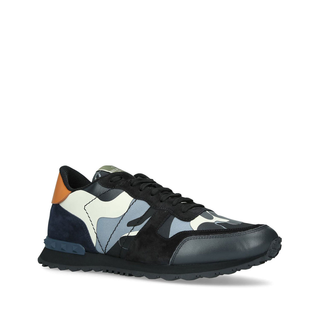 Edgy style is a breeze with a pair of cool trainers from legendary brand, Valentino. Created from a stylish mix of leather, suede and textile, these trainers sport Valentino's essential rockstud detail and a bold camouflage print in military inspired colours. Team yours with denim to channel signature Italian cool.