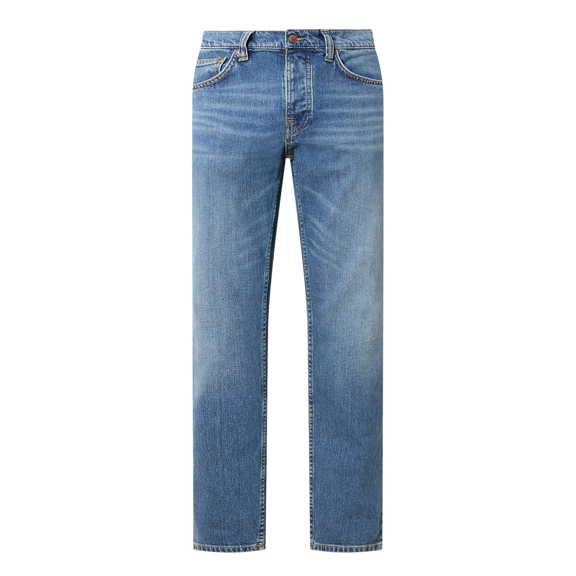 - Slim fit, regular length, mid-rise