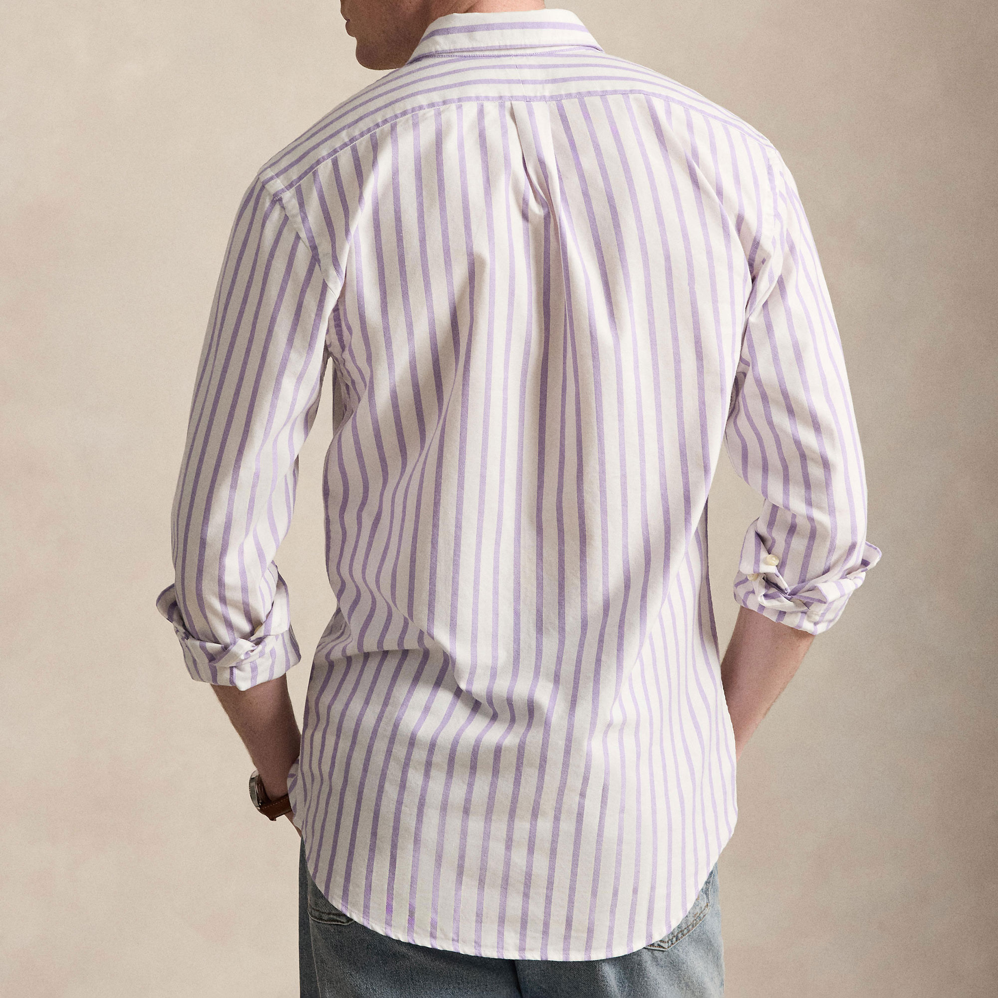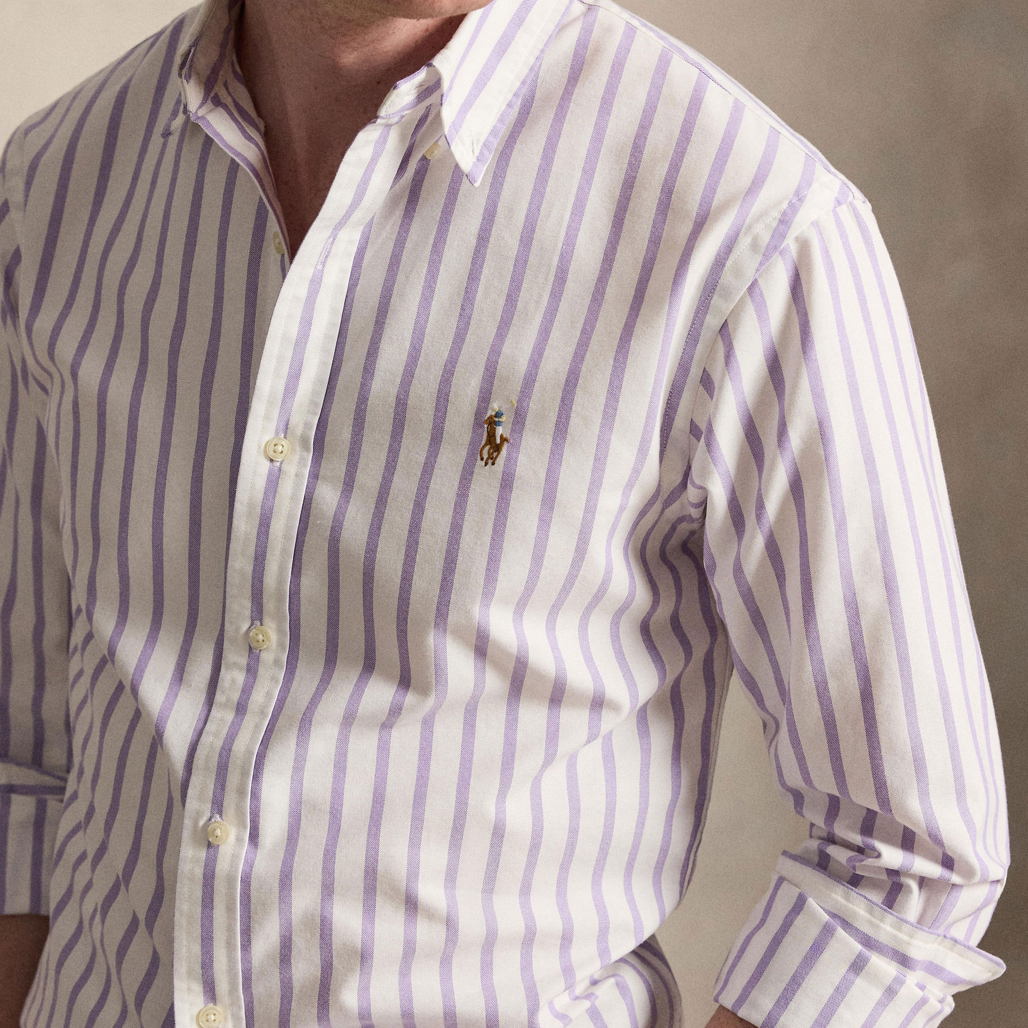 - Button-down collar, buttoned placket, long sleeves with buttoned barrel cuffs, split back yoke with a box pleat ensures a comfortable fit and a greater range of motion, multi-coloured signature embroidered Pony at the left chest