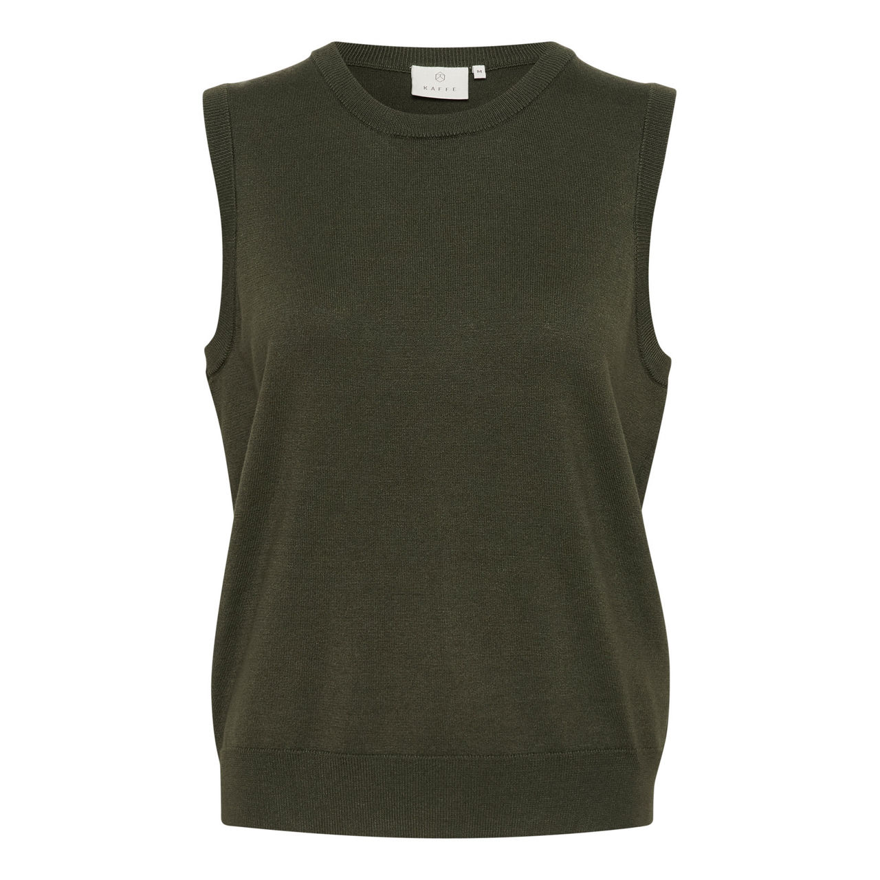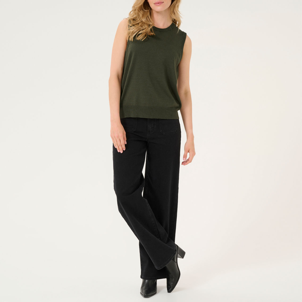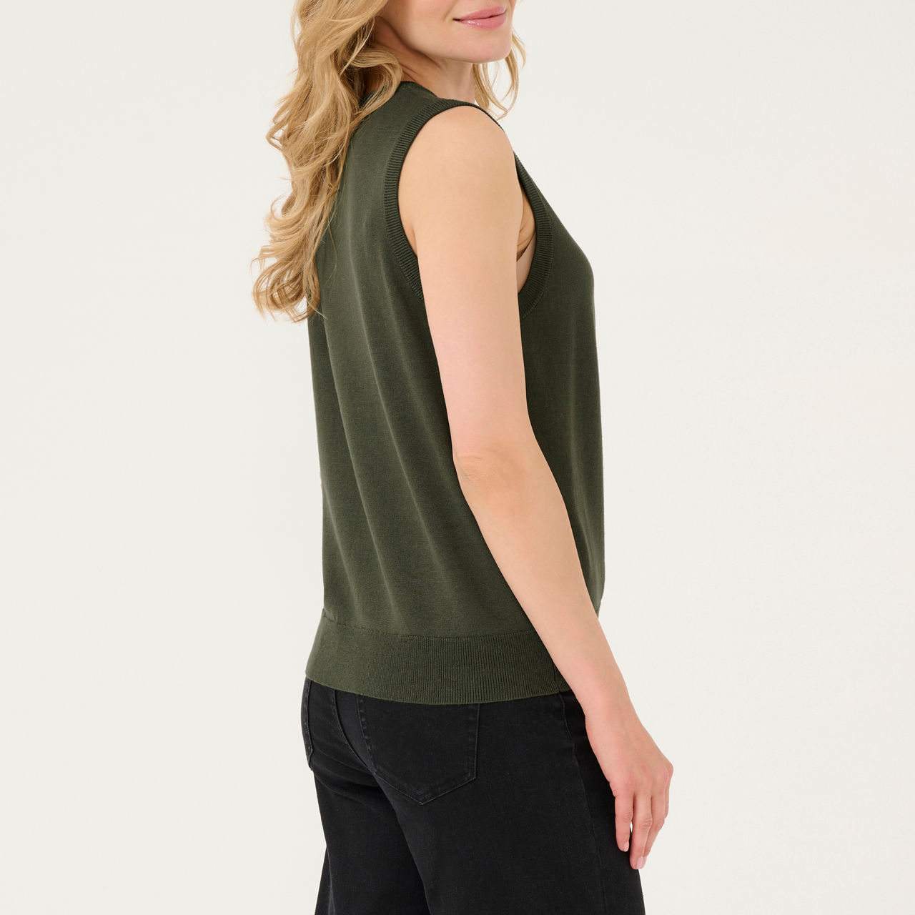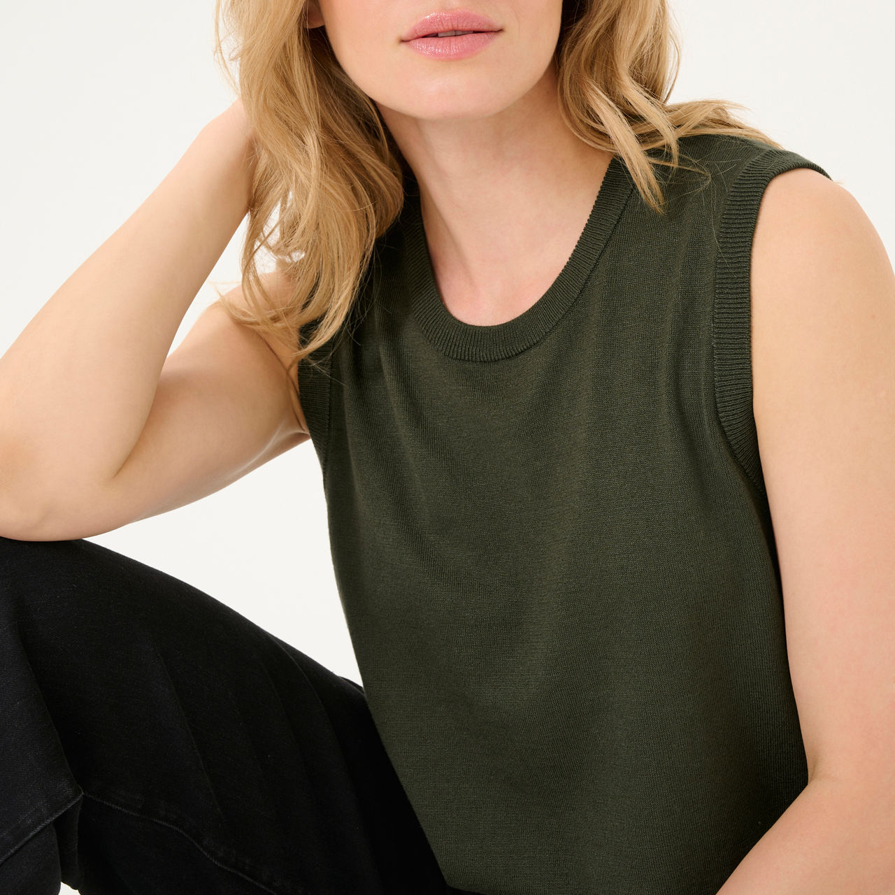- Round neckline, sleeveless, ribbed trims, knit structure