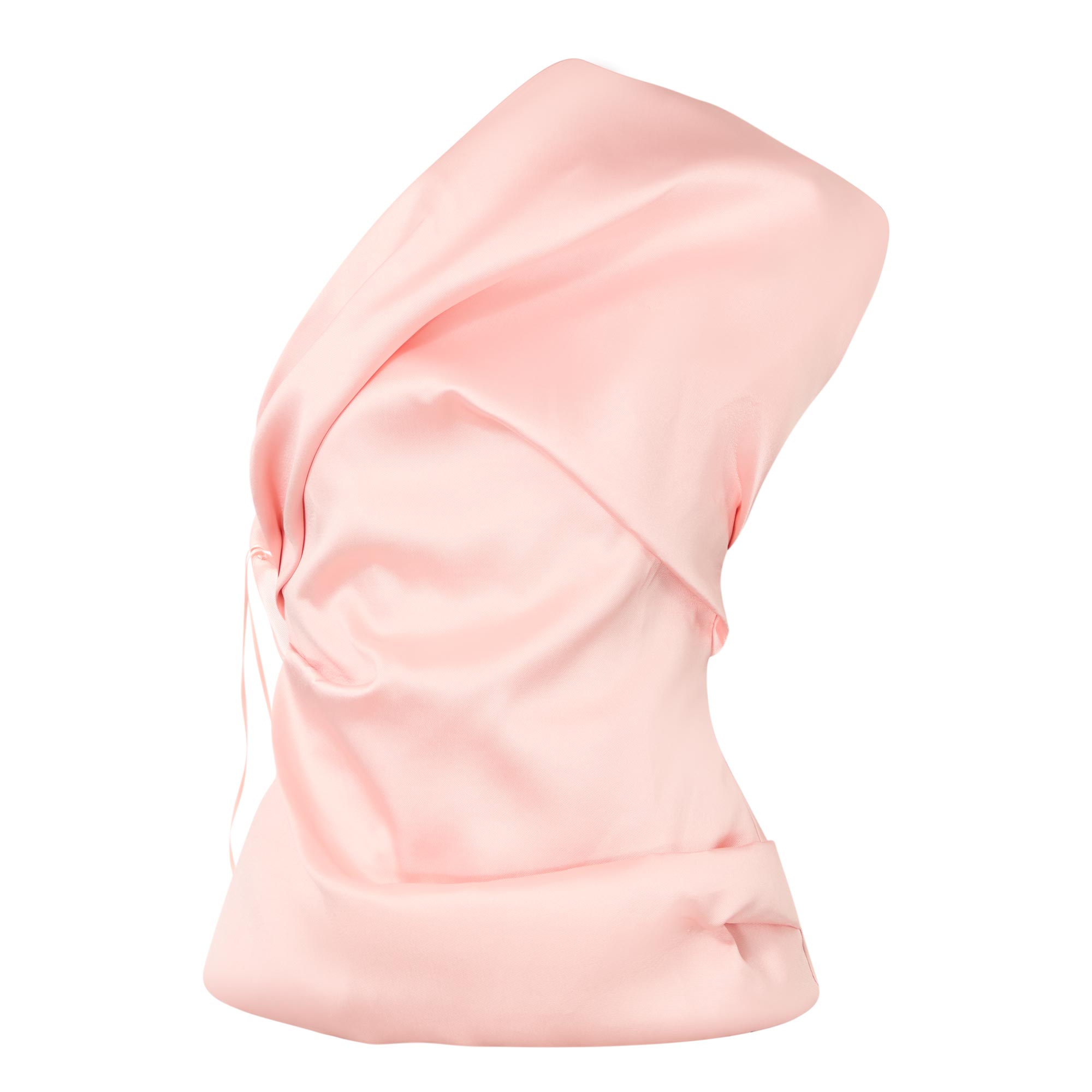- One-shoulder design, sleeveless, draped detailing, rear zip fastening, straight hem, heavy satin finish
