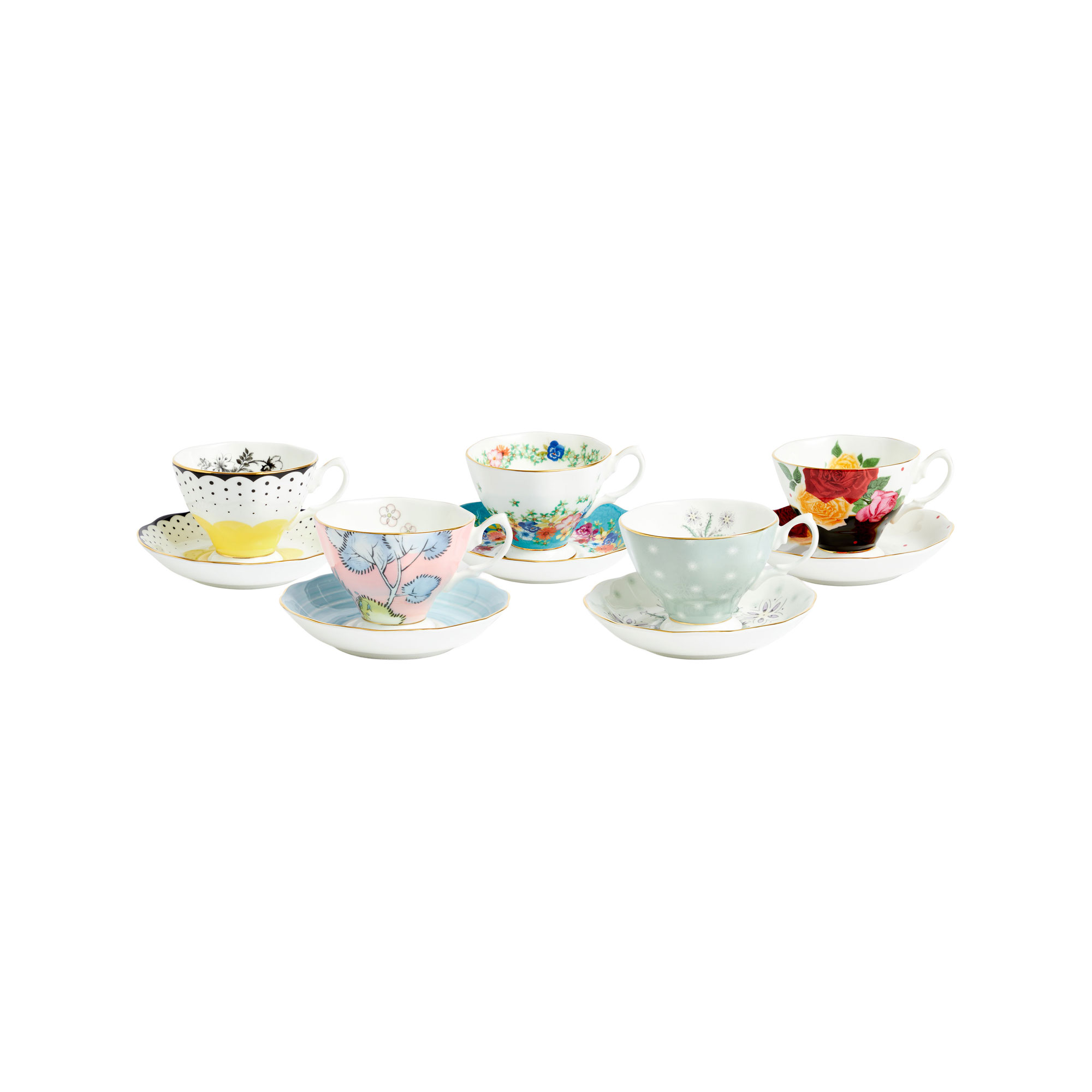 ROYAL ALBERT 100 Years of Royal Albert Collection 100 Years 1920-1960 Five-Piece Teacup & Saucer Set