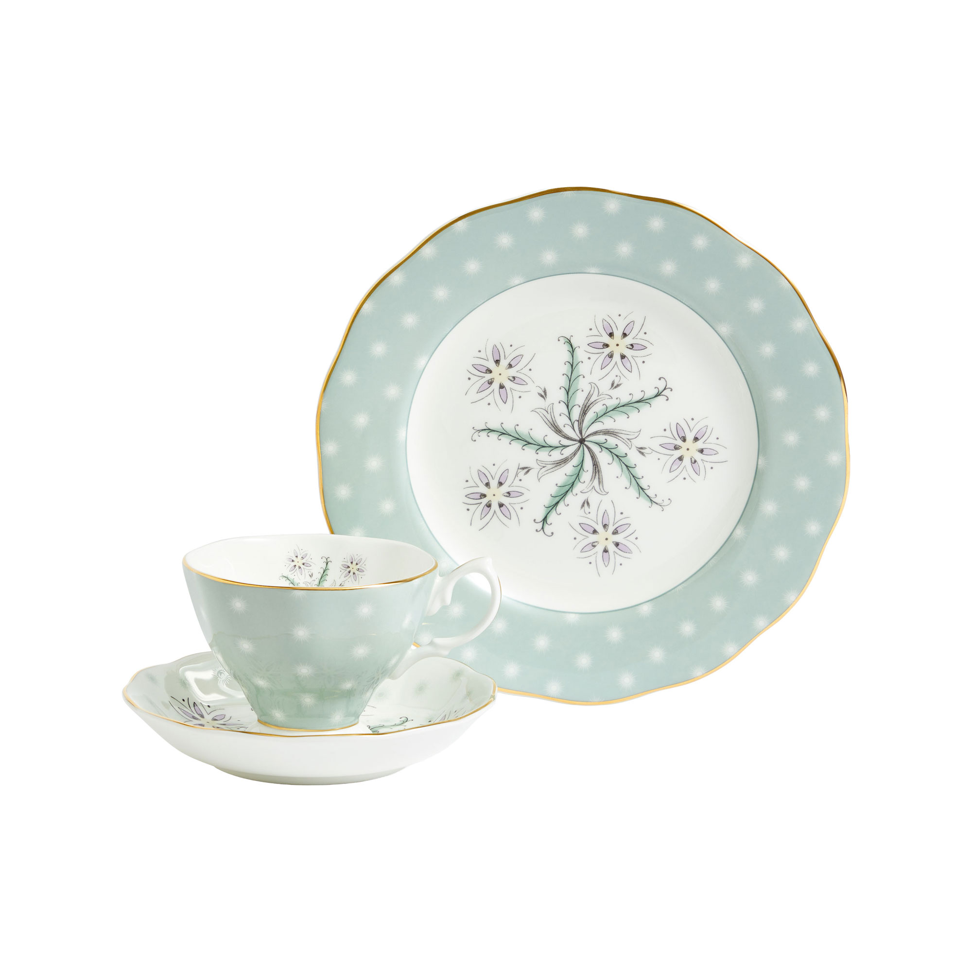 ROYAL ALBERT 100 Years of Royal Albert Collection 100 Years Jubilee 1950 Three-Piece Teacup, Saucer & Plate Set