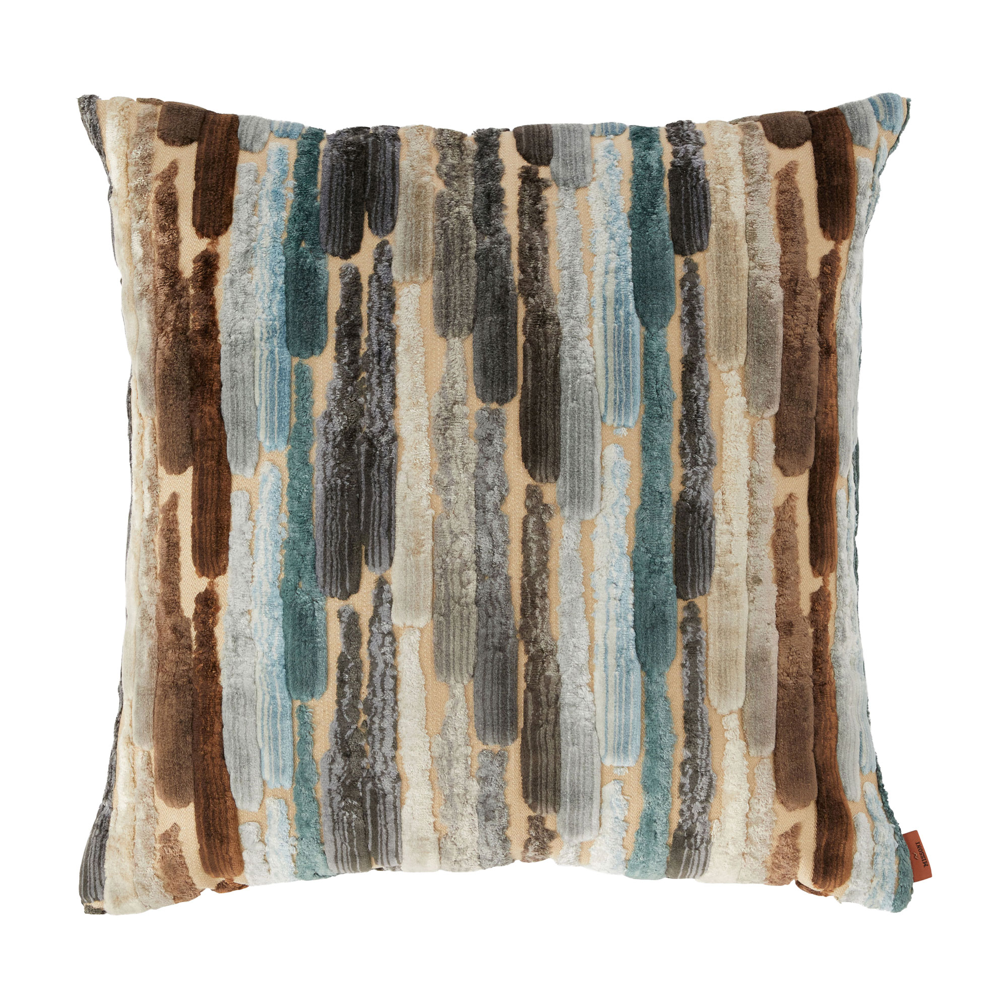 The Cometa collection from Missoni highlights the subtle retro shades of taupe, azure blue and brown that are the hero colours of this season's home style. The soft velour finish makes this beautiful cushion a cool and funky addition to your home décor.