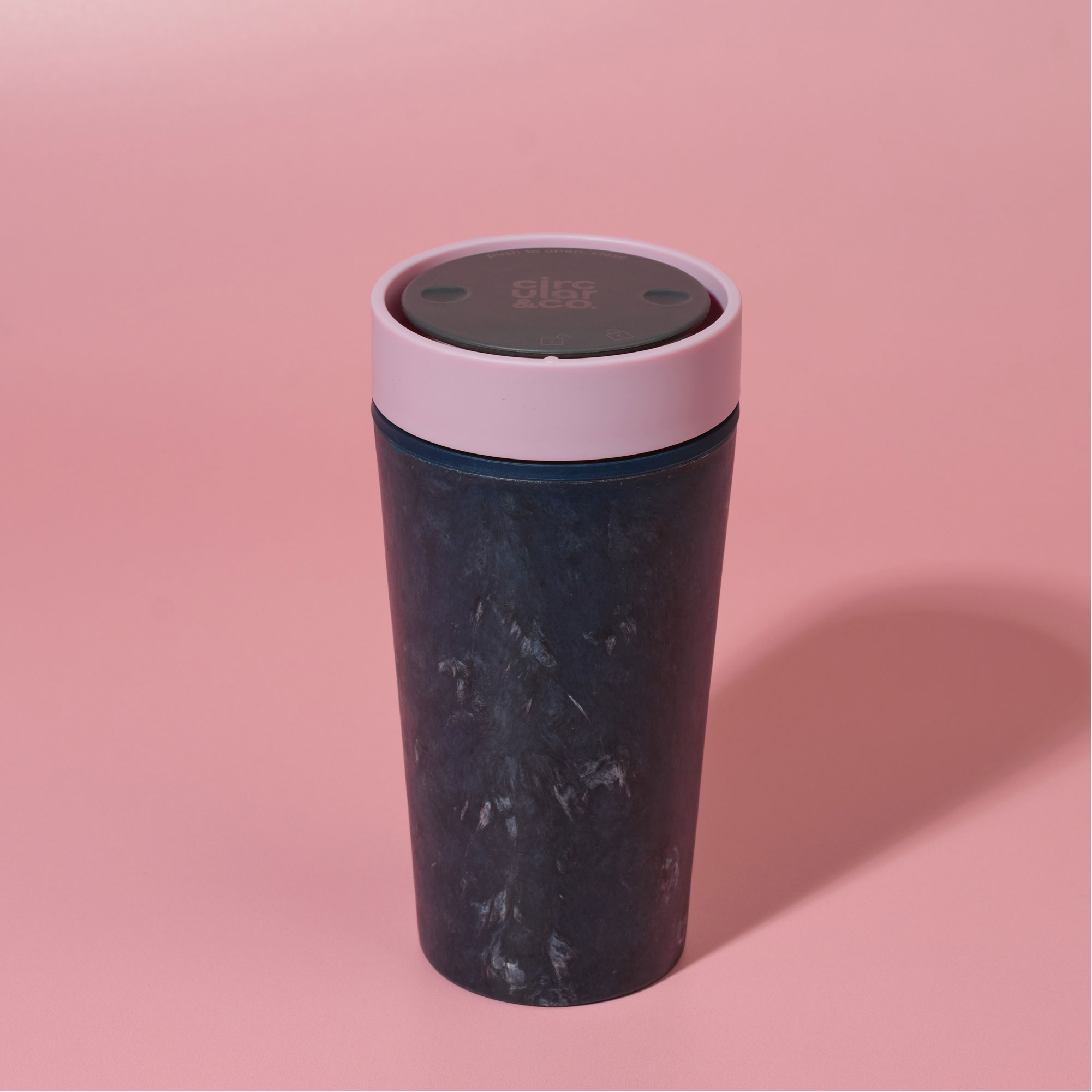 Made from waste Recycled Fabric, this reusable cup keeps your drink hot or cold for 60-90 minutes. Boasting an easy one hand opening and 360 degree drinking, it is perfect for life on the go. It's leakproof design makes it the perfect travel cup. Worn out garments get collected and sorted into reusables (vintage market) and non reusables (fibre recovery). Circular and Co purchase the sorted and so-called “non-reusable” denim to make exciting new products. Fibres are recovered from the non-reusable denims in a low energy, mechanical process to produce fibre pellets. The fibre pellets get mixed with a recycled Polypropylene that can be injection moulded. The fibres reinforce the plastic and add durability. This blend of pellets is used on the outer thermal layer of the Circular Cup. The inside components, lid and any components that come into contact with the beverage are made using certified food grade materials to ensure the cup is safe to use.
