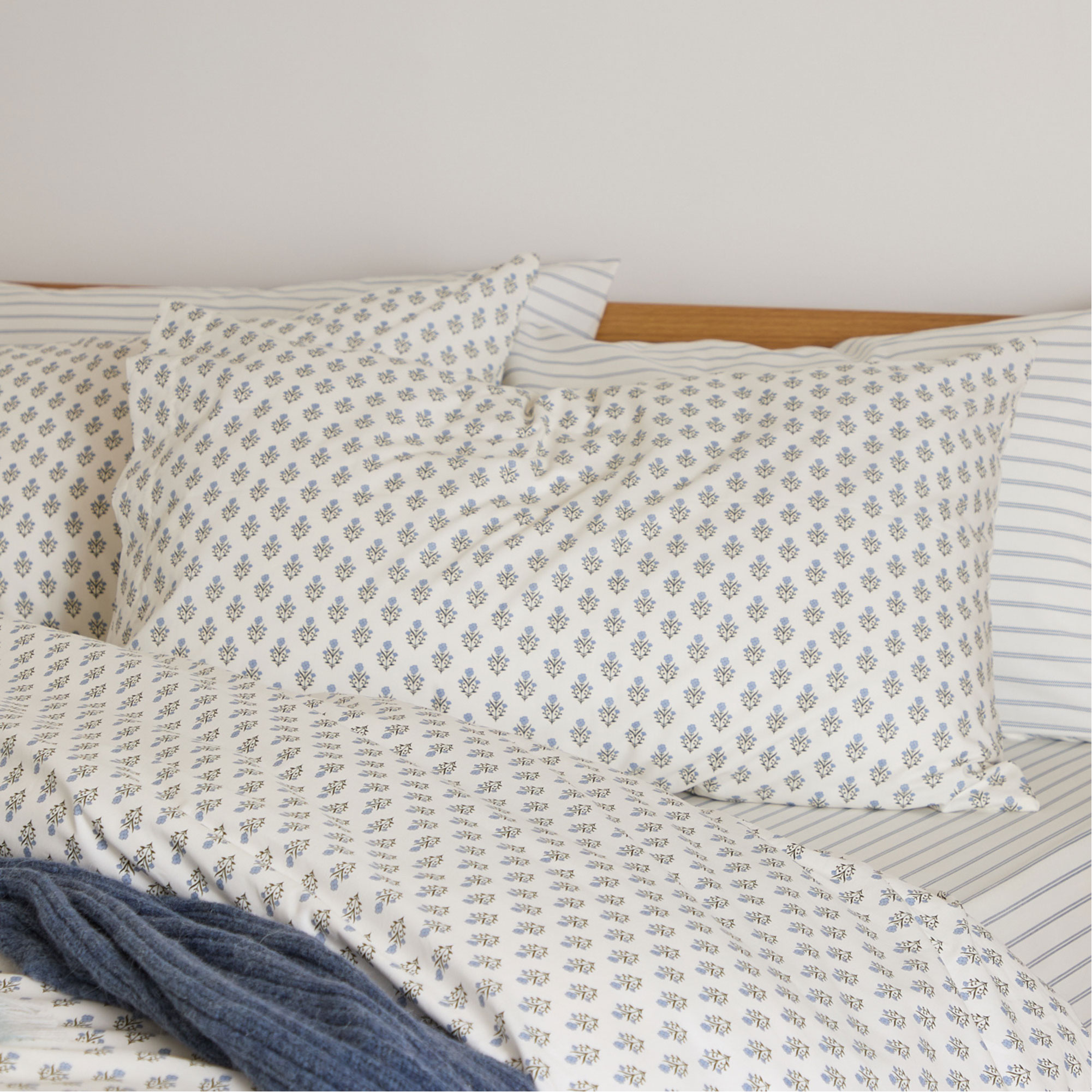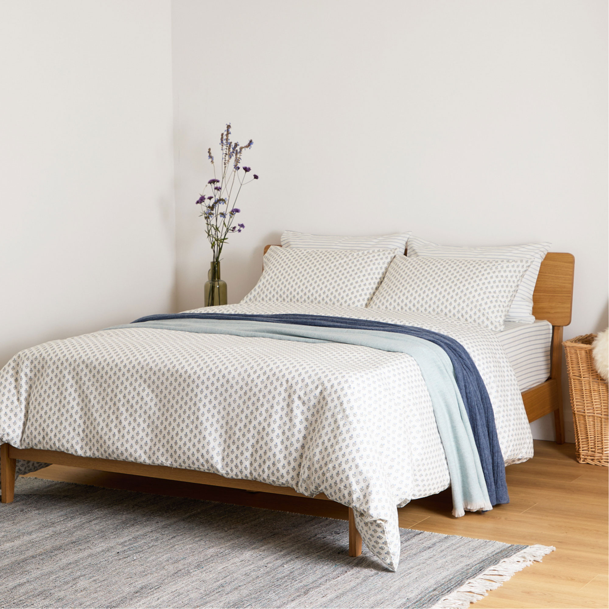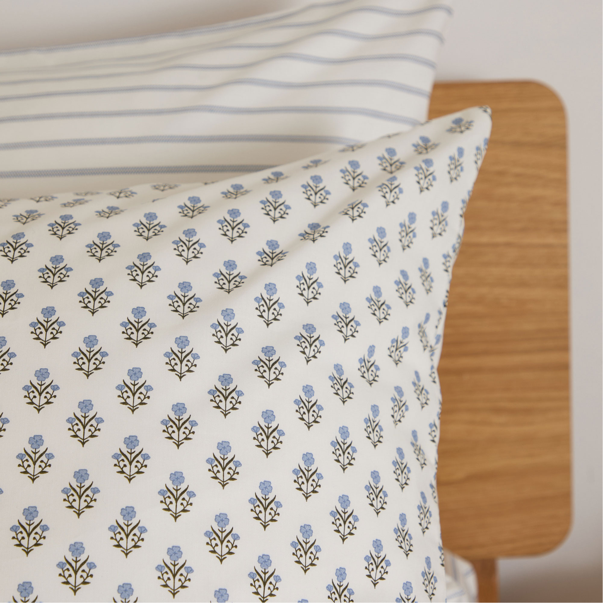 The FOXFORD Emma pair of standard pillowcases are part of the brand’s Everyday Collection. Meticulously made in Portugal with 180-thread-countlong-staple cotton, the pillowcases feature a delicate blue floral motif on a white base, designed by acclaimed Irish designer Helen McAlinden.