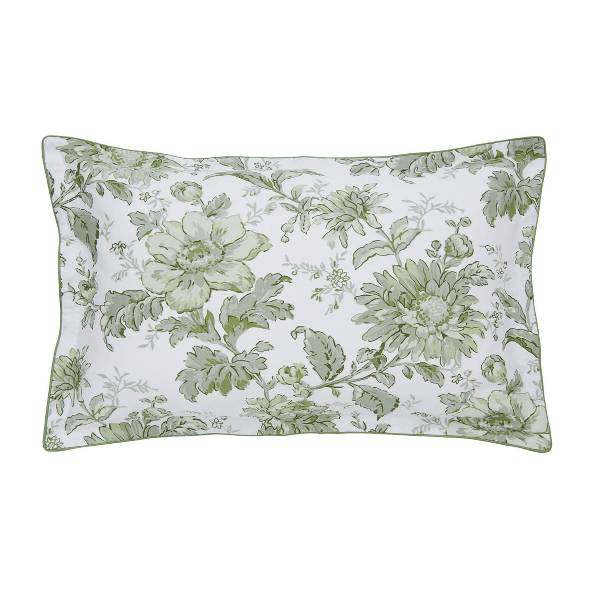 This classic floral print perfectly captures the essence of the English countryside, with its beautiful full-blown flowers and lush foliage captured in a chinoiserie style. Printed on 200 thread count cotton sateen, in a palette of soft tonal greens contrasted against a white ground. The design was inspired by an unmarked archival wallpaper sample in the English Heritage collection, so little is known about it’s exact origin. The calming colour palette continues through to the Craven Street Floral cushion, featuring a beautiful floral trail printed onto a soft sage coloured velvet.