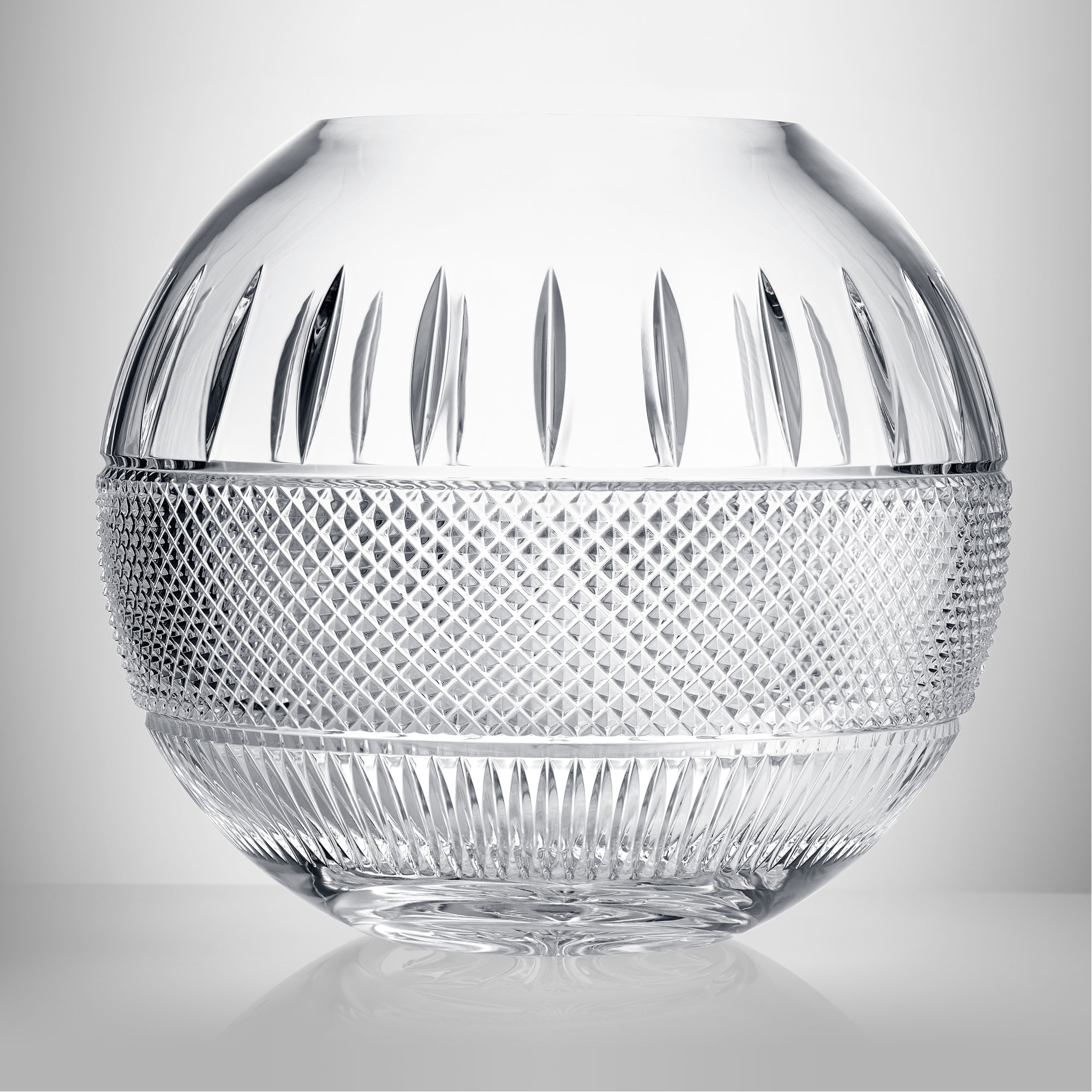 - Irish Lace pattern, handcrafted, lead-free crystal, spherical bowl