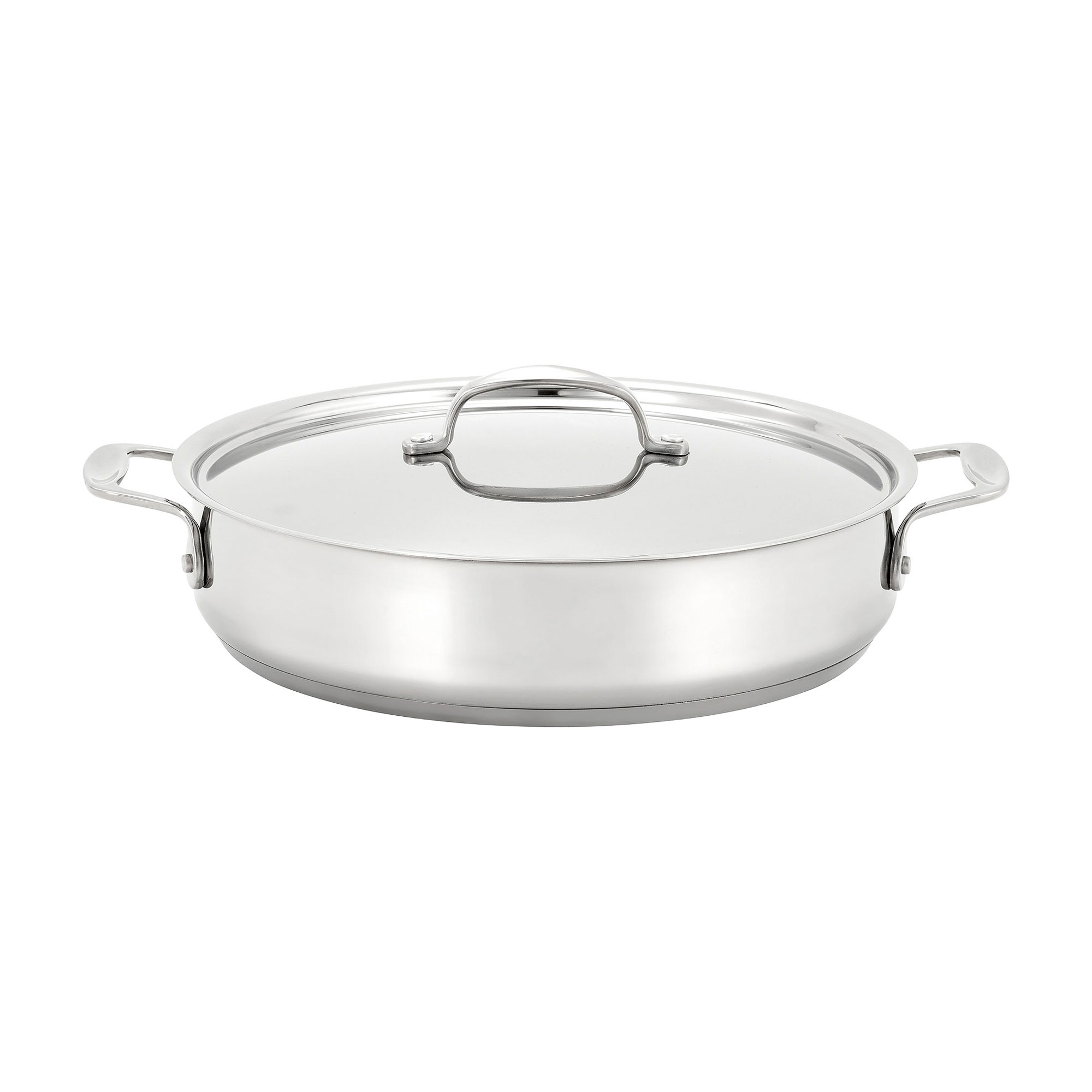 - Consistent, heat spreads evenly, polished steel , straight sides, versatile, oven safe, PFOA/PTFE free